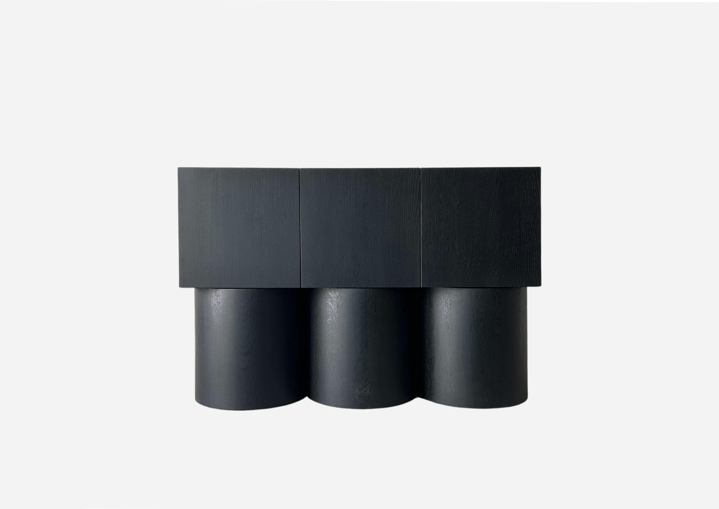 A monolothic console series designed around lathe turned columns with interior storage accessed by discreet routed finger pull. Hand-crafted from solid oil-finished hardwood.