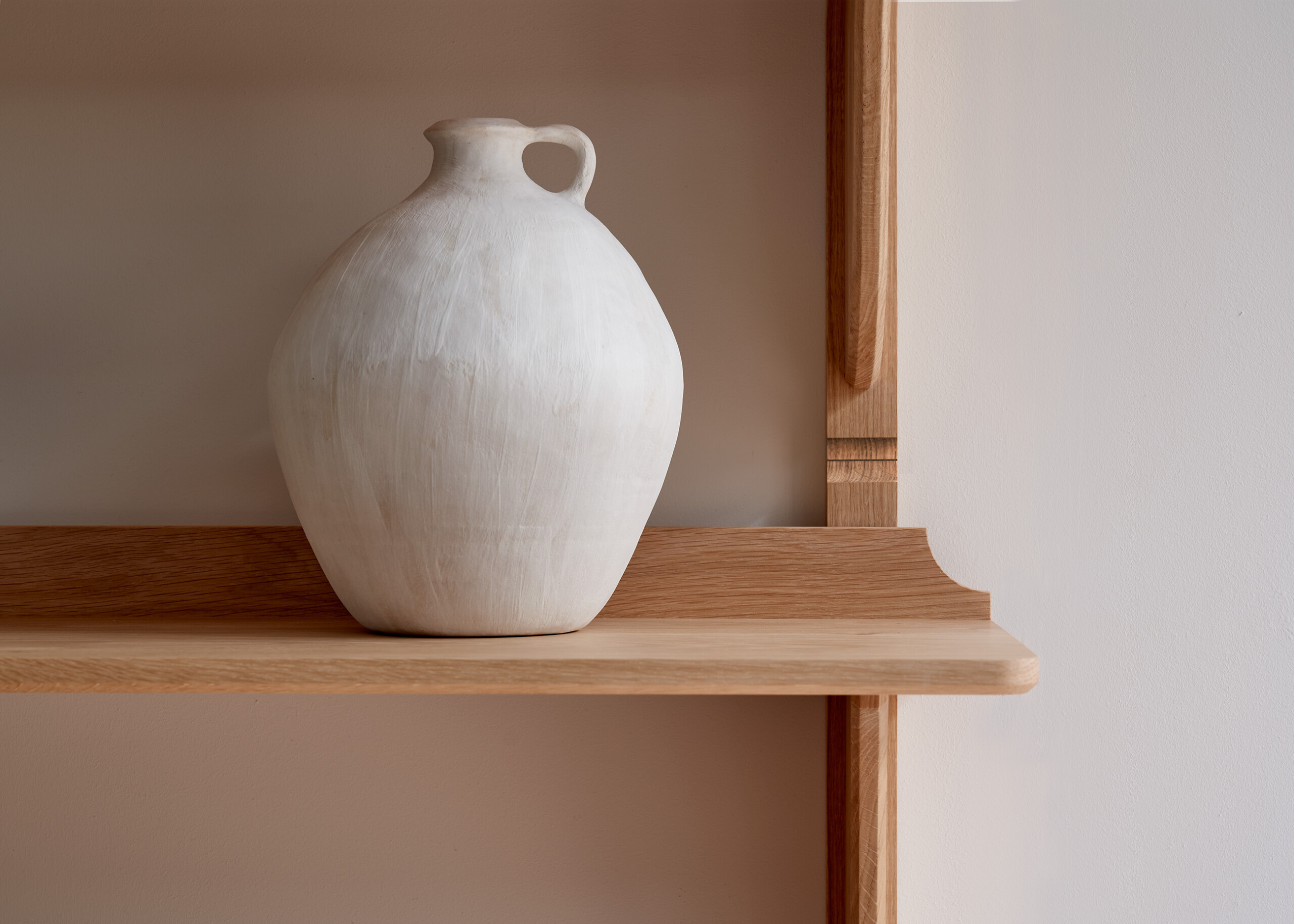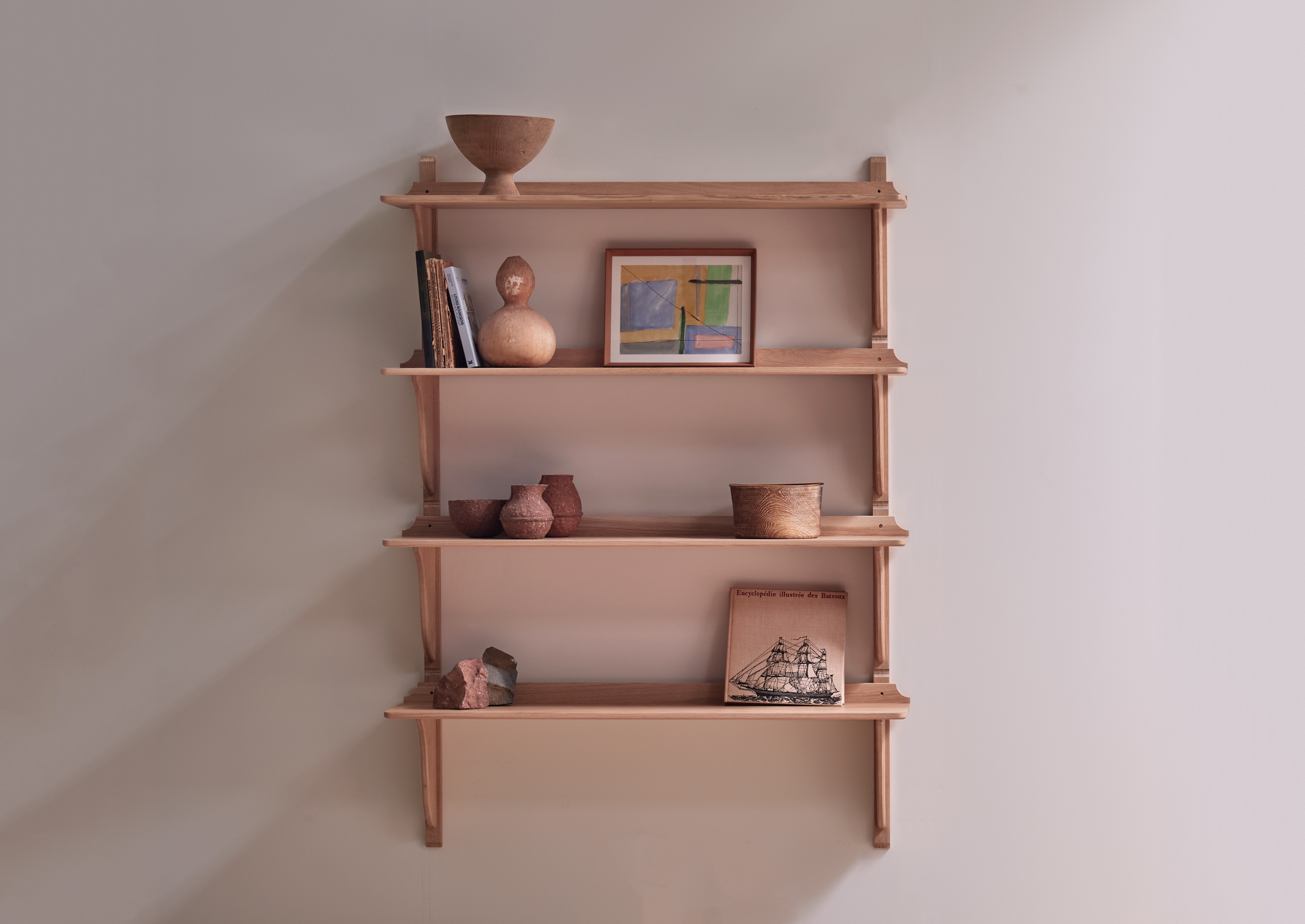 Audley shelving is a single wall hung shelf that can be stacked limitlessly vertically or side by side, or both. Made entirely from solid oak or black American walnut.
