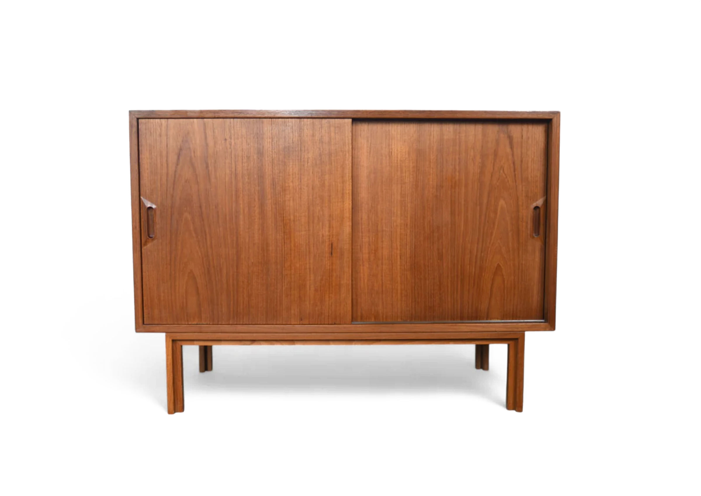 A Small Danish Modern Teak Credenza By Sven Ellekaer in teak and beech, distinguished by its materials and period detailing. Designed for everyday use, it offers practical storage or surface space with a refined, collected presence.