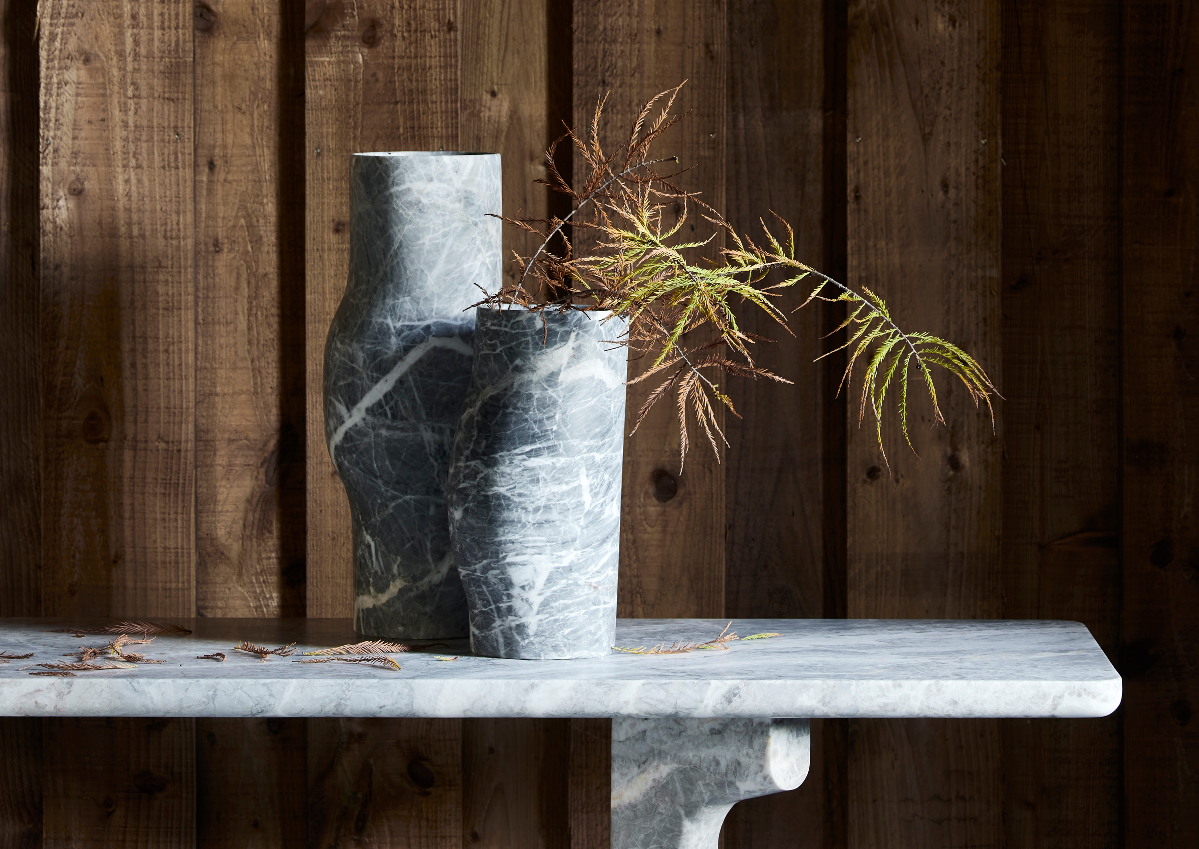 Available in an Oak, Brushed Oak, Roman Travertine, or Marble finish
