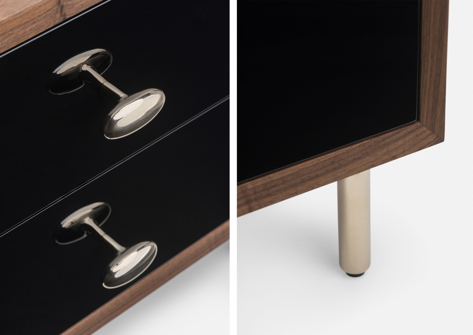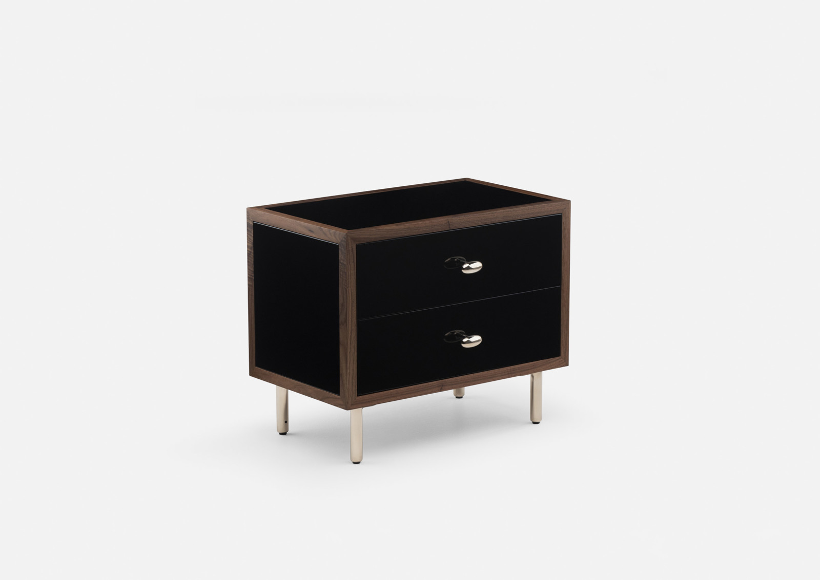 Classon Bedside Chest transcends time, its modern form featuring rich detailing that nods to a more traditional American aesthetic. Polished bronze drawer pulls and legs elegantly complement the cabinet body available in a range of timbers and finishes and painted HDF.
