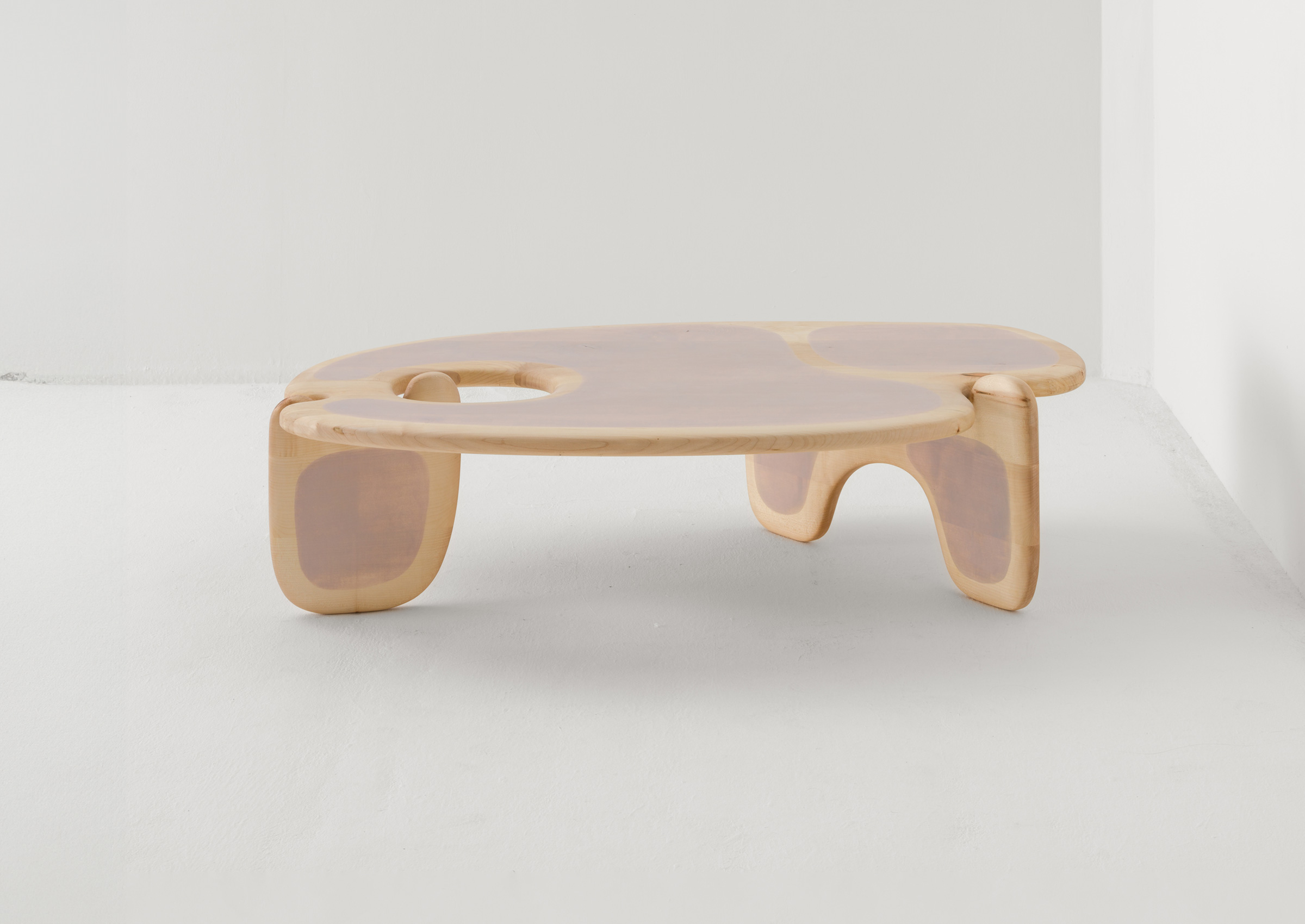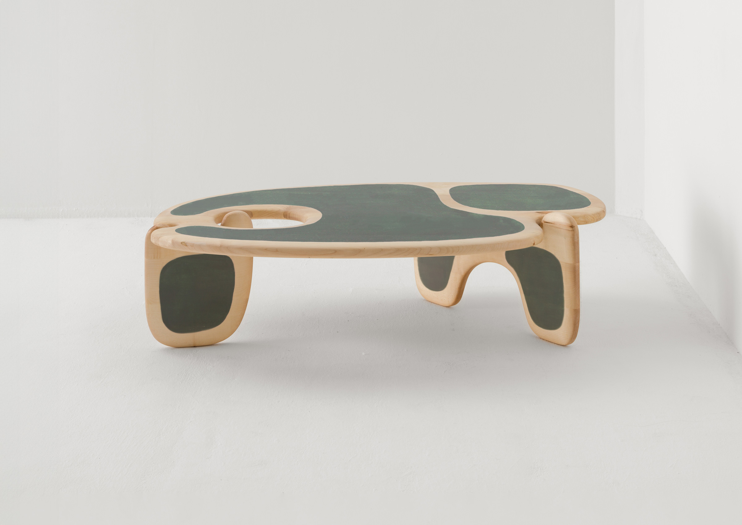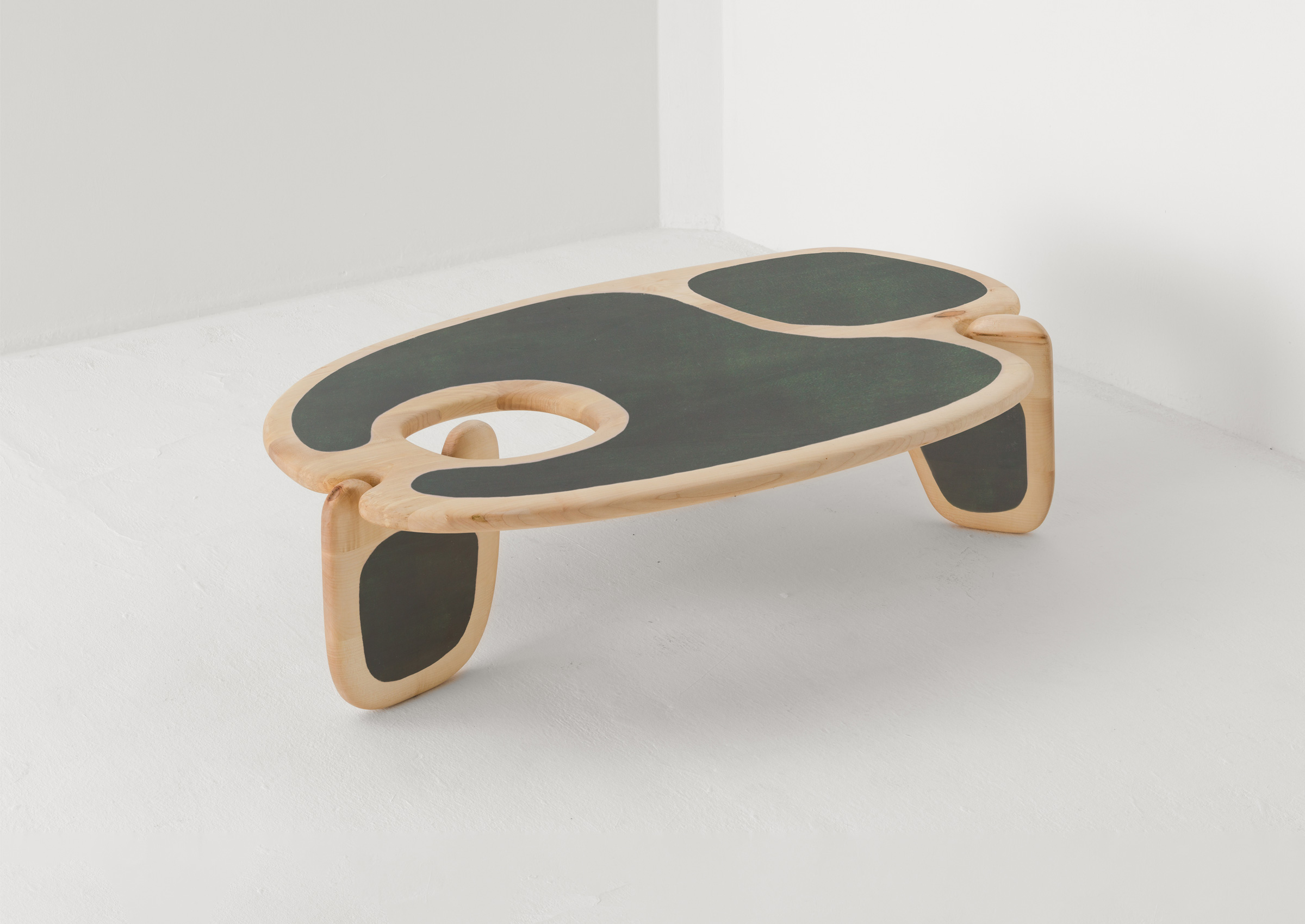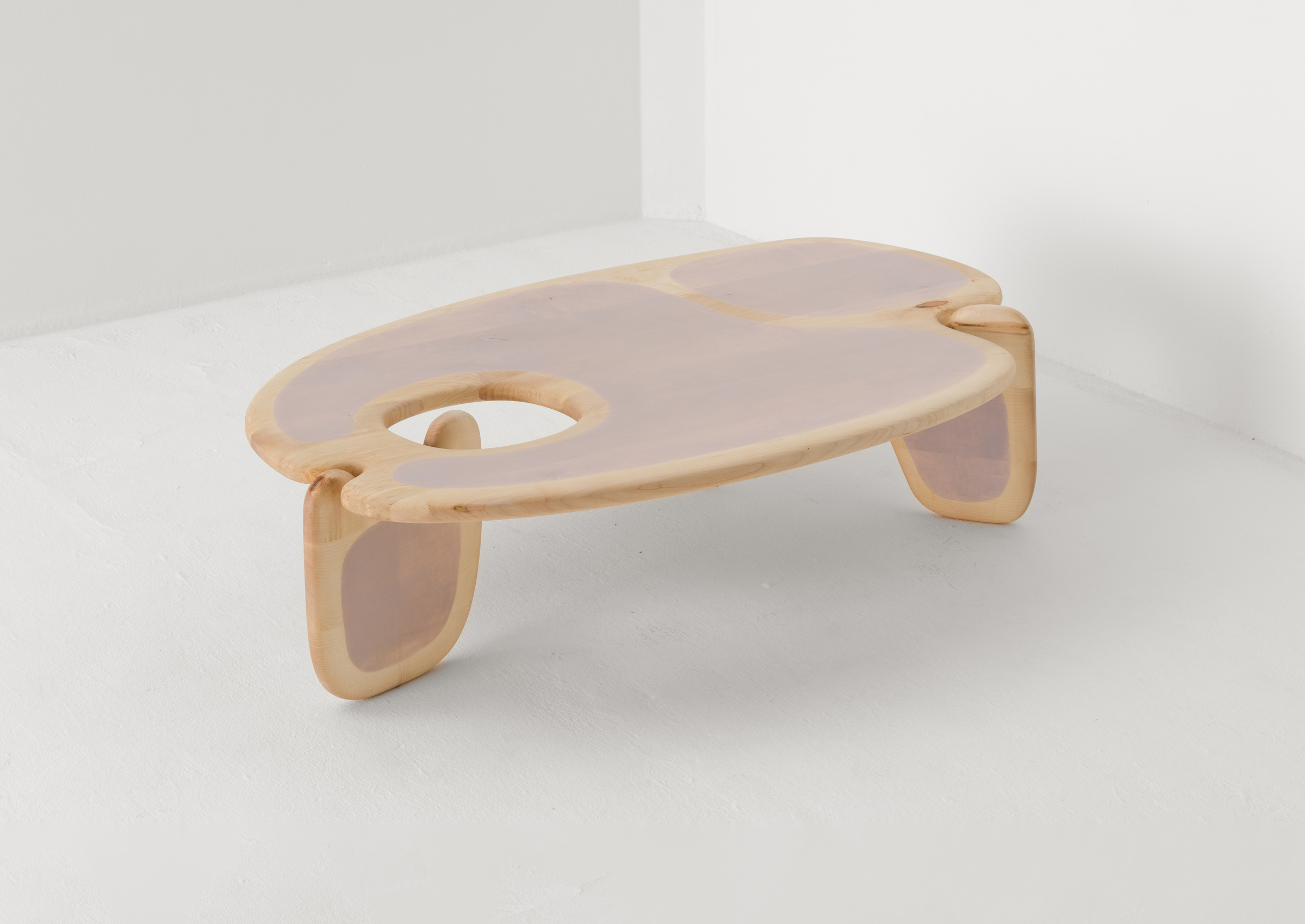 The Palette coffee table is formed from intersecting, curving shapes. The organic contour of the table's top is inspired by the shape of an artist’s paint palette. Made in sustainably sourced British Oak or Sycamore. This product is meticulously handmade by master artisans one piece at a time. It is therefore quite difficult, if not impossible, to make identical items. Any natural blemishes or irregularities should not be misconstrued as flaws. These are what make each handmade piece unique.