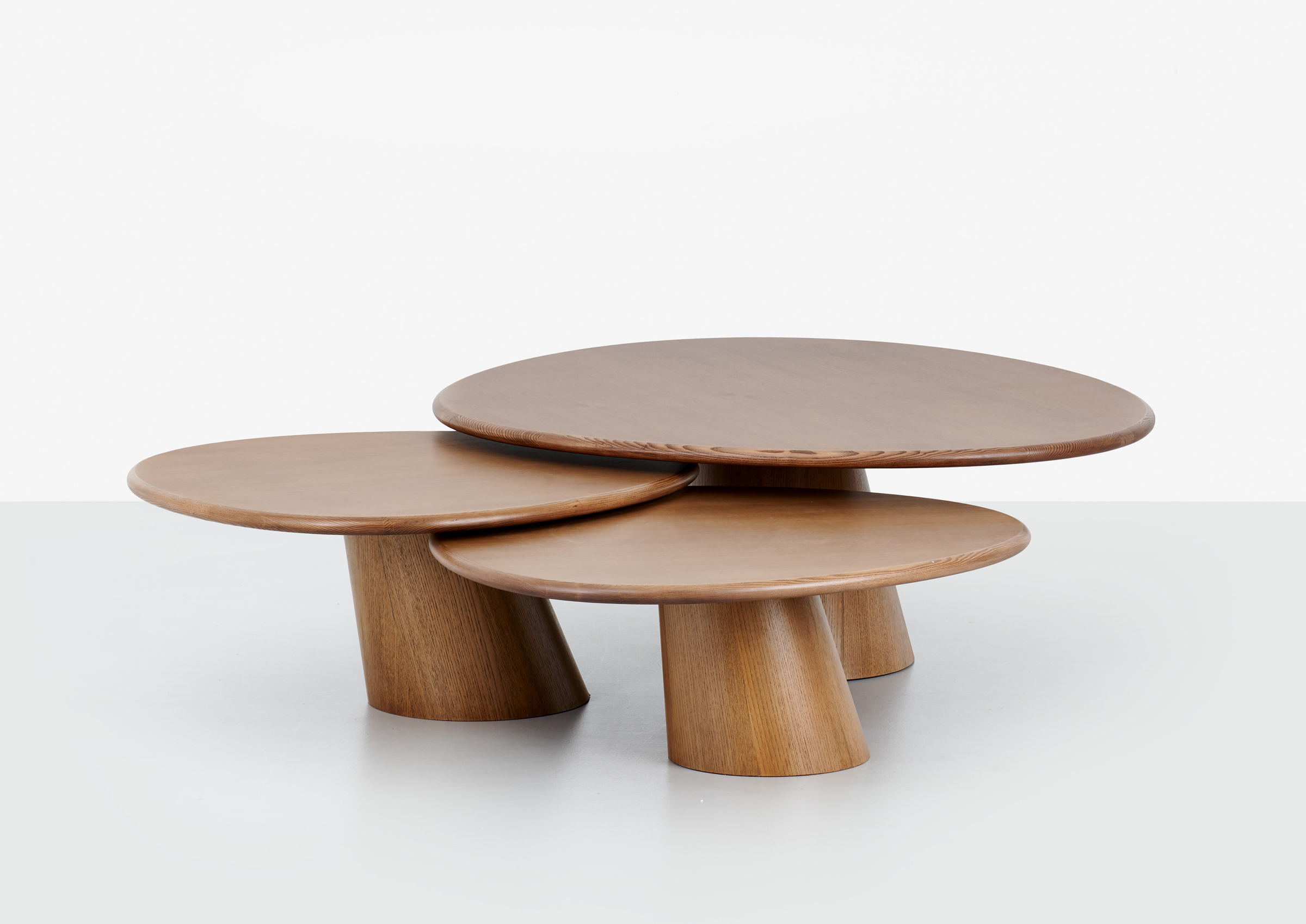 The Porcini coffee table series celebrates the wonderful qualities of wood. Crafted from premium natural oak or lacquered wood, the sleek low-profile set of tables are grouped together to mimic a cluster of mushrooms, which provide the inspiration for the design.