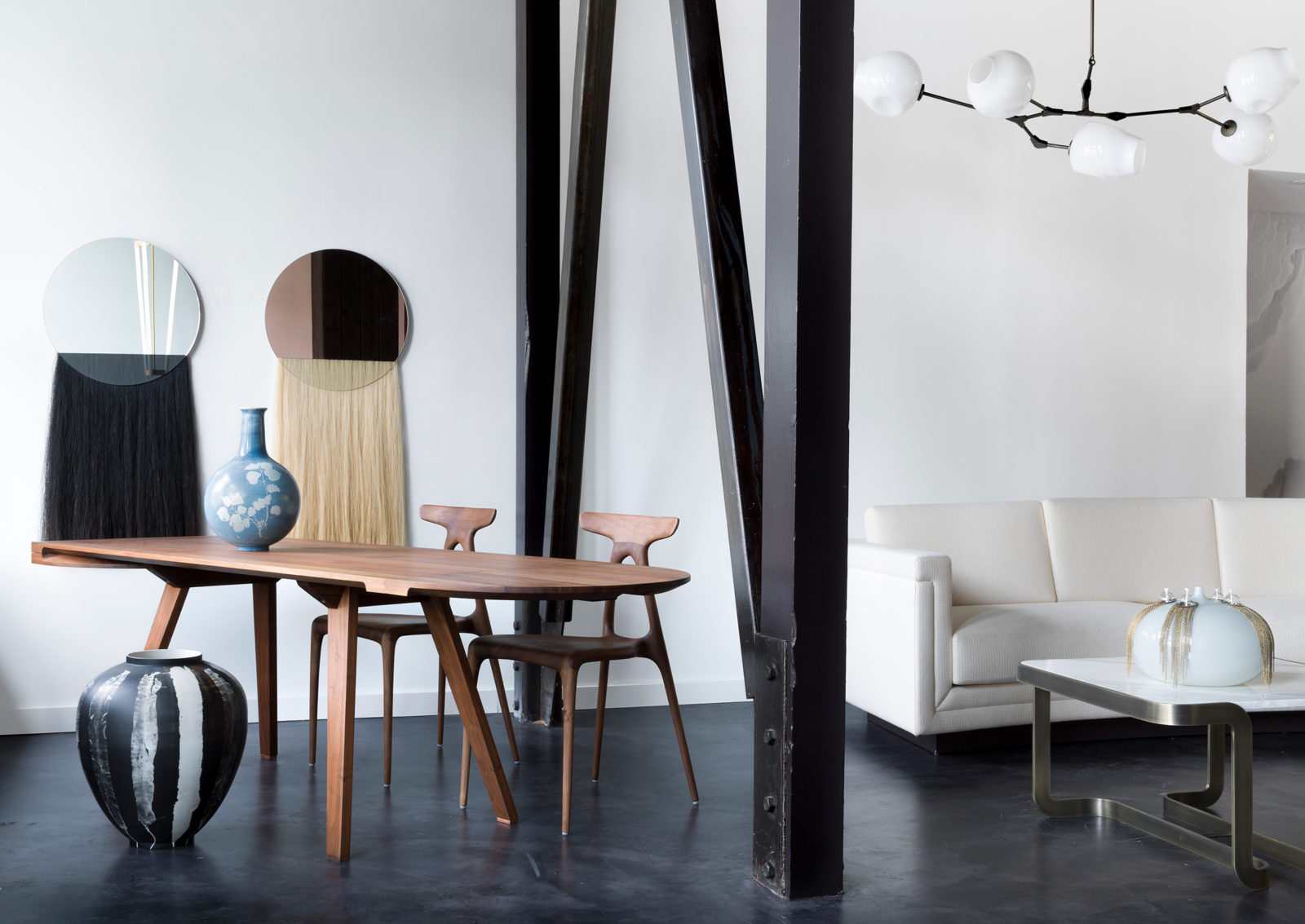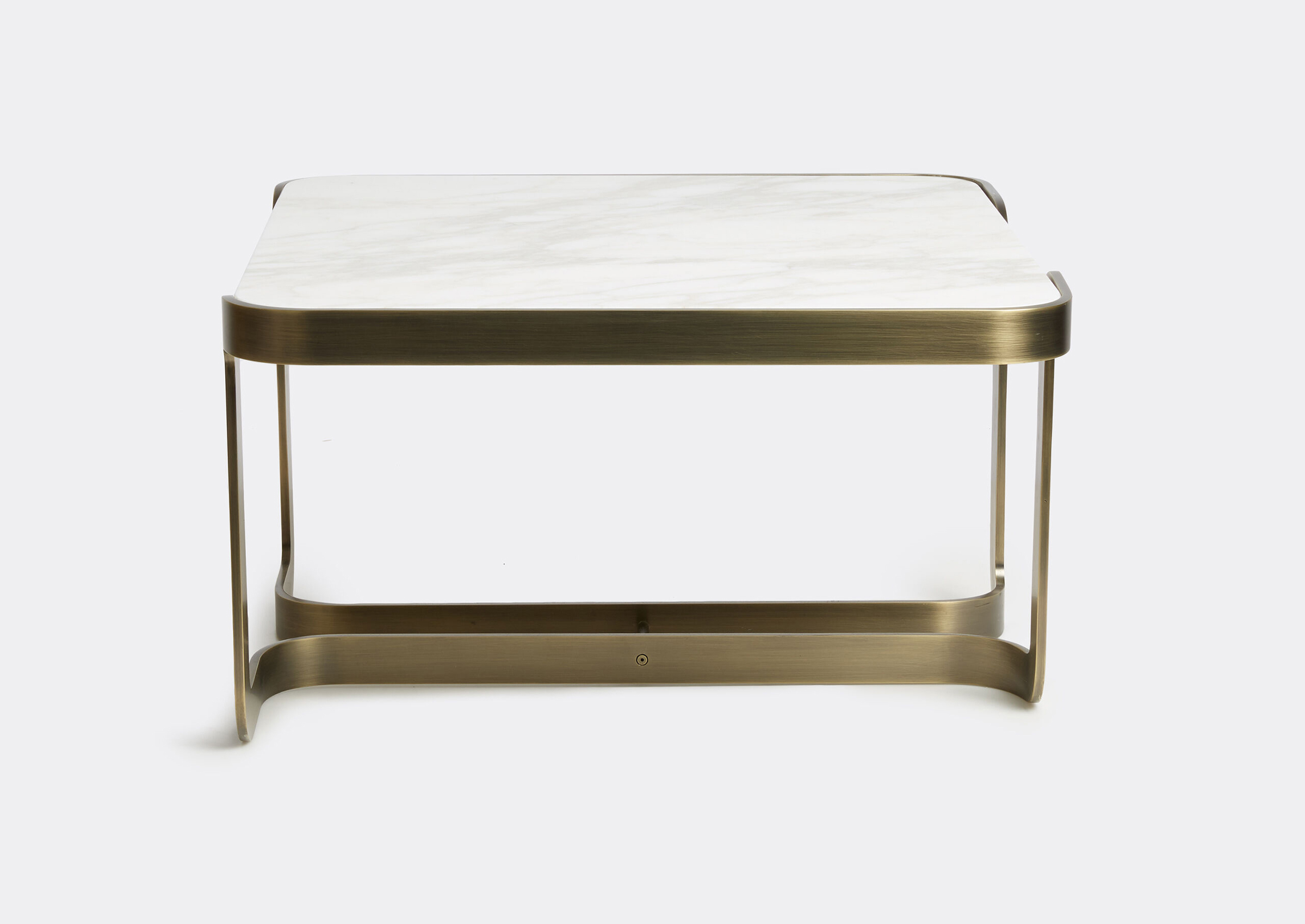This perfectly proportioned coffee table elevates a functional item to luxurious new heights. Again, designers Lazzarini & Pickering offer a blend of color and texture, shapes and lines. The table’s surface is made with luxurious back-painted tempered glass, Black Marquina marble, or Calacatta Gold marble. The metal elements of the Mathus table, like the Murena Chair, feature elegant curves.