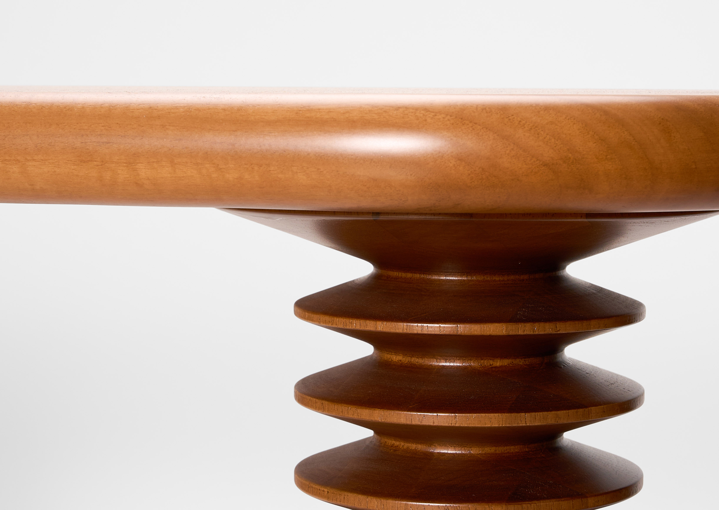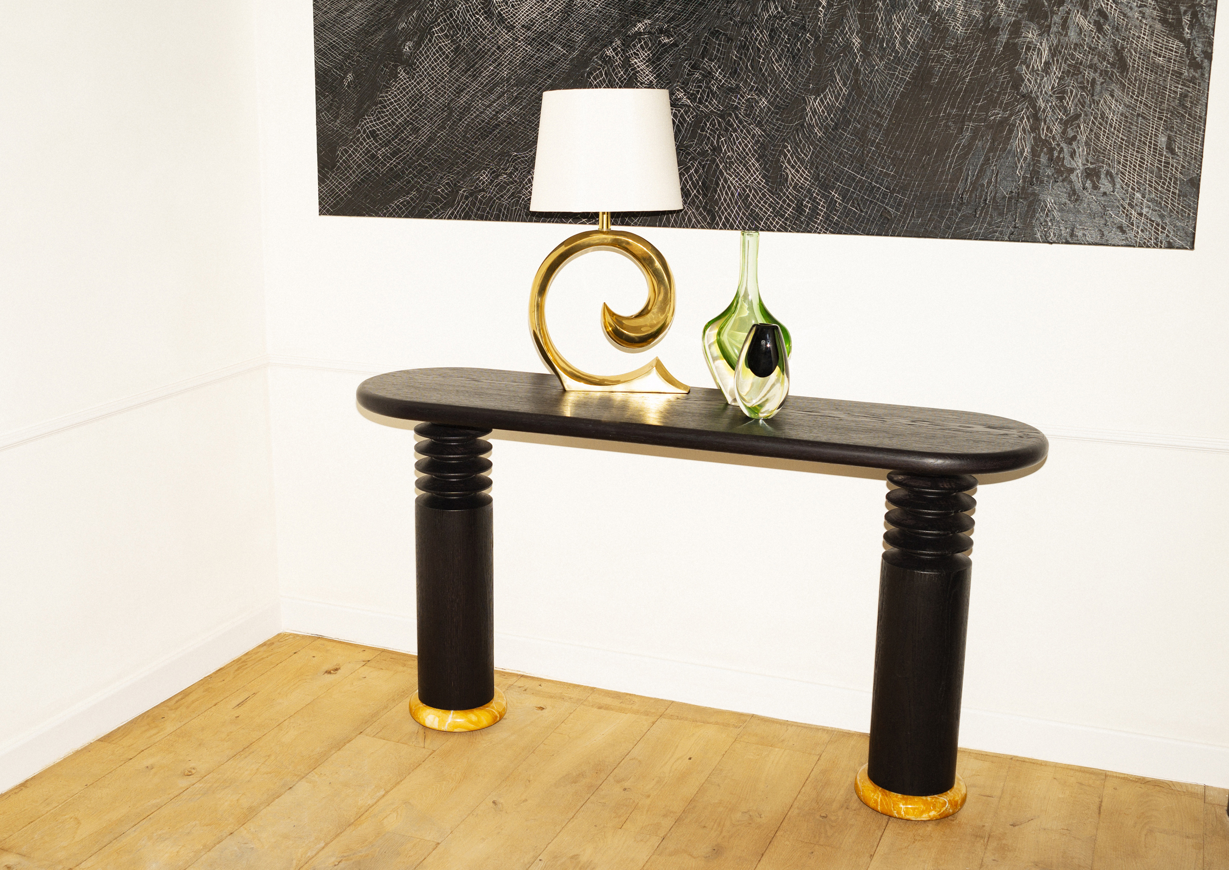 Made using traditional furniture-making methods the Hemlock console was inspired by an ancient Italian drinking chalice with its rigid leg design. Re-imagined with a contemporary marble foot and bullnose edges it softens the overall piece and makes it cohesive with our collection.