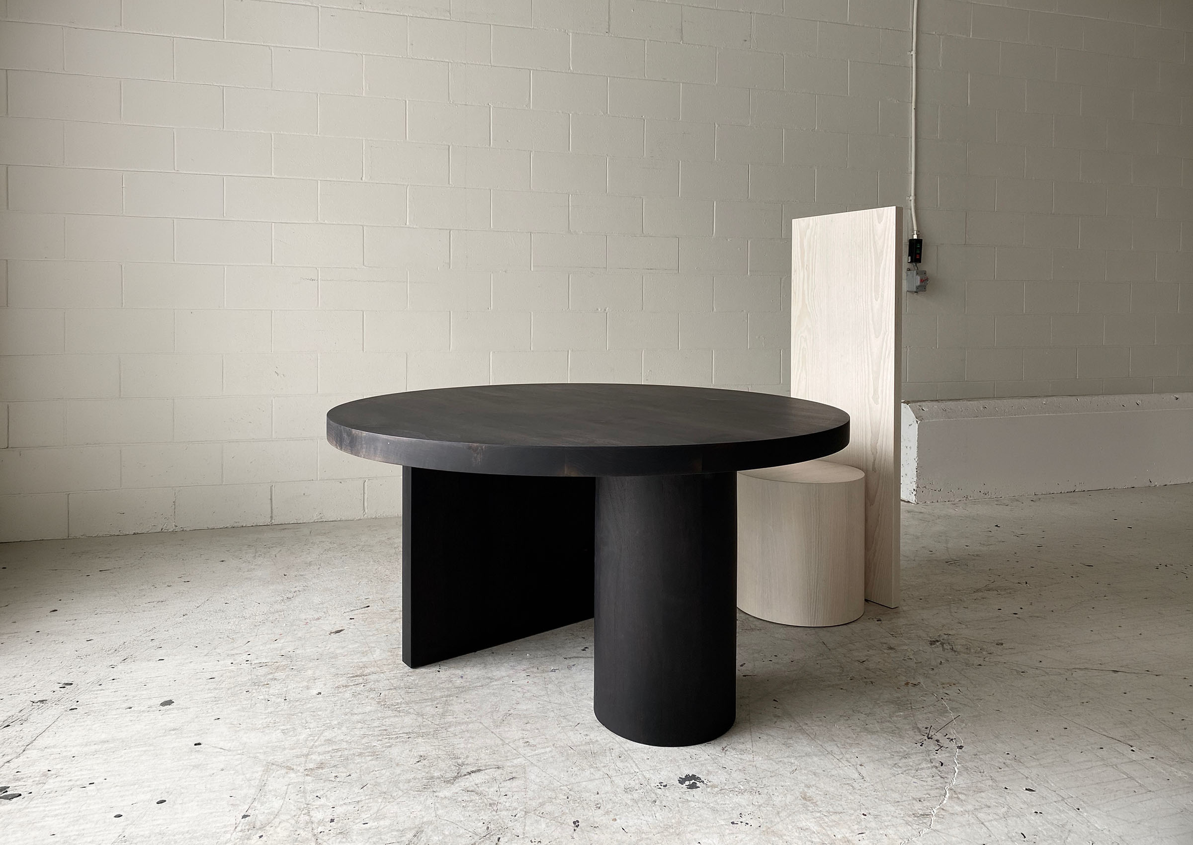 Latest from designer Christian Woo, the Column series is a collection of monumental furniture pieces designed around a large diameter of lathe turned solid wood support column and planes crafted from solid 2.25" thick hardwood. The Column series consists of a dining table, bench, and console/desk.