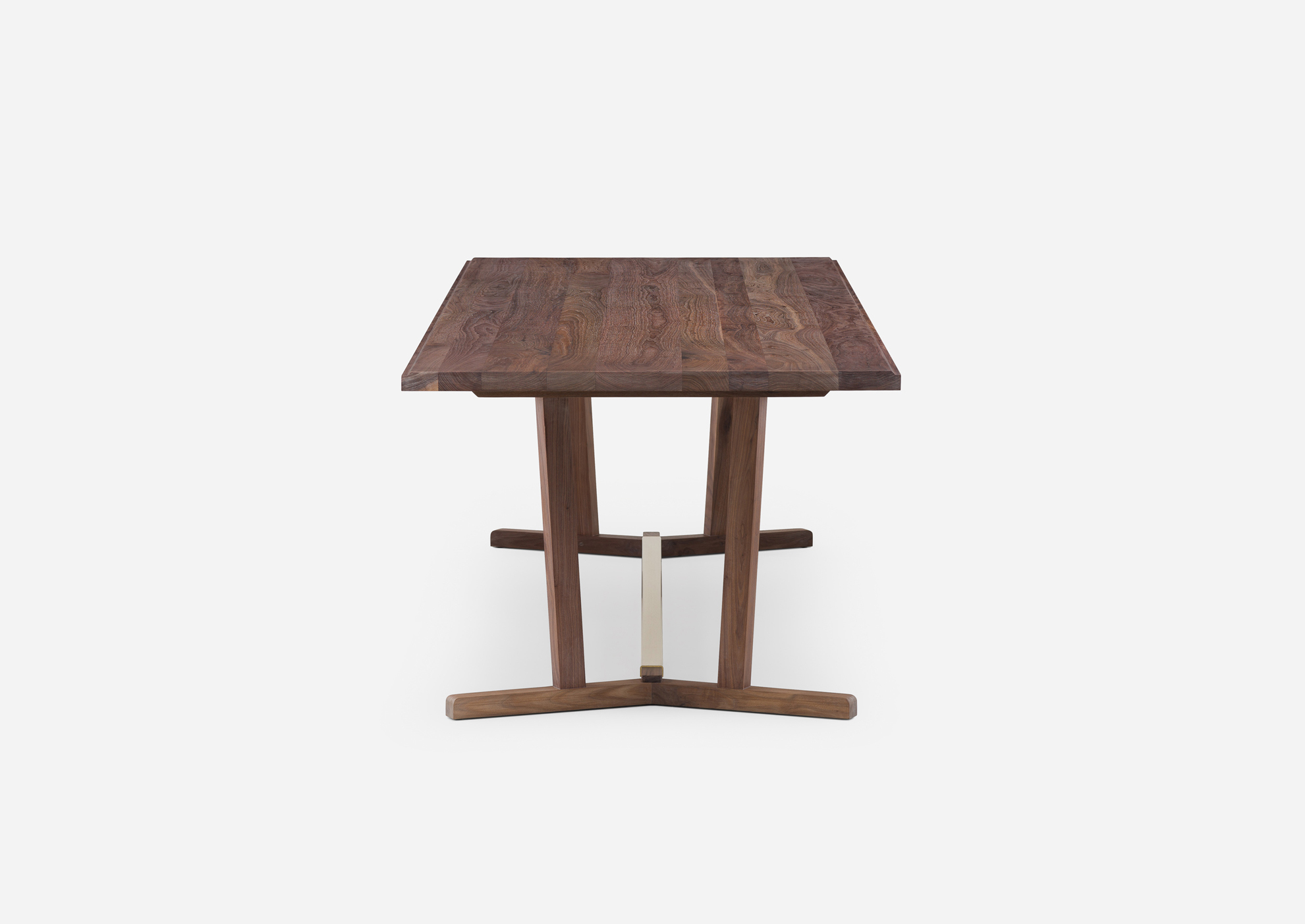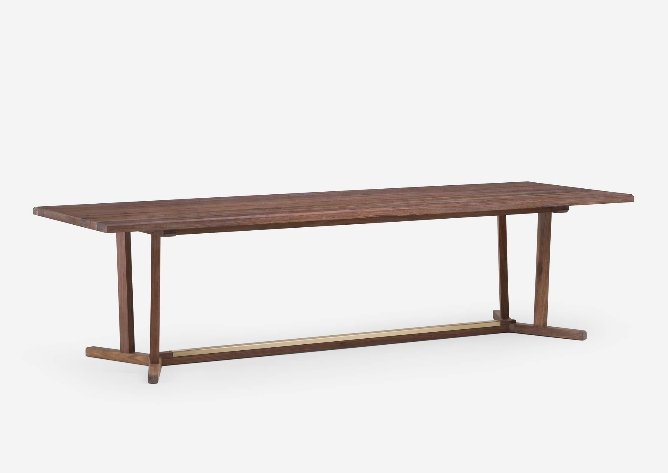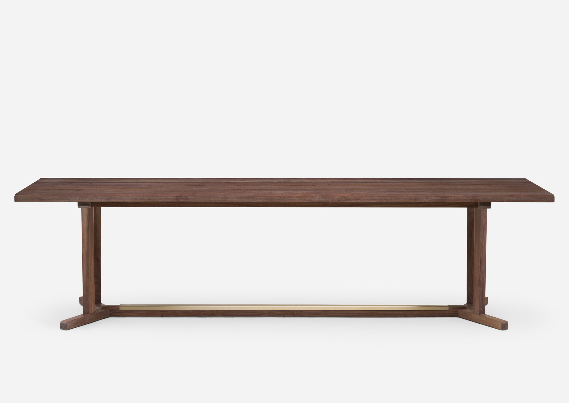 Shaker is a dining table inspired by the simple, honest, and utilitarian approach of the movement after which it is named. The leg frame recalls that of a refectory table and includes a brushed brass detail on the cross beam. The Shaker is also available with a marble tabletop and as a round table. Designed by Neri&Hu and manufactured by De La Espada for the Neri&Hu brand.
