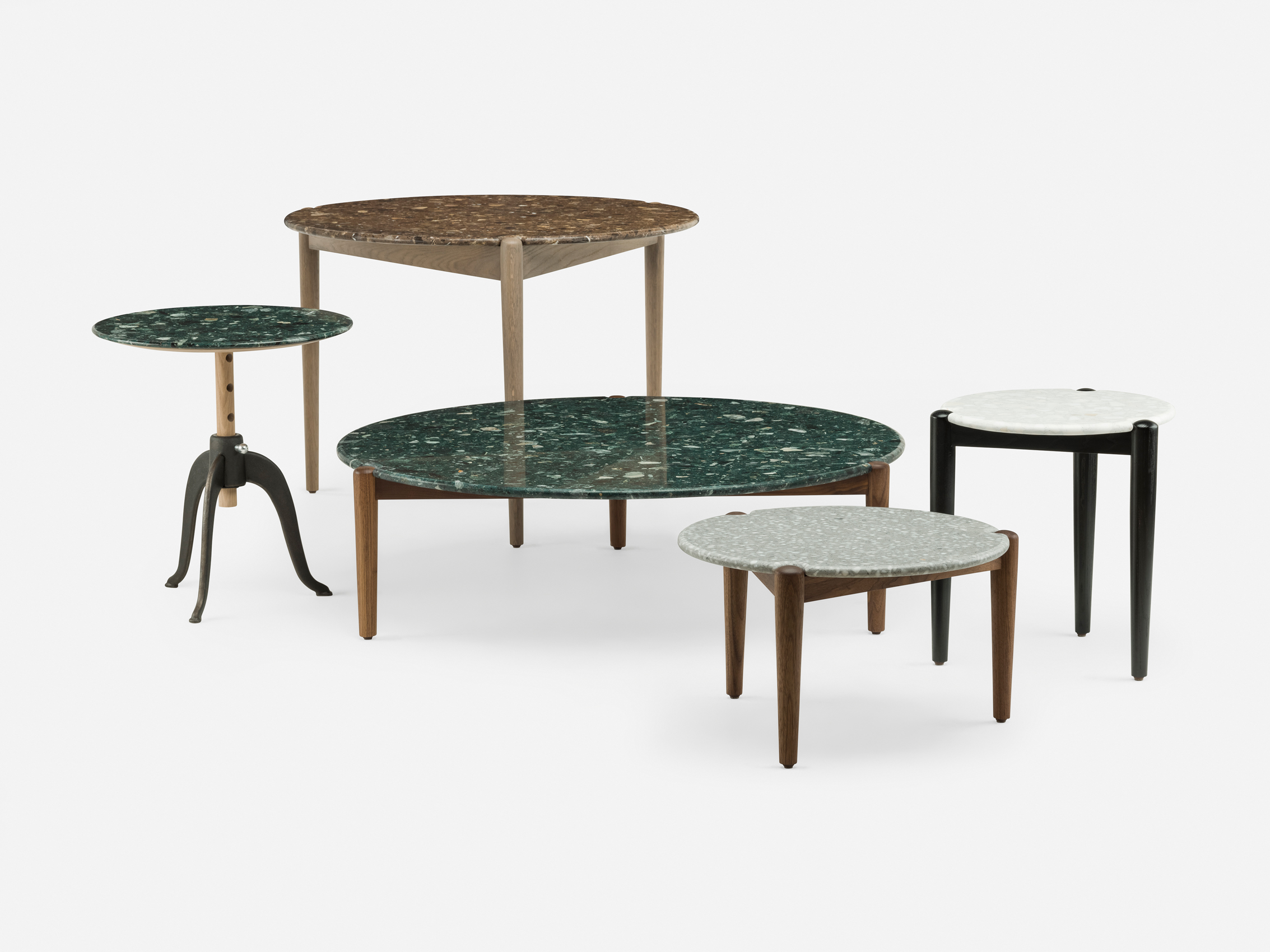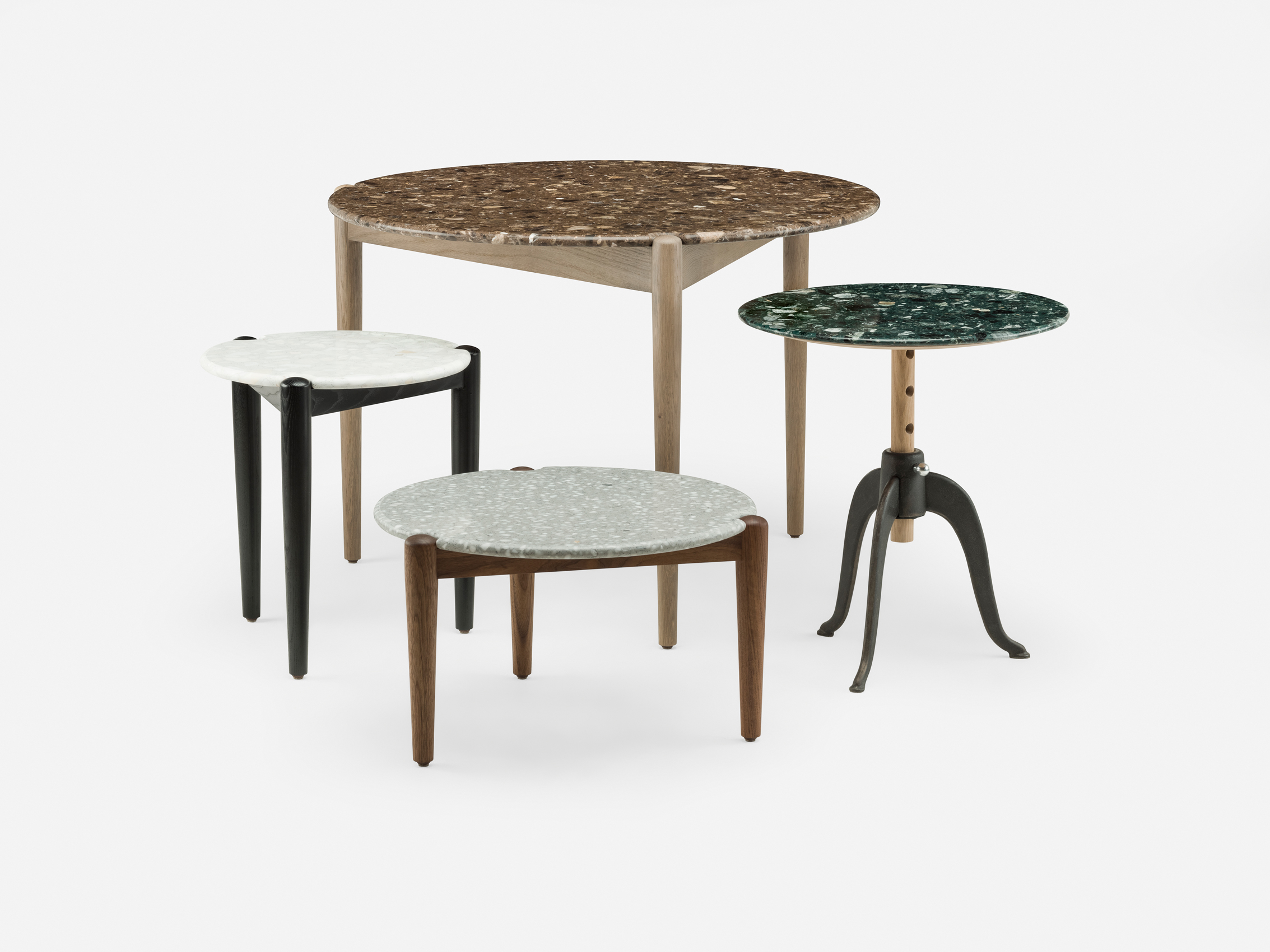 Sidekicks, launched in 2011, is a series of small & large tables that live throughout the home to accommodate our different activities. They have a slender solid wood frame and a removable tabletop. The Sidekicks series are now available with a terrazzo tabletop in the choice of colors Branco, Cinza, Verde or Castanho.