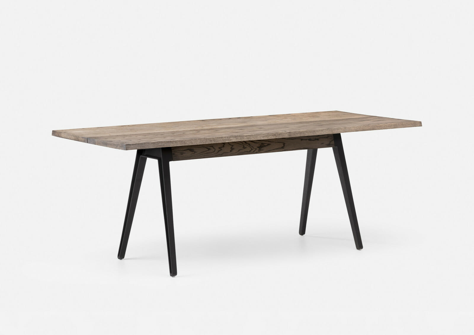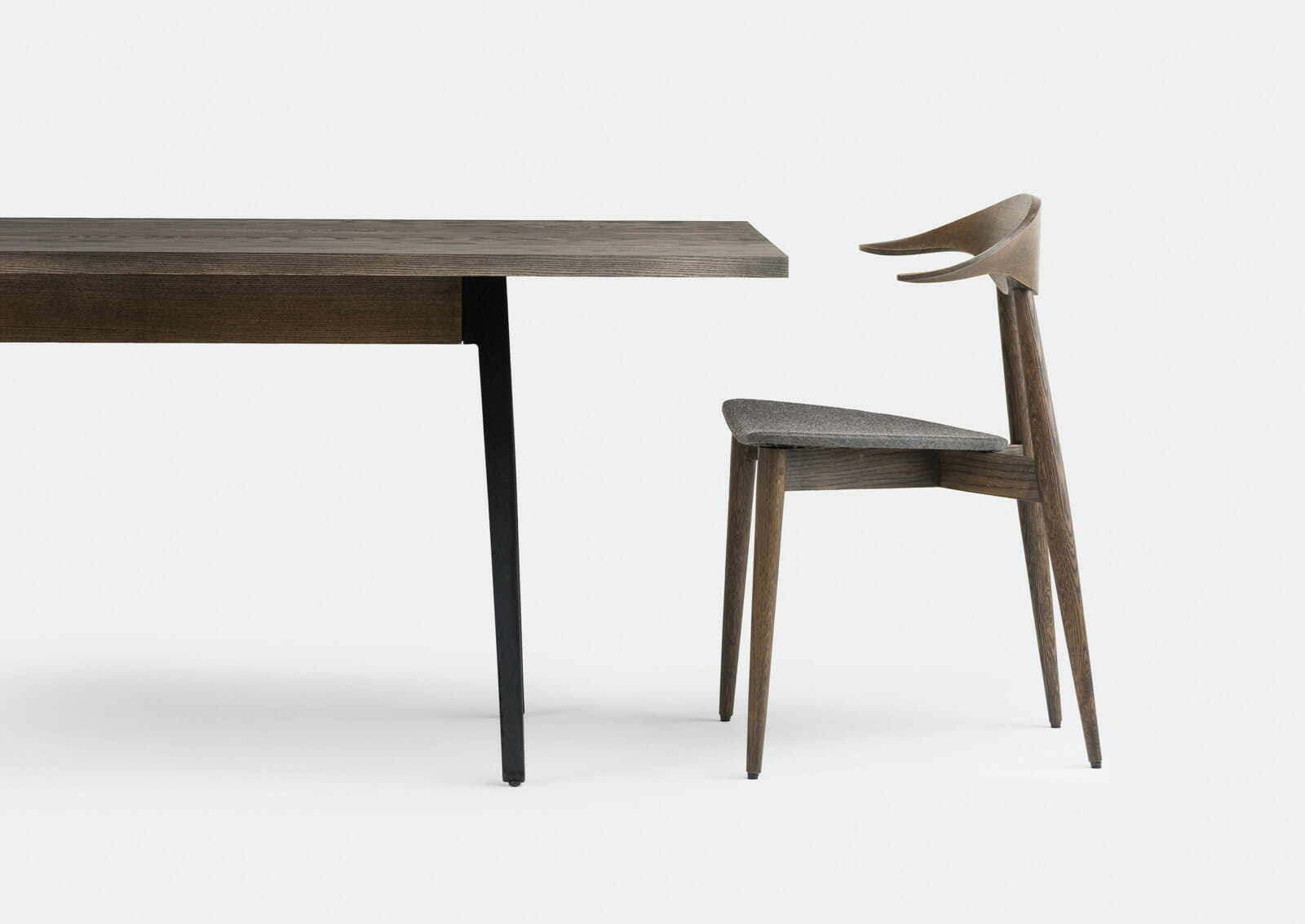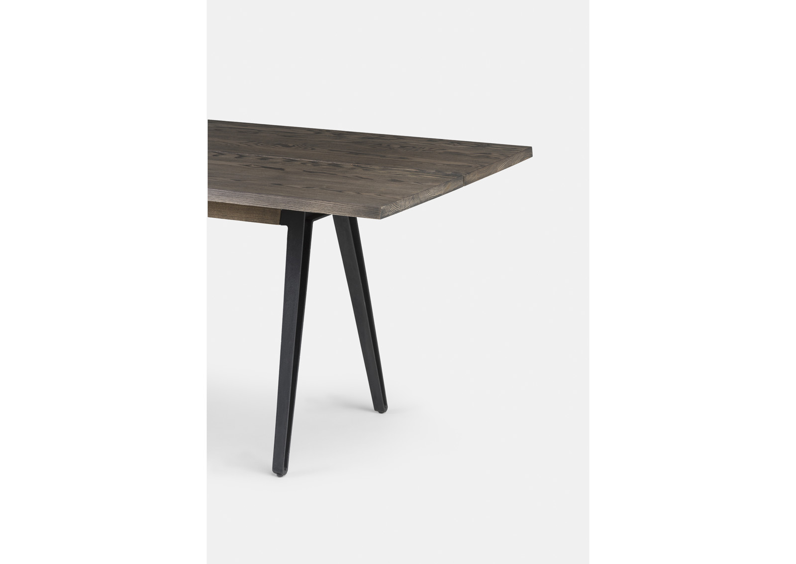 The Welles table makes generous use of solid wood with an elegantly simple form. The tabletop, detailed with a central divide and angled edges, is set upon cast iron legs. This table is quietly functional while remaining approachable and appealing to the senses. Designed by Matthew Hilton for his eponymous brand, and manufactured by De La Espada craftsmen.
