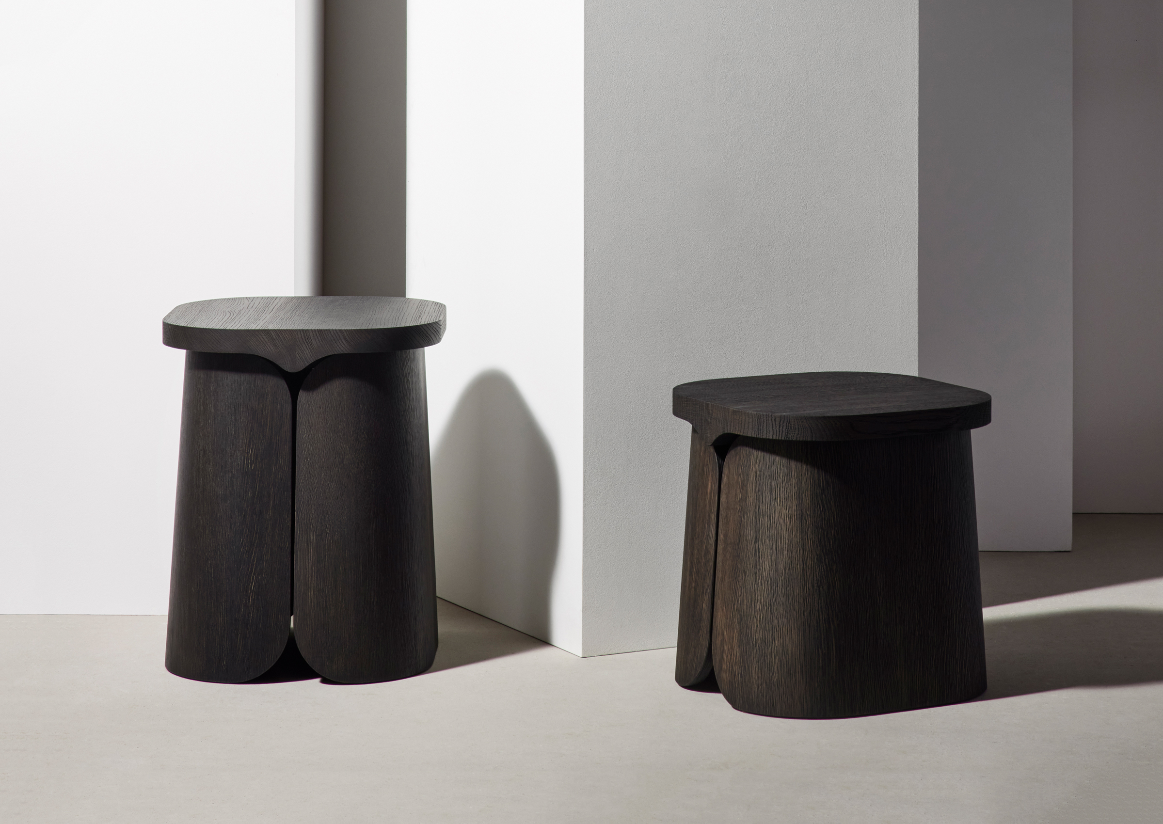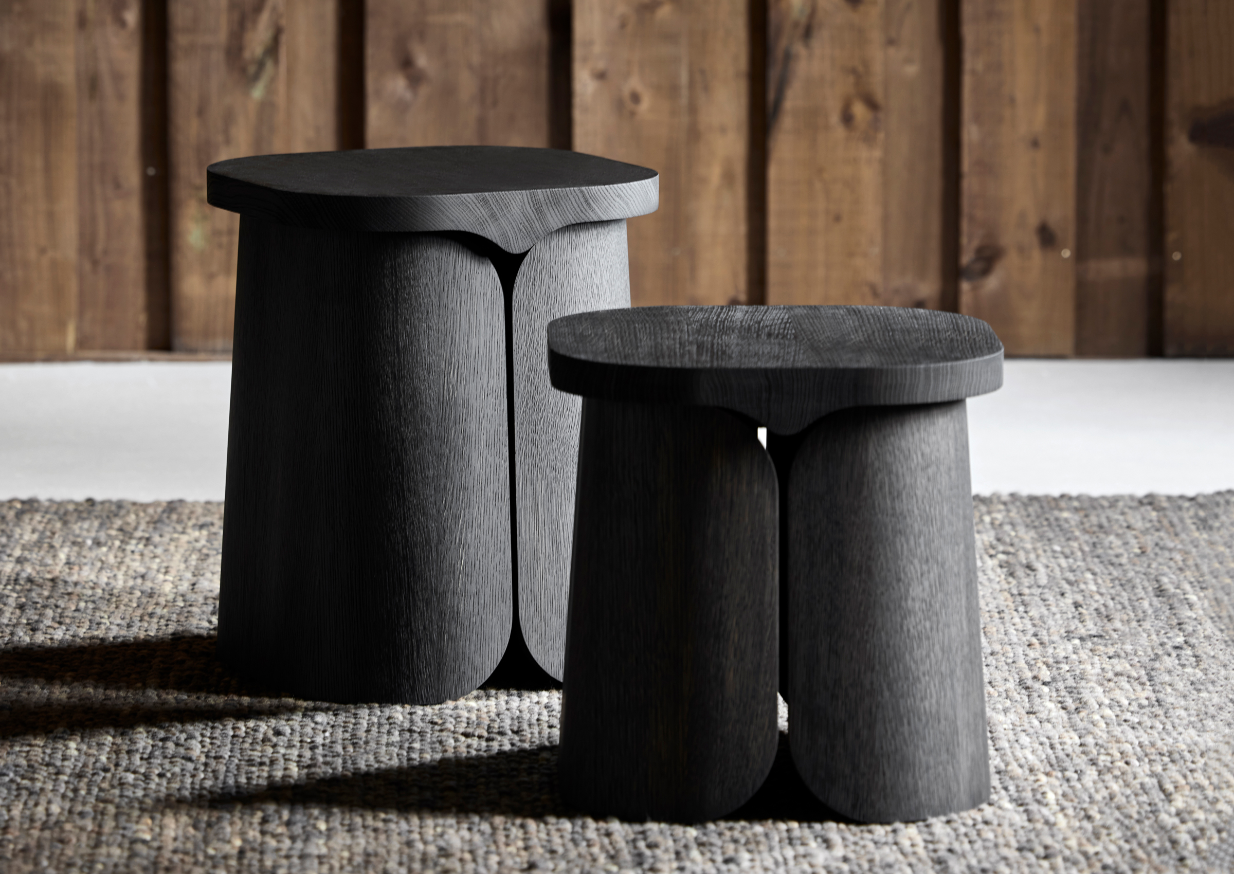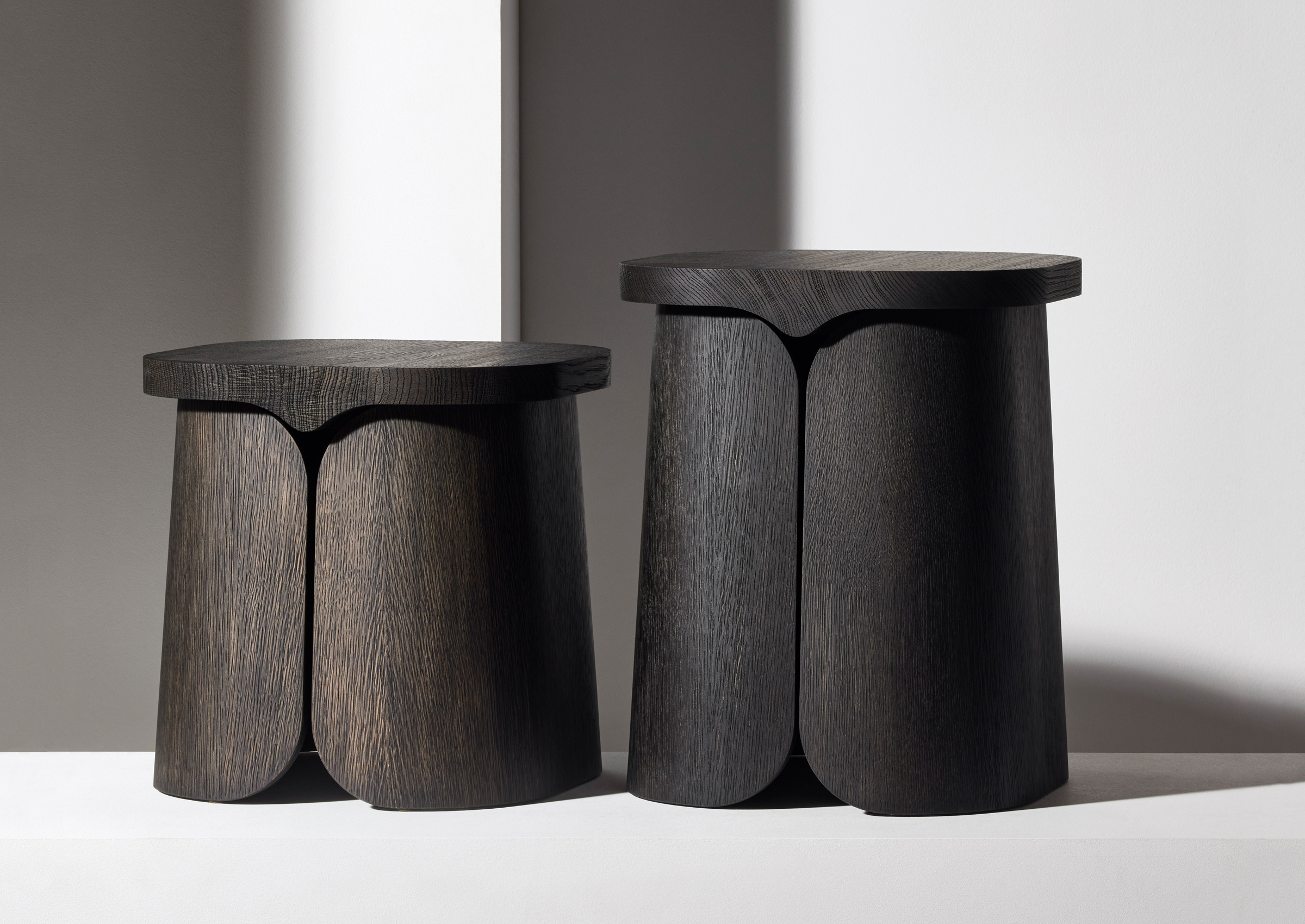 Mio Side Tables, designed by Christophe Delcourt for Collection Particuliére, are available in oak or brushed oak, providing a versatile and stylish addition to your living space.