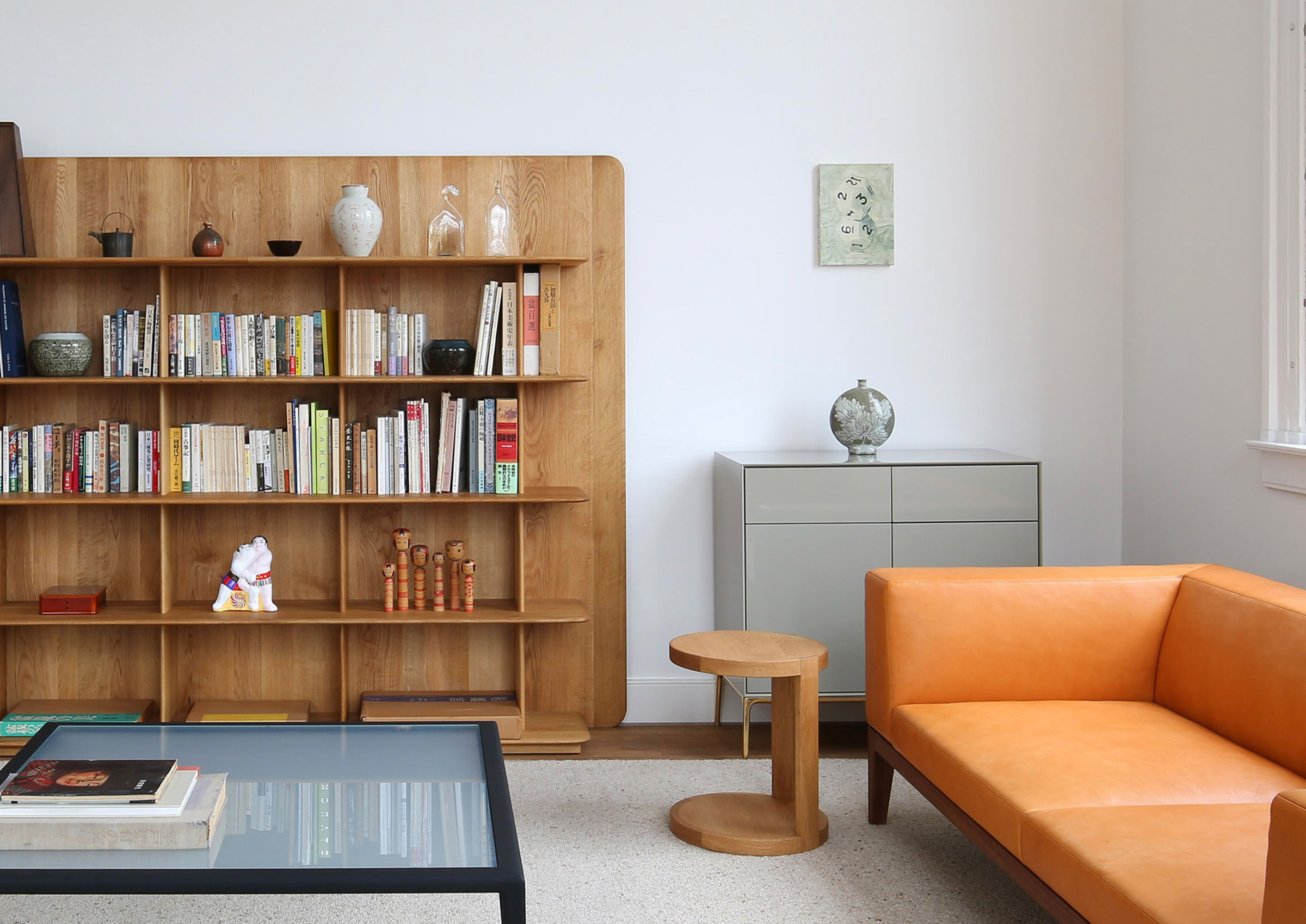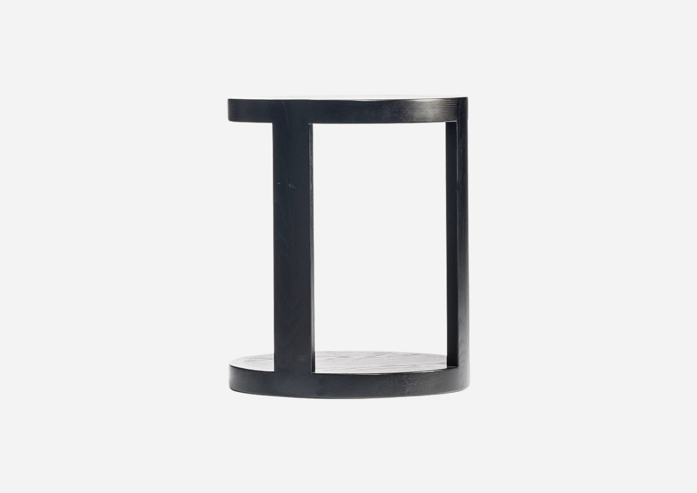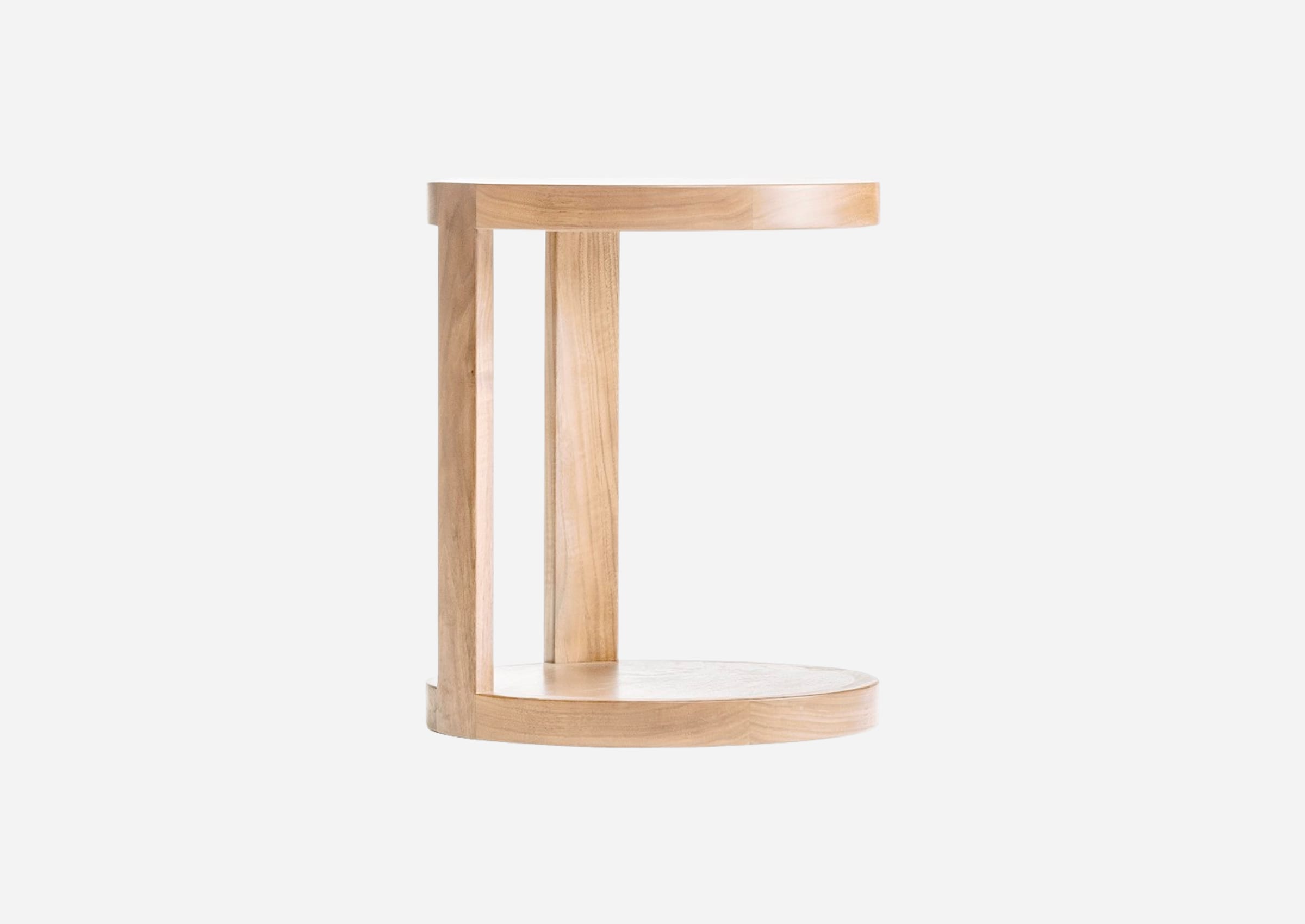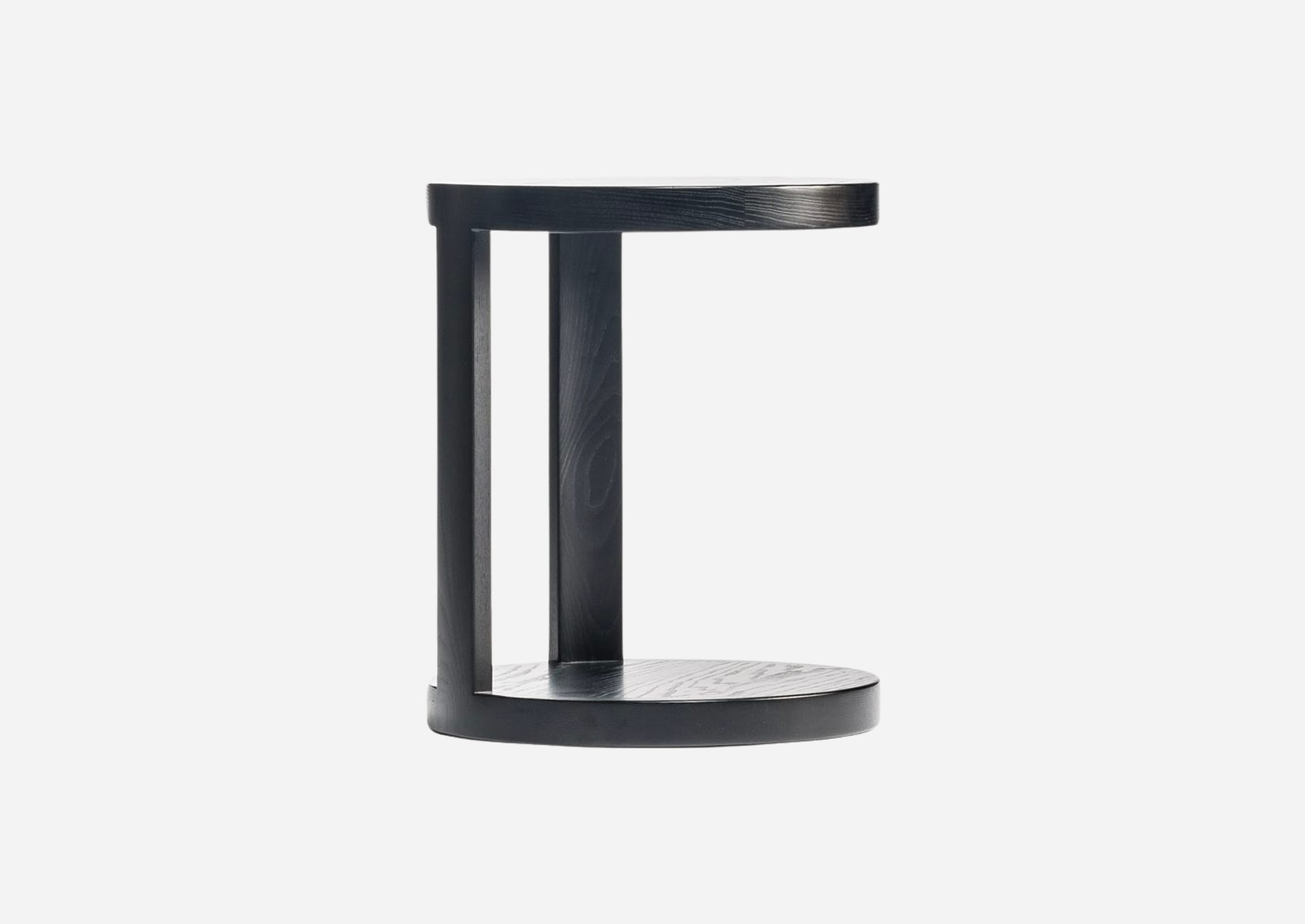 This side table was designed to be placed by the side of a sofa or inserted over a sofa seat. The side table is made by a chair factory that does not normally produce side tables, since strength and stability are the most important factors in this design. Naturally, it cannot be used as a chair, but by constructing from two slender vertical struts, a heavy tabletop, and heavy bottom board, we created the side table to have the strength and stability to withstand many years of use.