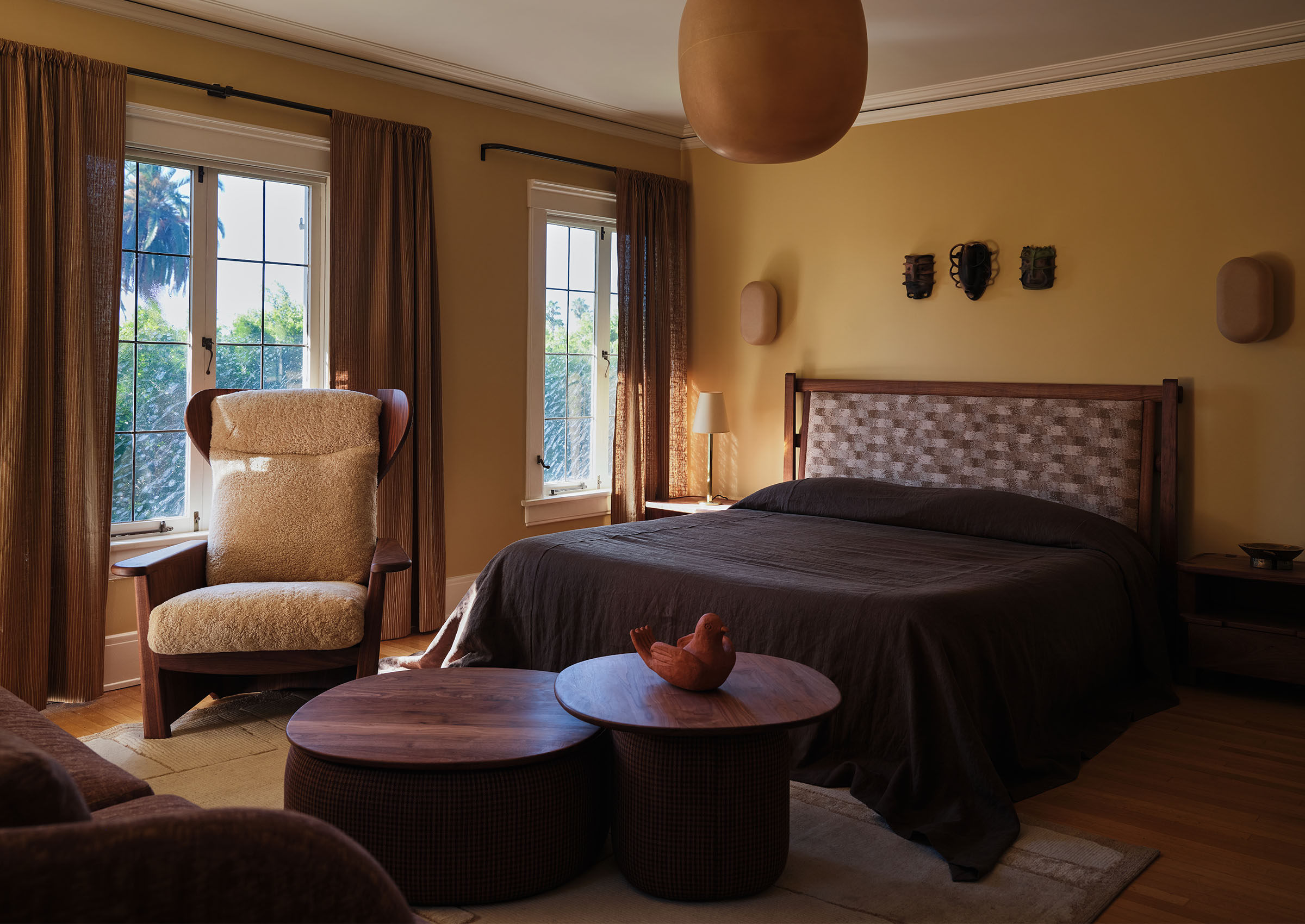 Maria, part of the Azores collection by Luca Nichetto, is a pedestal side table with a timber top and an upholstered base. The Azores collection comprises sofas and small tables, conceived as islands, allowing for flexible compositions to suit unique spaces. Each piece has a soft, rounded, sculptural shape made from luxurious upholstery and rich solid wood, highlighting the craft of De La Espada.
