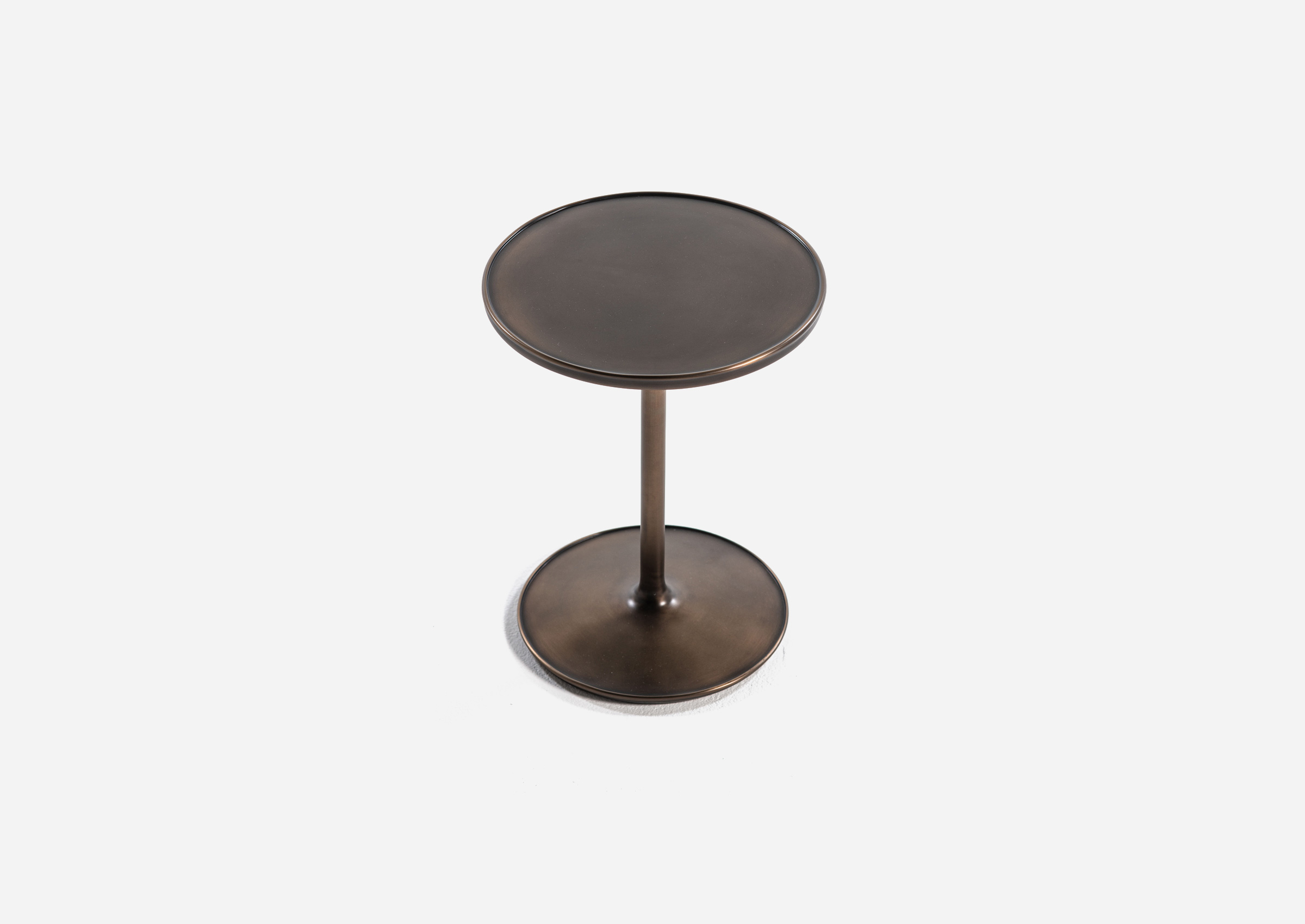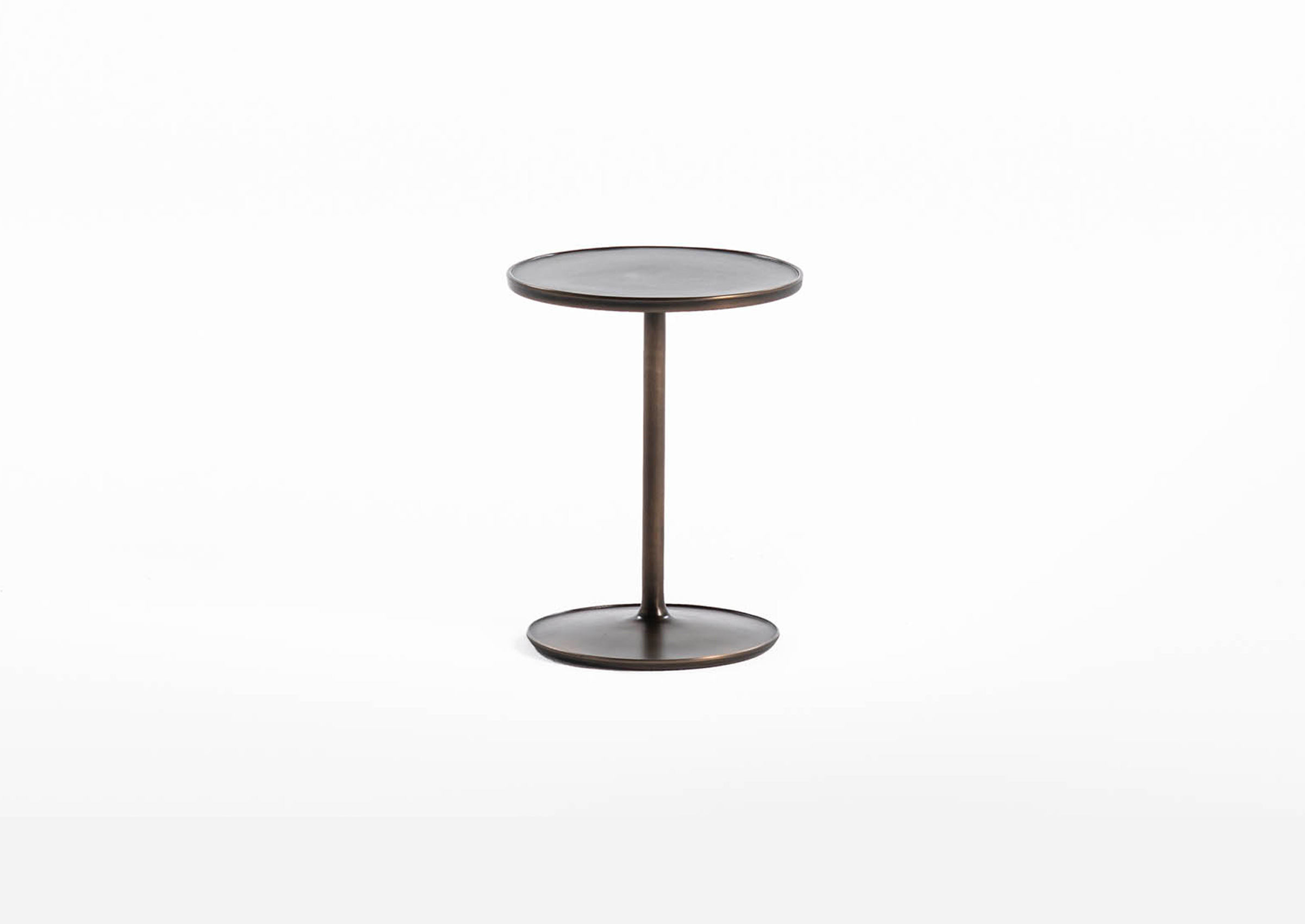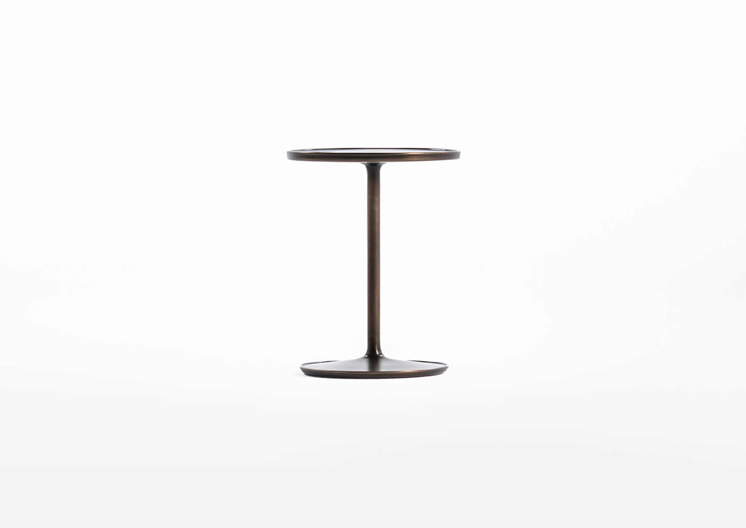 The Monk’s side table consist of three simple parts, which is a tabletop, support, and base made of bronze, to become a single mass. It is a side table, also those are being solid material and seamless form exist like a piece of art. The tabletop is designed with a gentle rising curve, giving a soft impression to the hard metal materials, and beaded edge decoration is used to achieve an Eastern aura. We used Japanese casting techniques, to utilize a free and delicate beautiful formative art to create furniture.