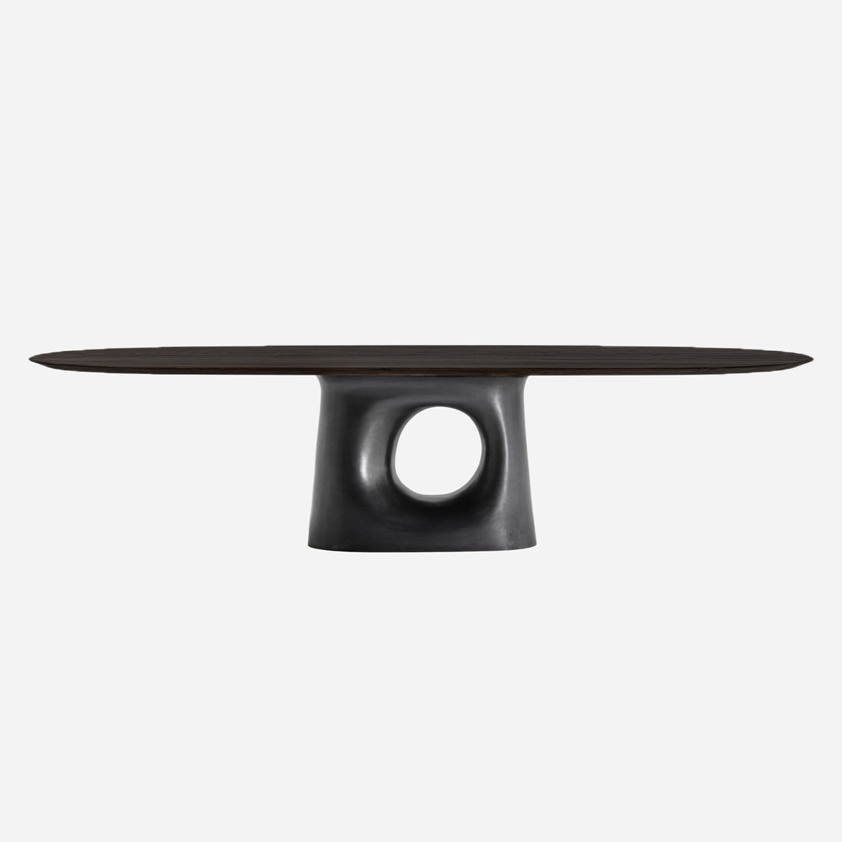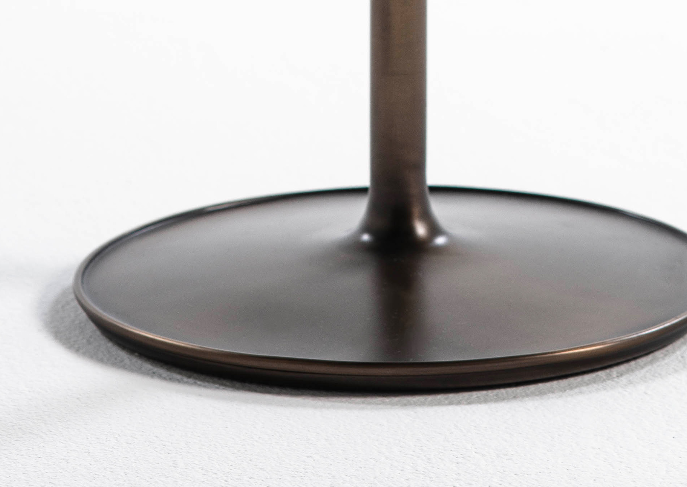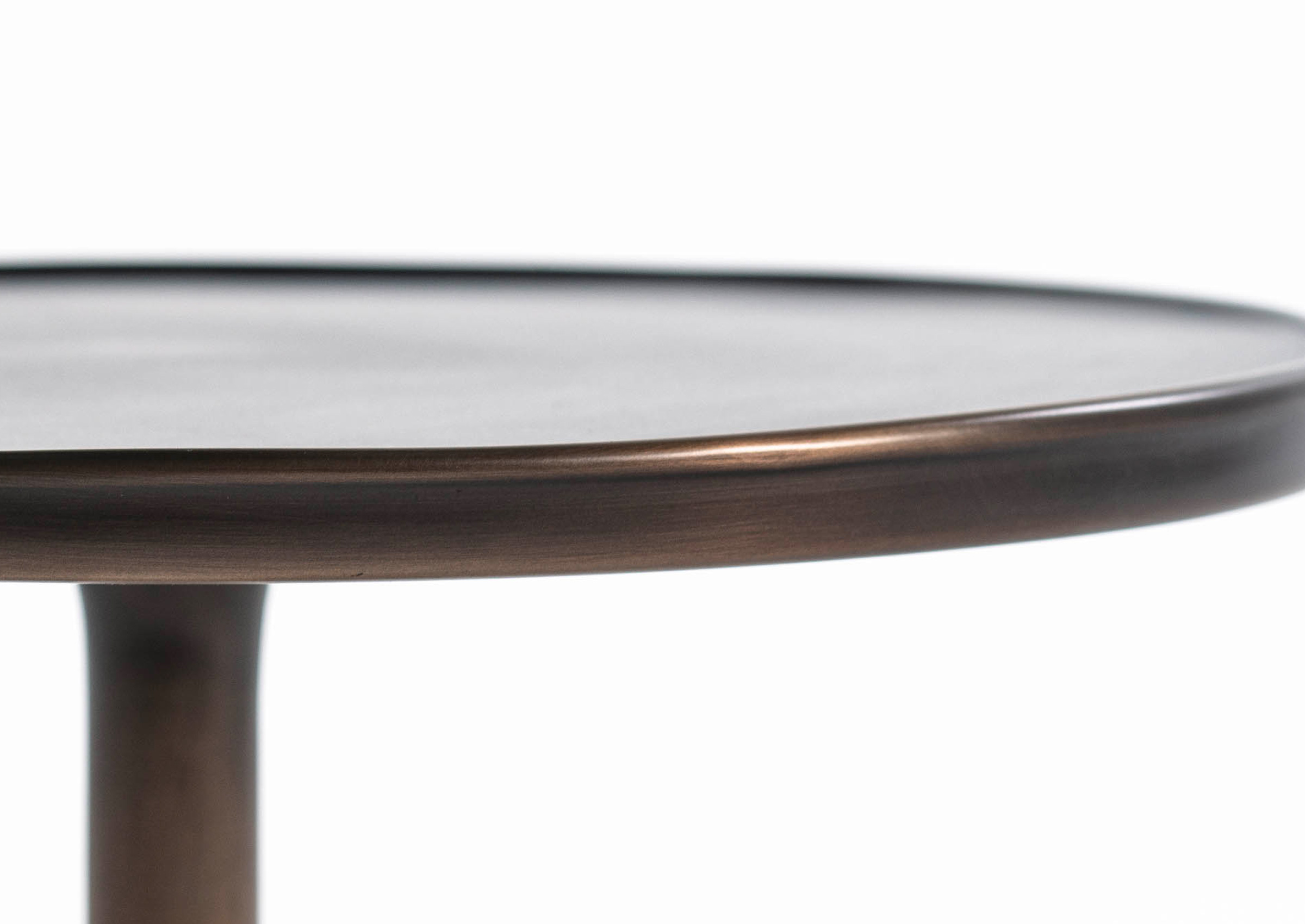 The Monk’s side table consist of three simple parts, which is a tabletop, support, and base made of bronze, to become a single mass. It is a side table, also those are being solid material and seamless form exist like a piece of art. The tabletop is designed with a gentle rising curve, giving a soft impression to the hard metal materials, and beaded edge decoration is used to achieve an Eastern aura. We used Japanese casting techniques, to utilize a free and delicate beautiful formative art to create furniture.