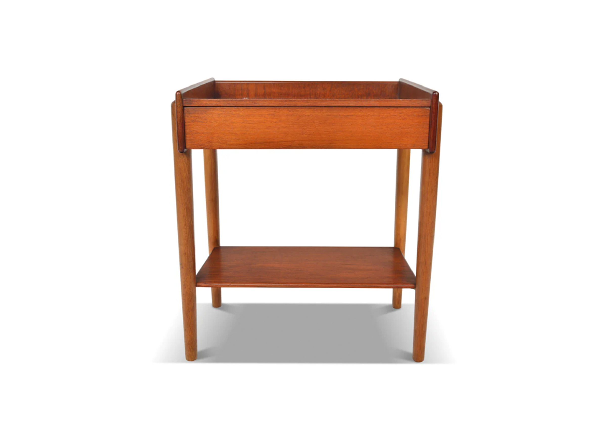 A Danish modern nightstand in teak and oak, defined by clean lines and balanced proportions. Designed for everyday use, it offers bedside storage in a compact footprint.