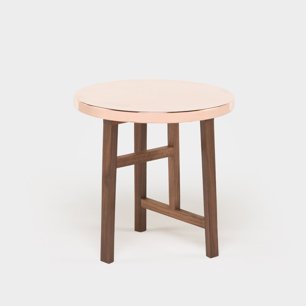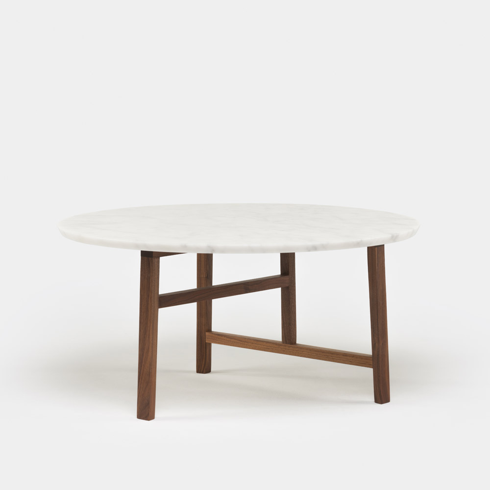 The Trio series is a tectonic exploration where the composition of the table legs is the design focal point. The tables stand on three legs, with each leg attached to another leg with an intermediate horizontal substructure. The tables express a purity of form and material, with the unexpected design focus under the table, where an intricately composed latticework brings a hidden elegance to the otherwise simple and unassuming table ensemble.