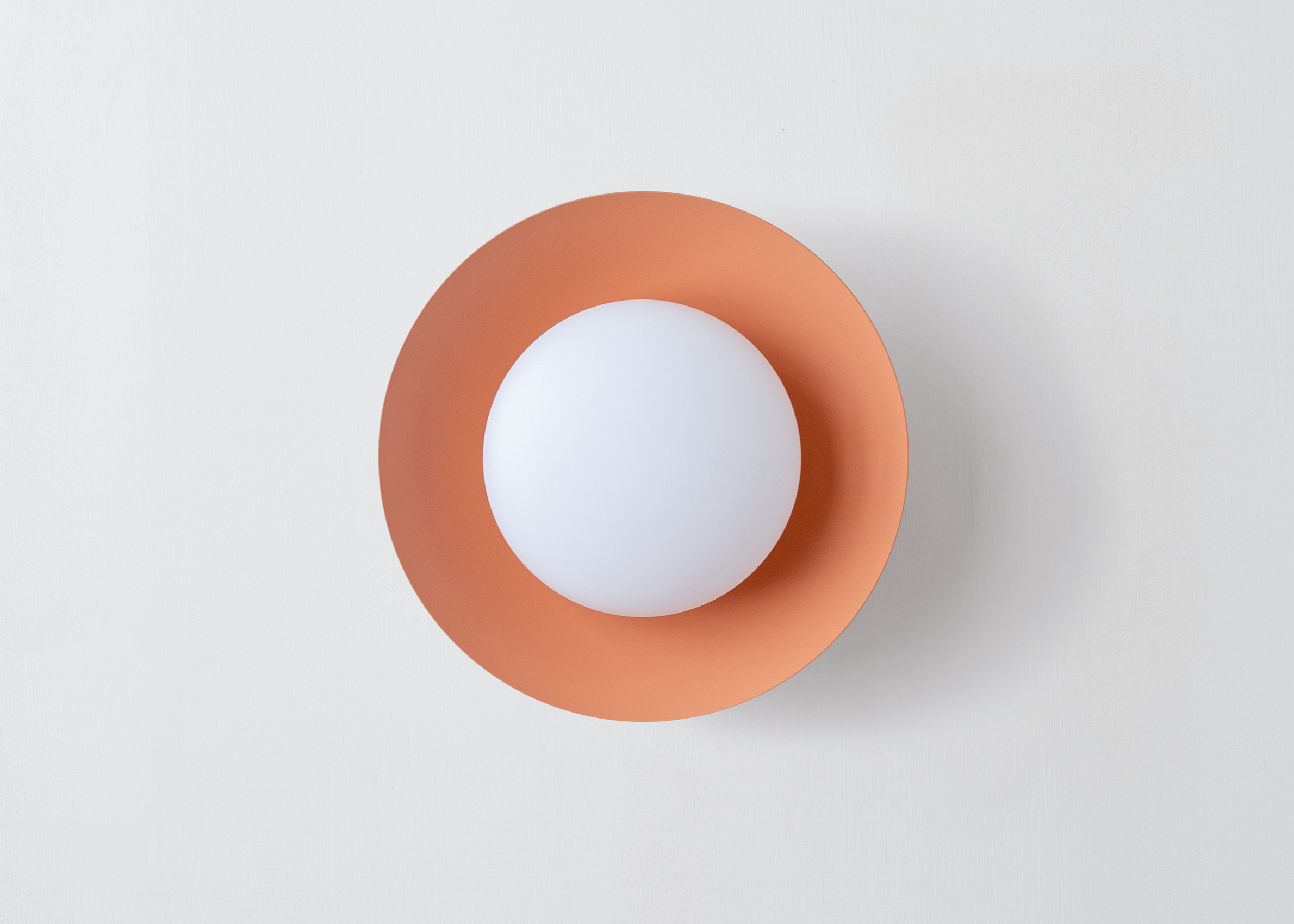 A graceful surface mount that pairs an elliptical, hand-blown Mushroom diffuser with the gentle arc of a machined metal Arundel shade. Designed for maximum versatility, it’s available in a range of mix-and-match finishes and can be mounted to either walls or ceilings.