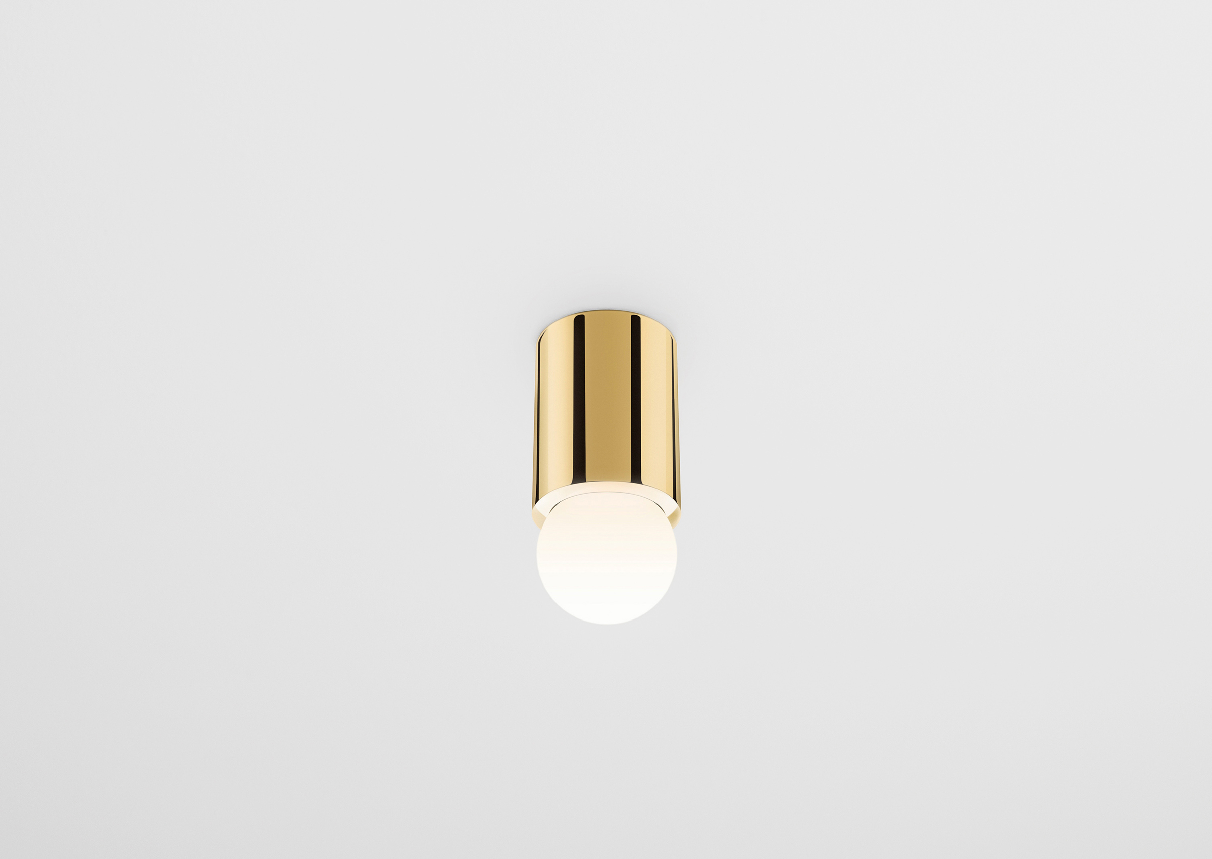 Michael Anastassiades challenges the perfection of the sphere through the interference of foreign geometries, while maintaining a level of discipline in various balanced compositions. This lighting collection includes two ceiling or wall flush mounts, available in polished brass.