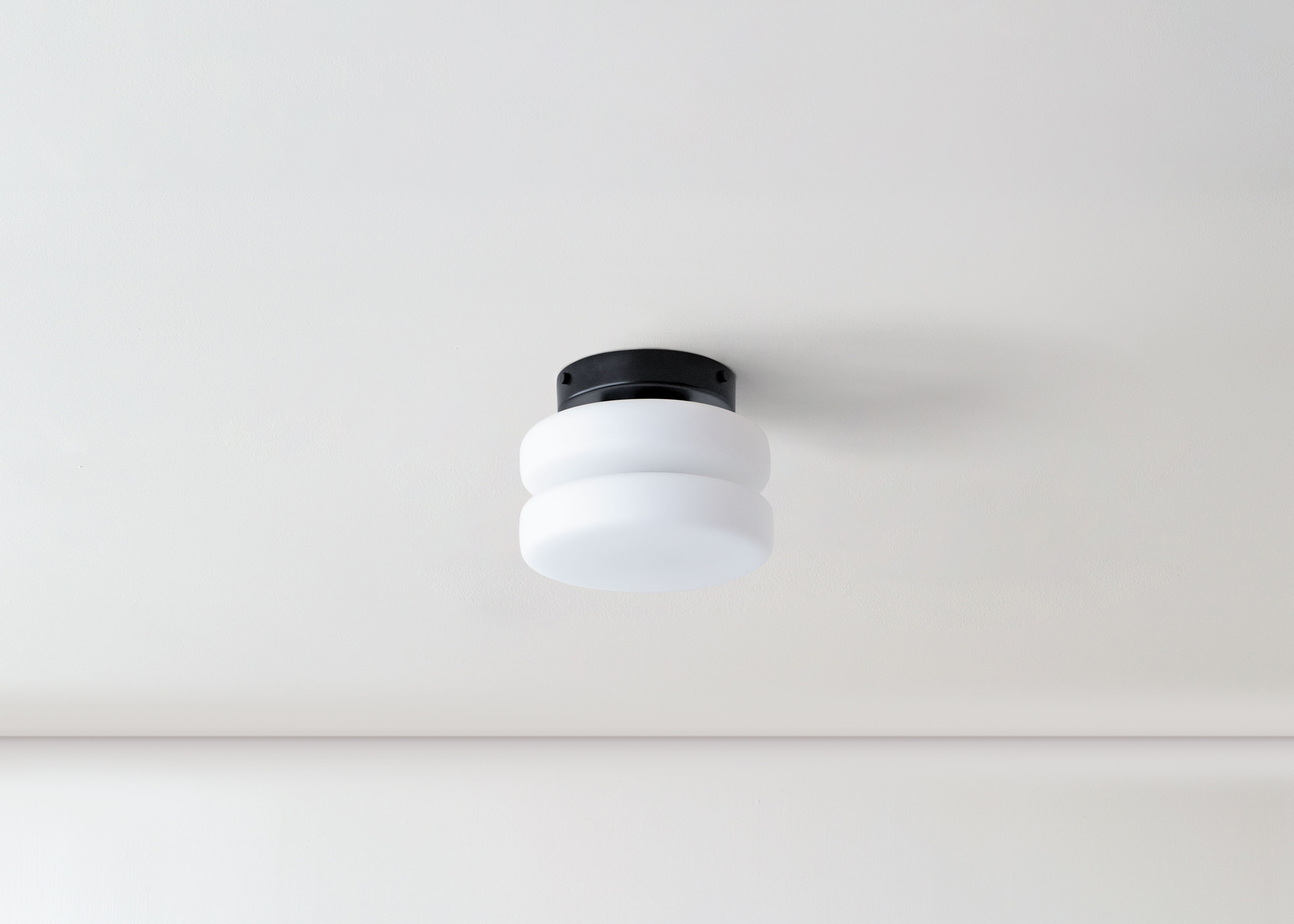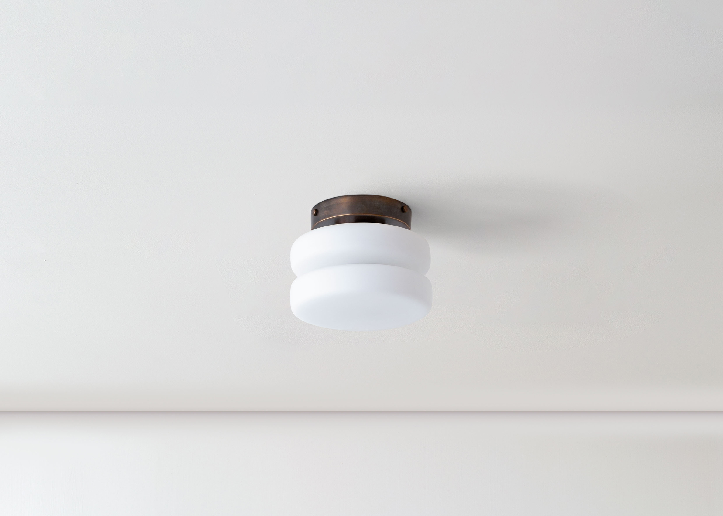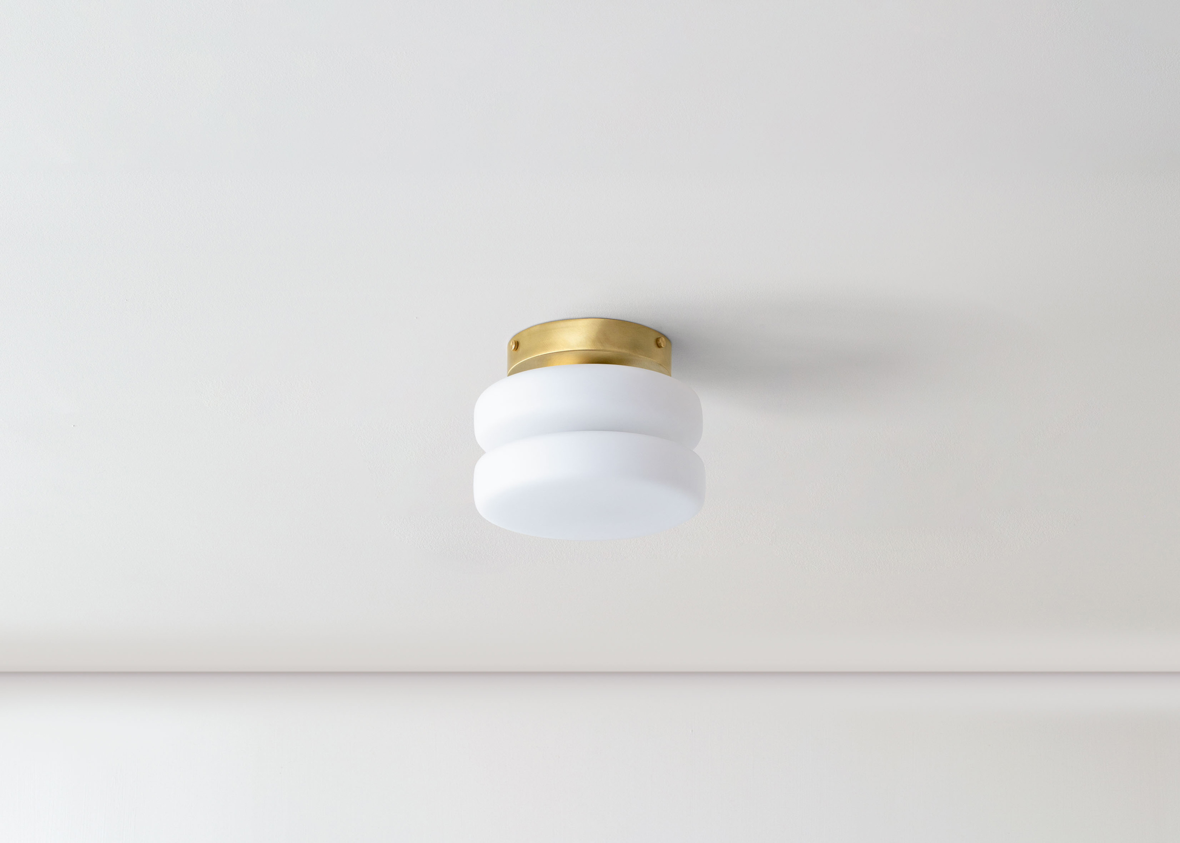 A no-frills fixture with a duo of hand-blown glass discs at its center. Designed for spaces of every style and scale, Puck lights are available in a range of finishes and can be mounted to either walls or ceilings.