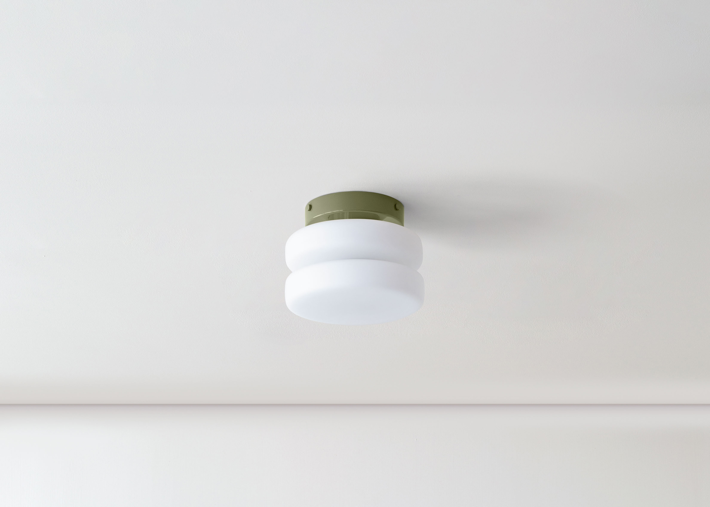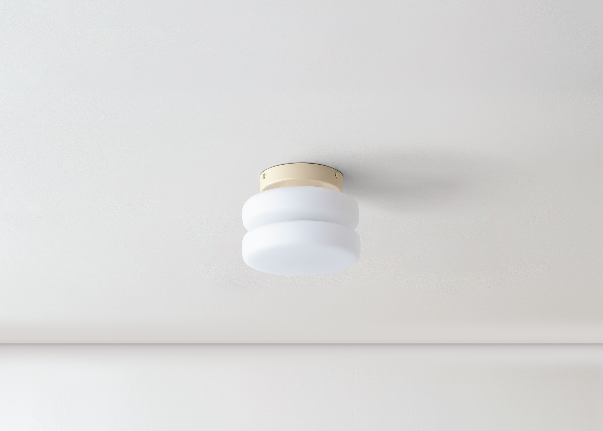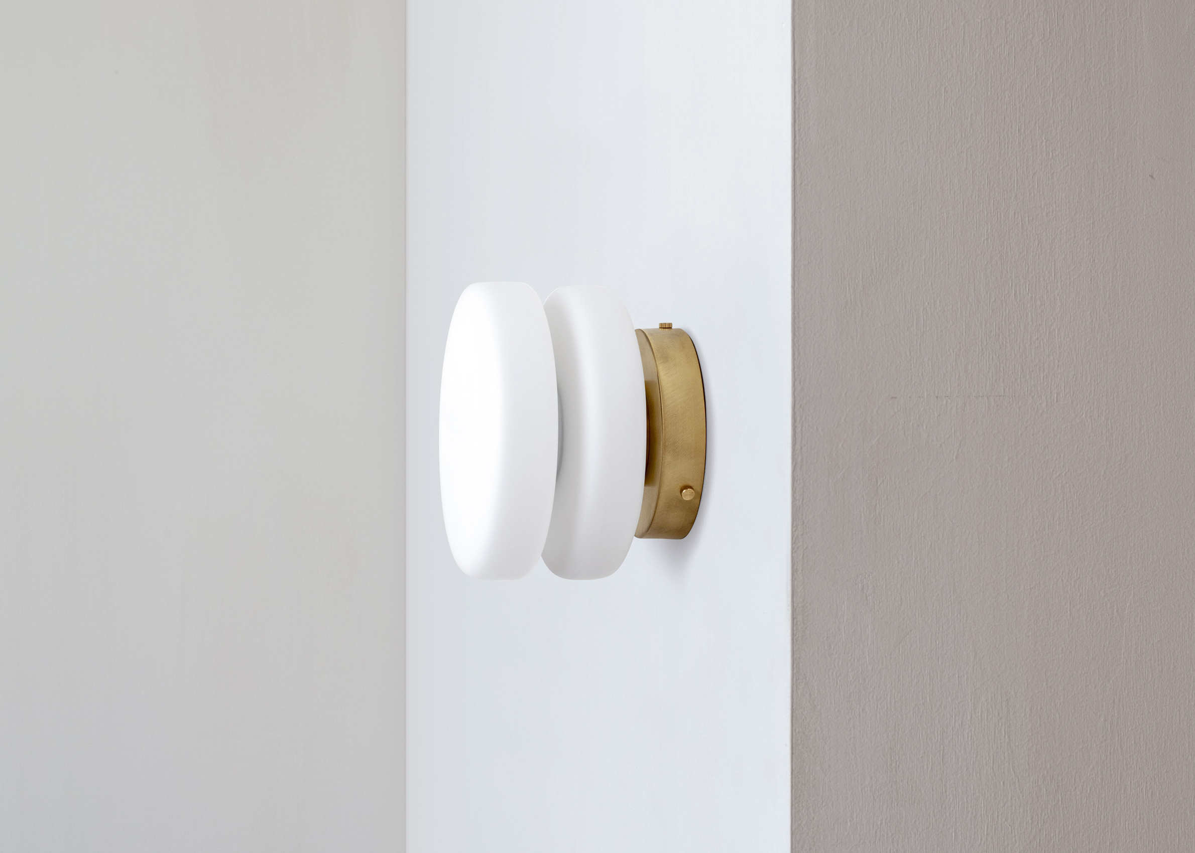A no-frills fixture with a duo of hand-blown glass discs at its center. Designed for spaces of every style and scale, Puck lights are available in a range of finishes and can be mounted to either walls or ceilings.