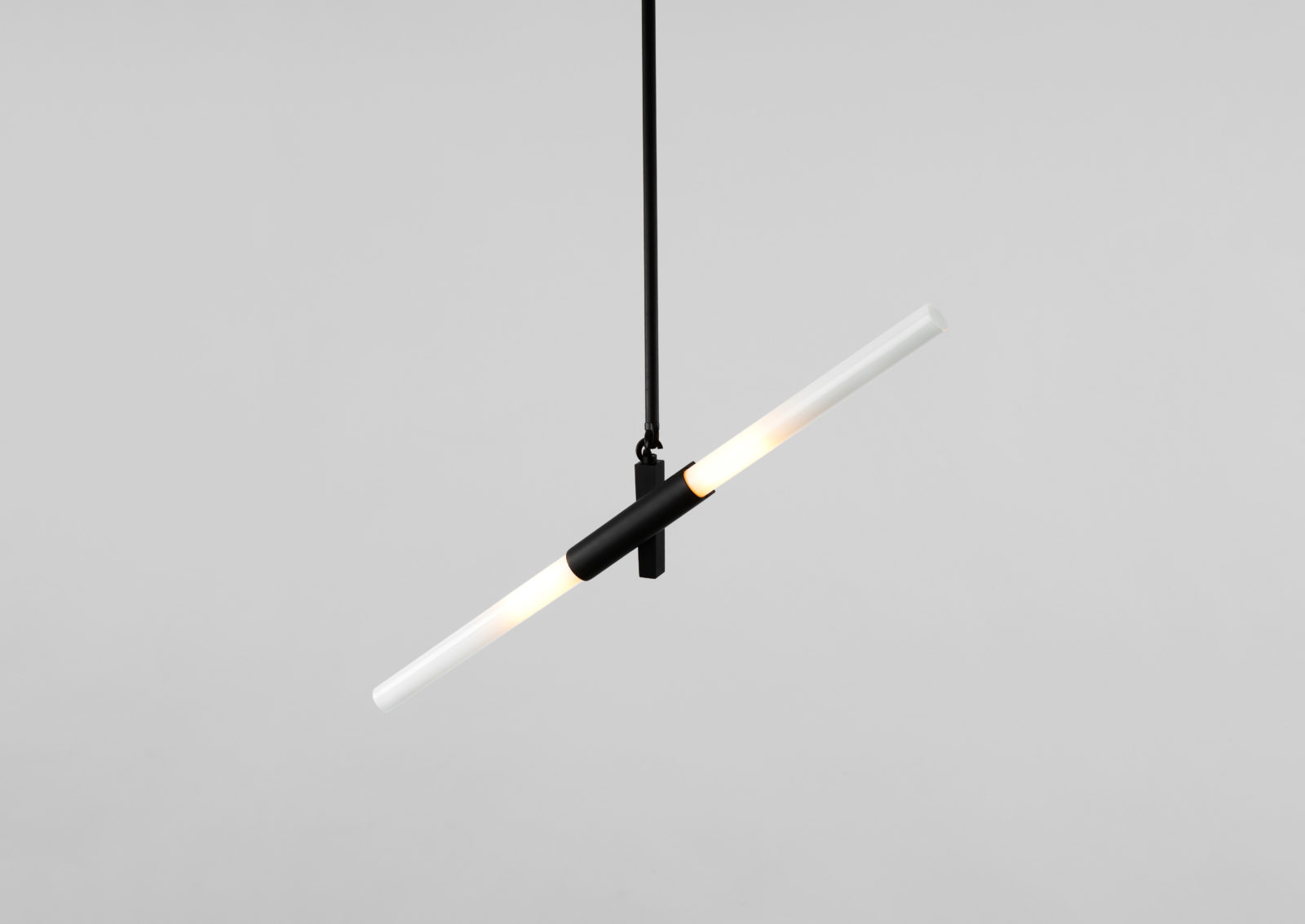 Originally conceived as a candelabra, Agnes takes its inspiration from the fictional heroine of the same name, a worker in the world's oldest profession during the 1849 California Gold Rush. The modular system would allow Agnes easy setup in her makeshift "workspace." In this version, glowing glass tubes replace the candles. Articulated joints allow the glass to be arranged in a multitude of ways.