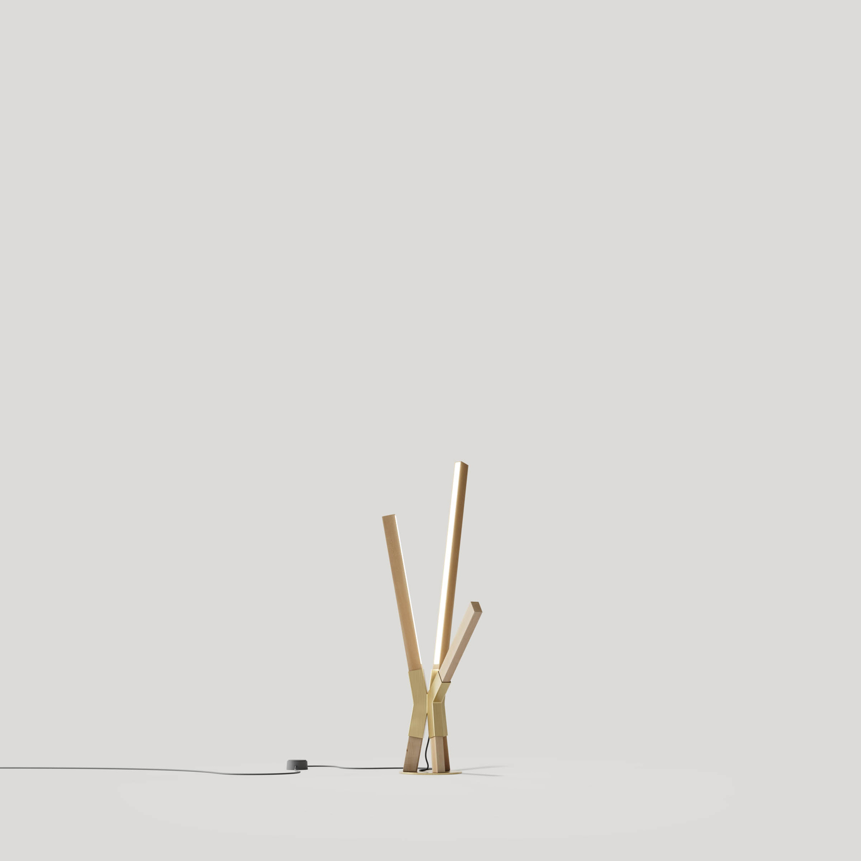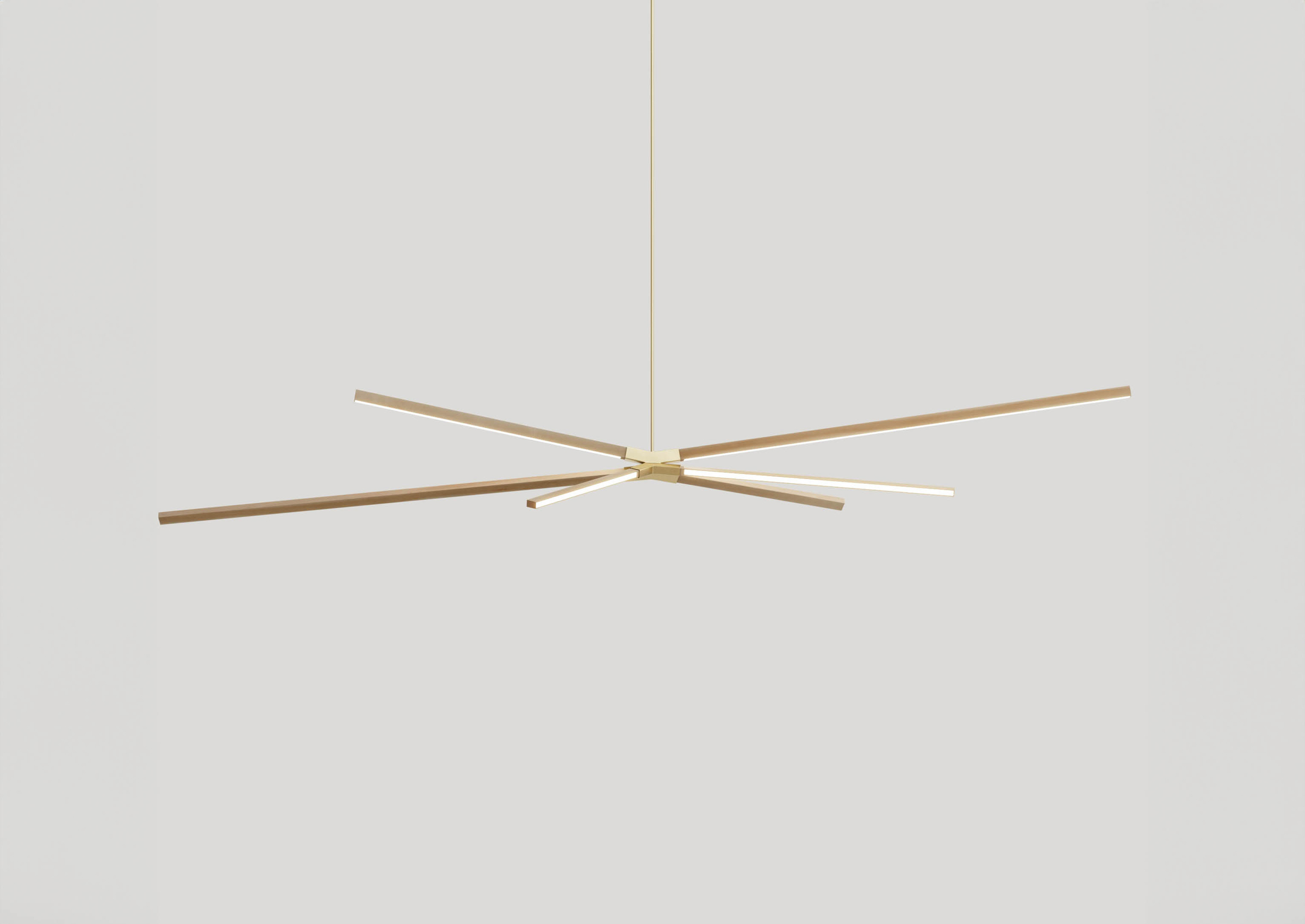 Skybang is comprised of 6 solid wood sticks of varying lengths held in place by a central steel socket and stem. It casts warm light in all directions, conjures the dynamic shape of abstract trees, and is commonly used alone or in clusters for both residential and commercial spaces. Span ranges from 5-10ft. Ships flat-packed.