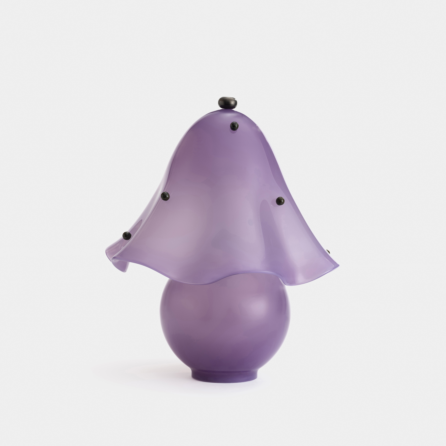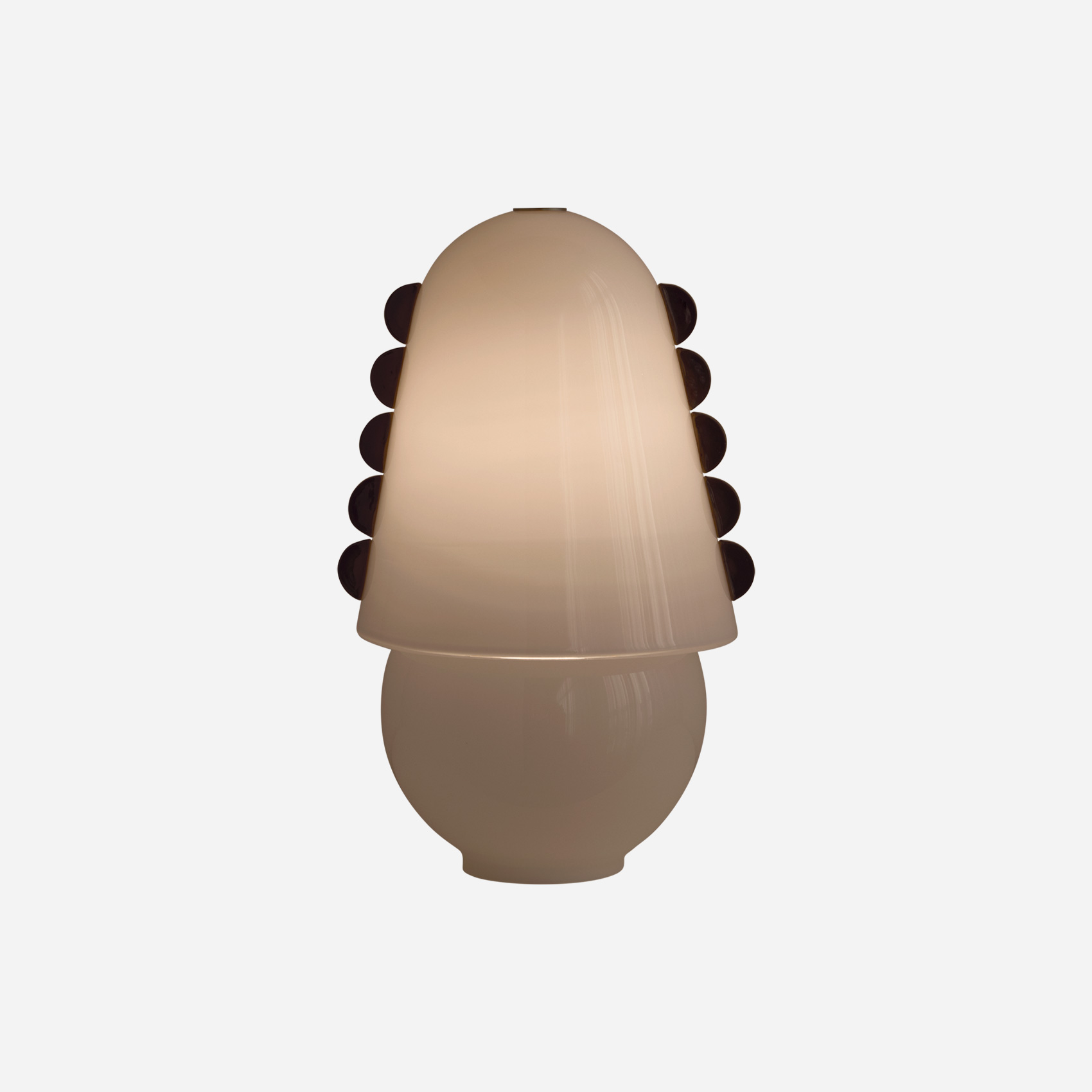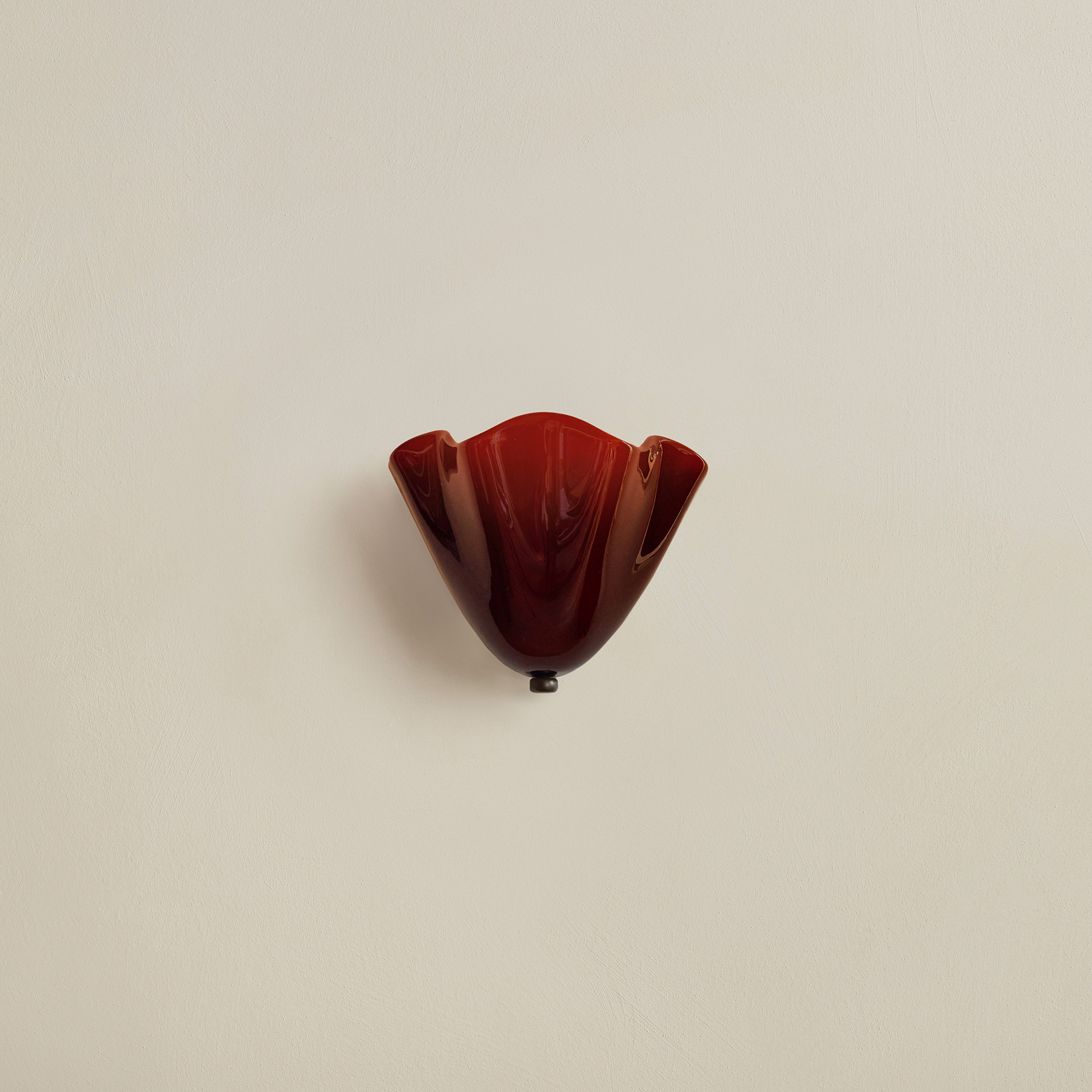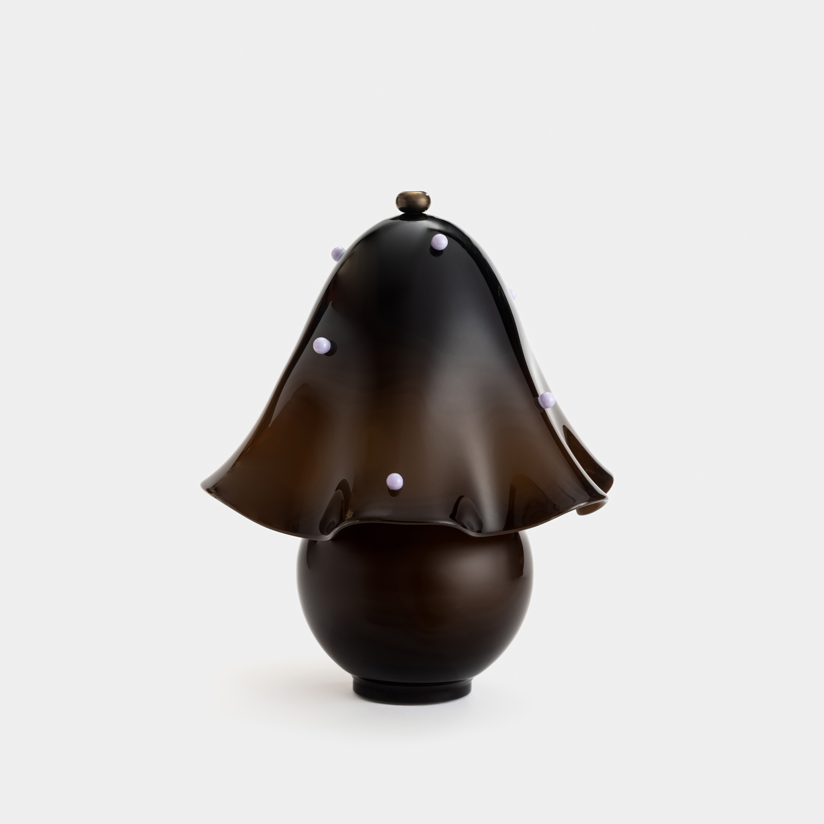 An adaptation of the larger Calla Pendant, in a size specially designed for small spaces. Calla’s shades are made using a modern variation on a centuries-old practice, which involves applying handmade glass details—in this case, rounded fins whose colors deepen when illuminated—to blown glass surfaces. Fitted with hand-finished brass details, and suspended on a brass rod with internal, self-leveling hardware.
