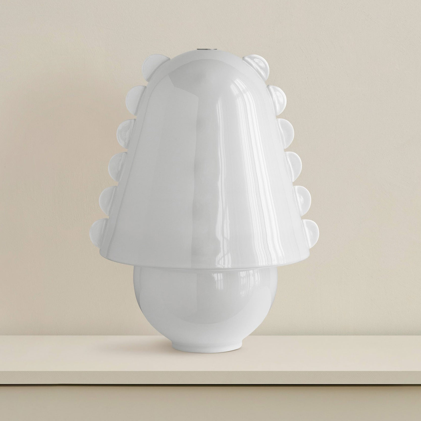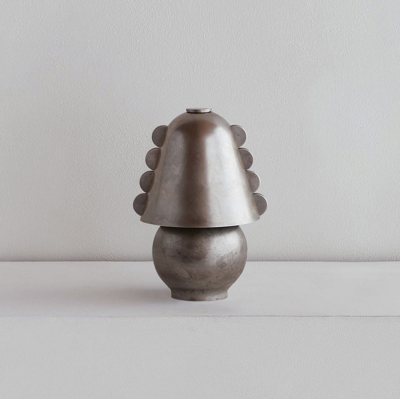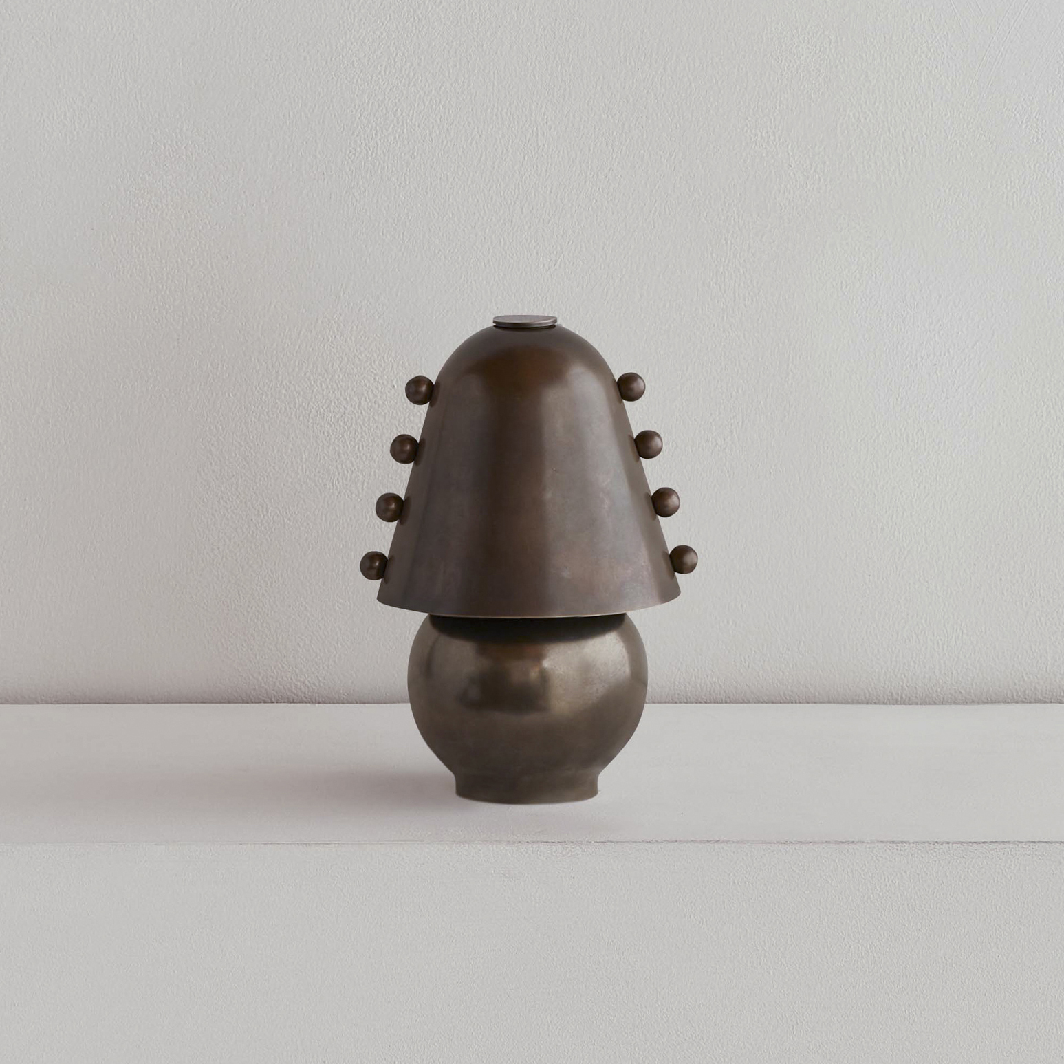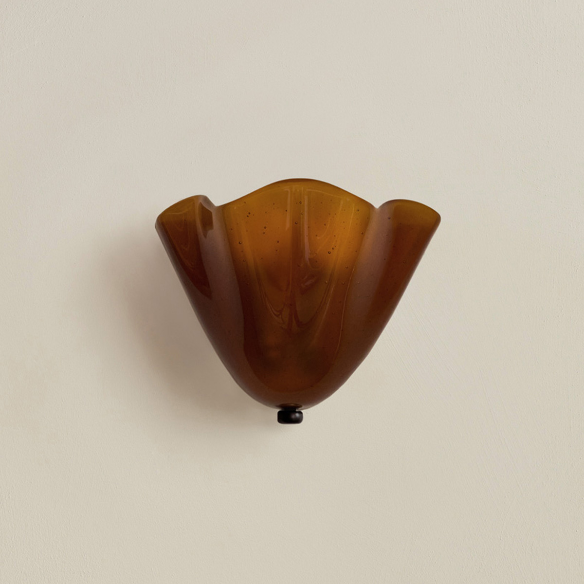 An adaptation of the larger Calla Pendant, in a size specially designed for small spaces. Calla’s shades are made using a modern variation on a centuries-old practice, which involves applying handmade glass details—in this case, rounded fins whose colors deepen when illuminated—to blown glass surfaces. Fitted with hand-finished brass details, and suspended on a brass rod with internal, self-leveling hardware.