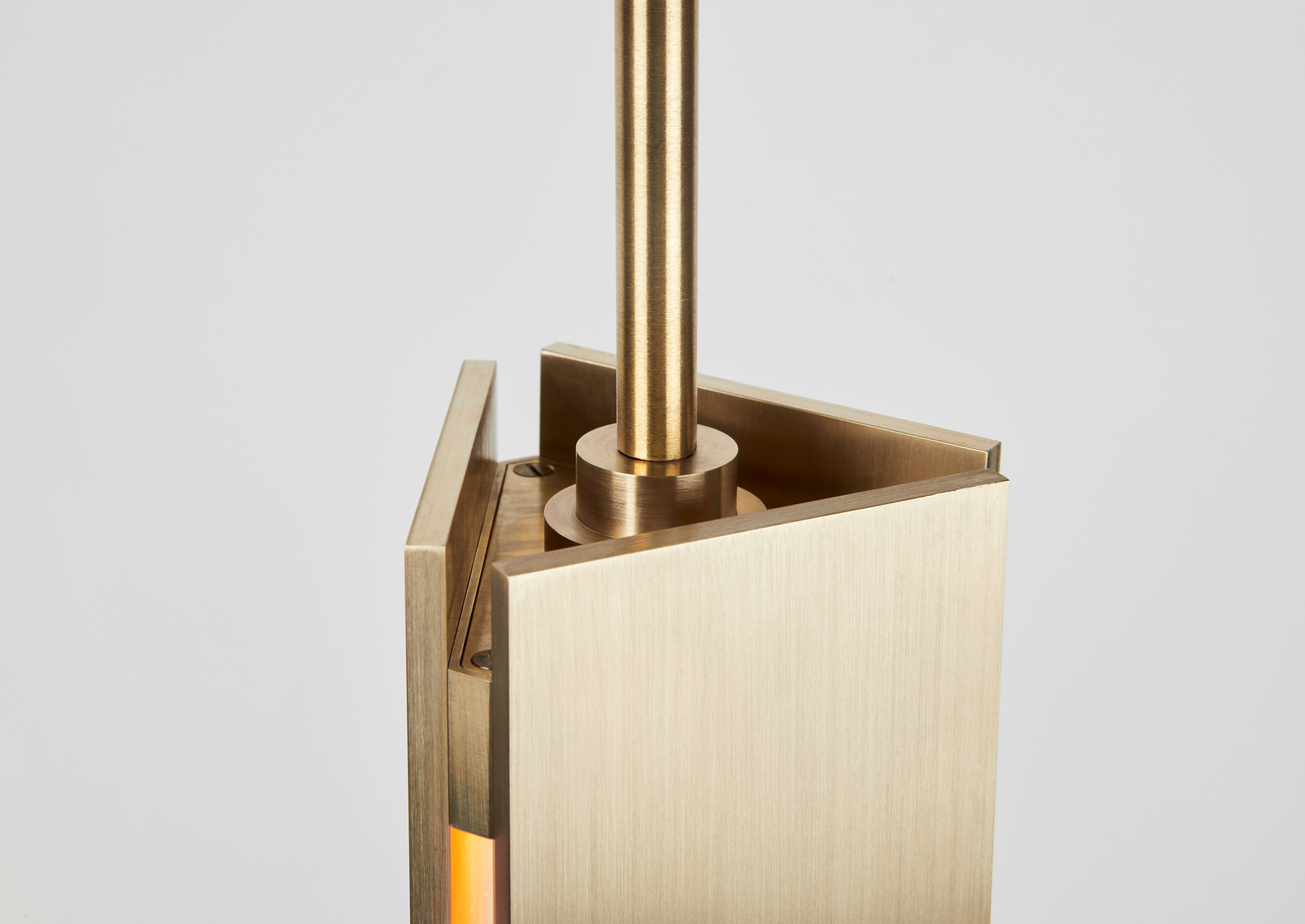 The Delta collection is part of a series of pieces originally designed by Post Company for Inness, a Hudson Valley country resort by tastemaker Taavo Somer that takes all of its cues from the surrounding landscape. Inspired by 19th-century lanterns, the collection strips down the idea to its essence, resulting in highly simplified and elegant assemblies. The attention to detail is evident. Solid metal plates soften the light like a series of louvers and create its three-sided profile.
