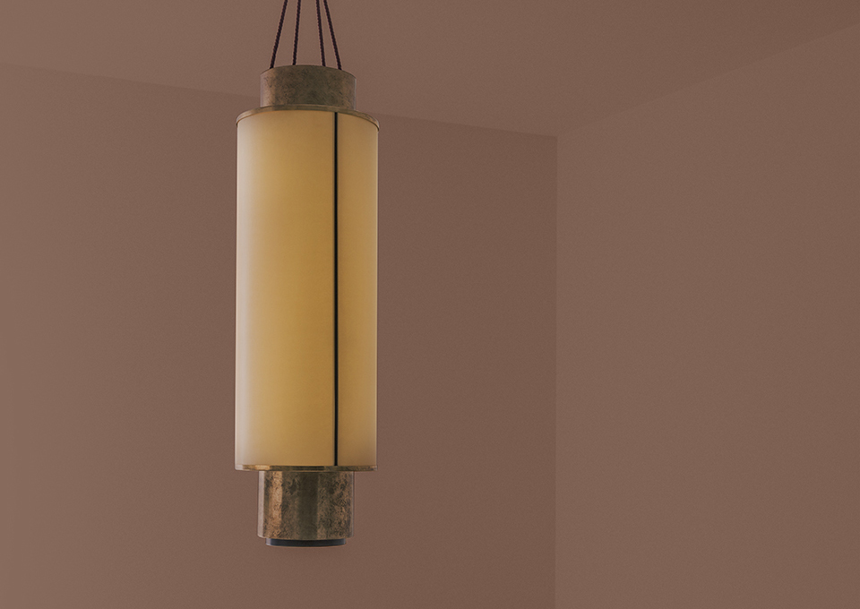 Equally delicate and industrial, this 2015 designed dimmable ceiling lamp is made in matte black painted metal and polished oxidized brass. Lampshade in parchment paper. Ruby cotton cord. Dimoremilano's Progretto Non Finito collection (unfinished in English) exemplifies the Milanese studio’s highly idiosyncratic approach to product design. The expansive collection, which continues to grow, is all about contrast and design tension: darkness and light, rough and smooth; and embellishment with restraint. With its commanding presence, each piece works individually or pairs exquisitely with other items in the collection.