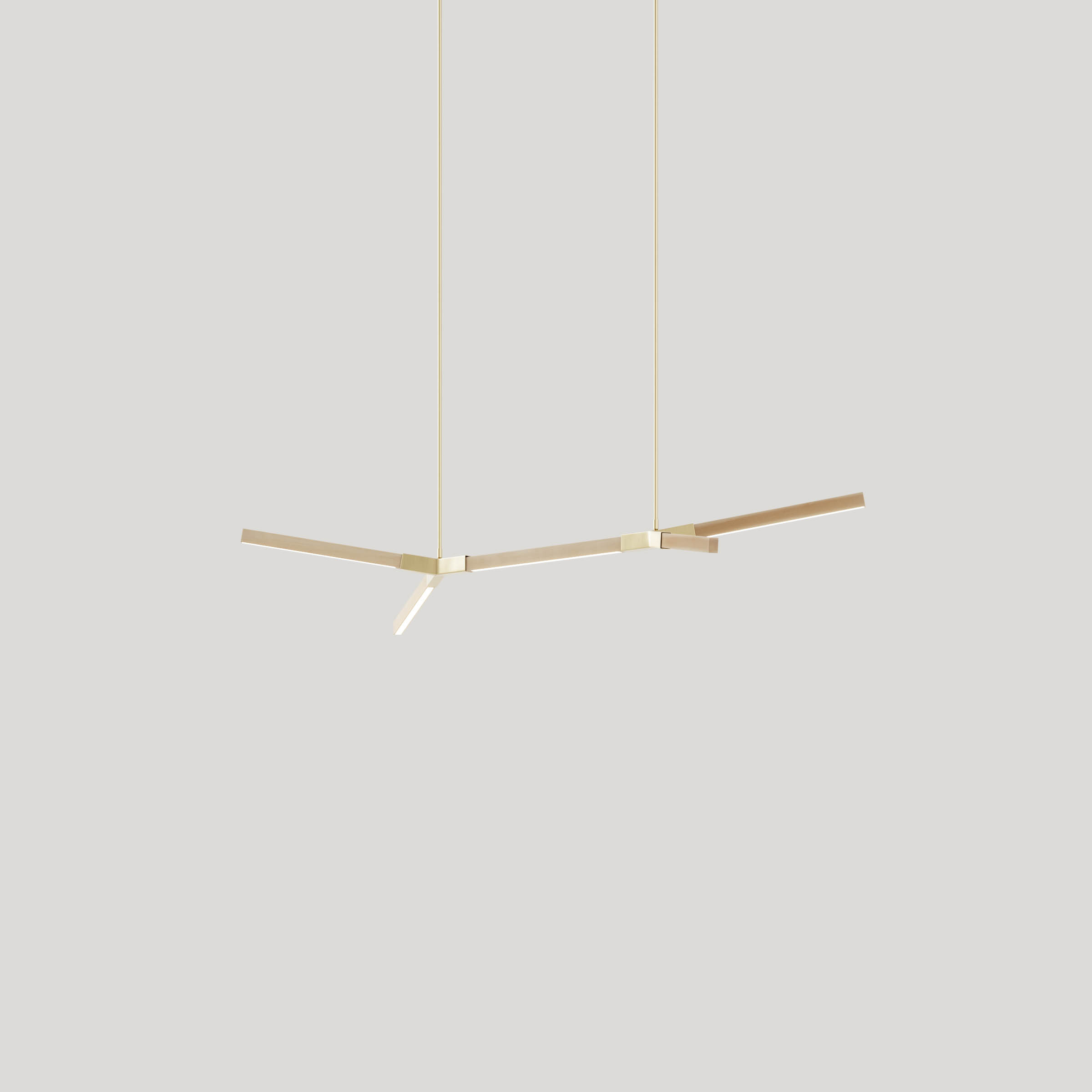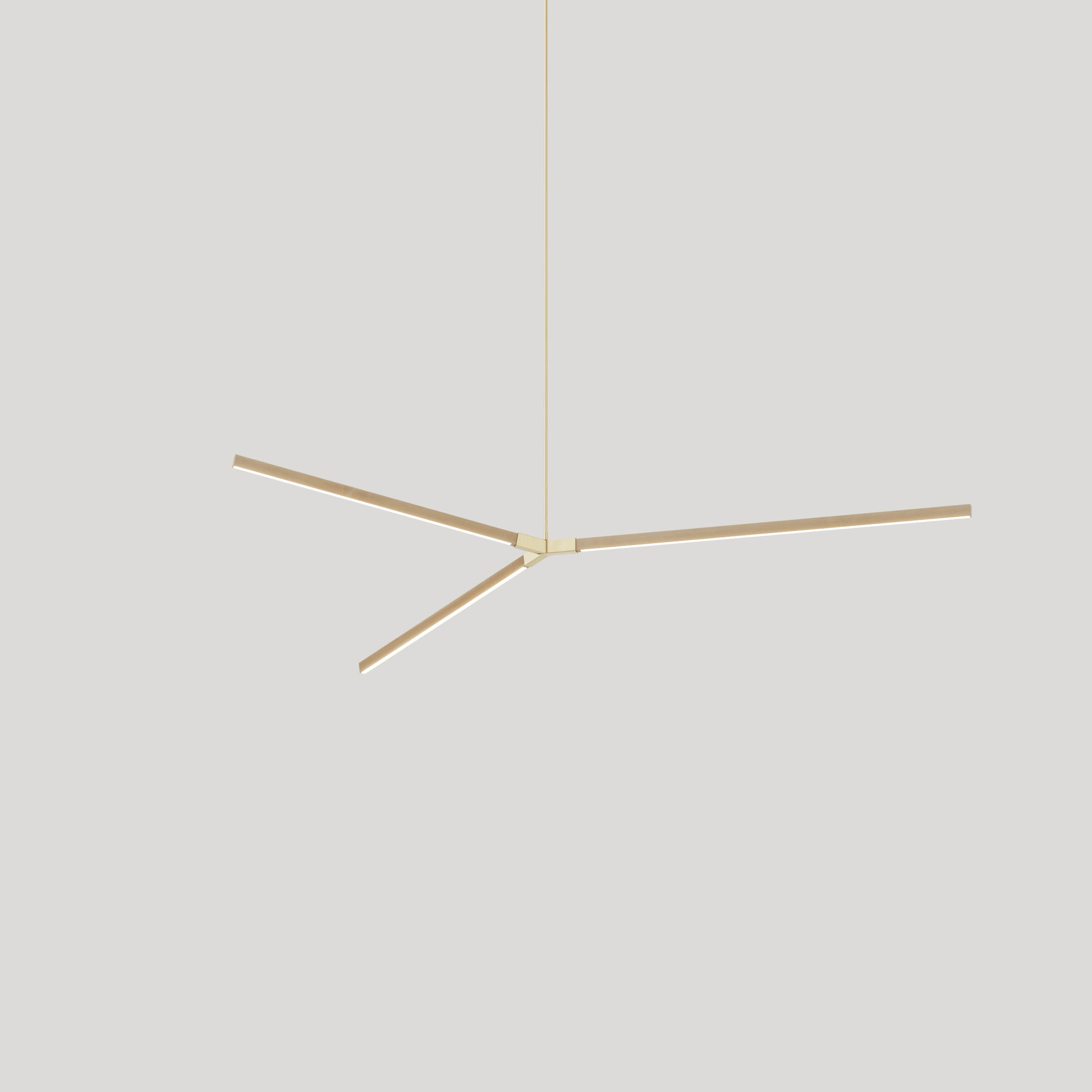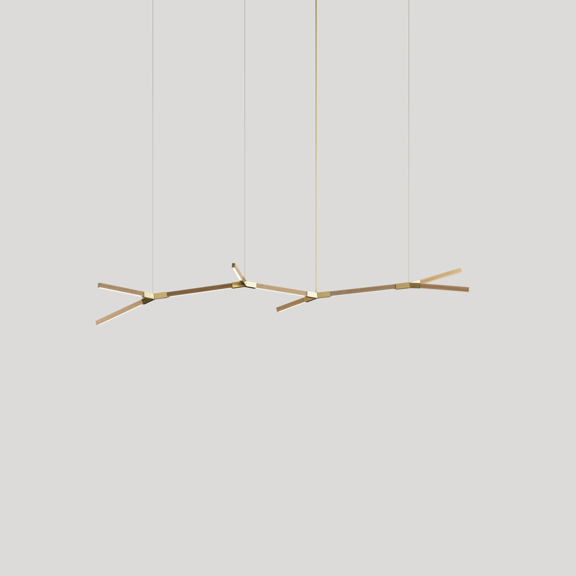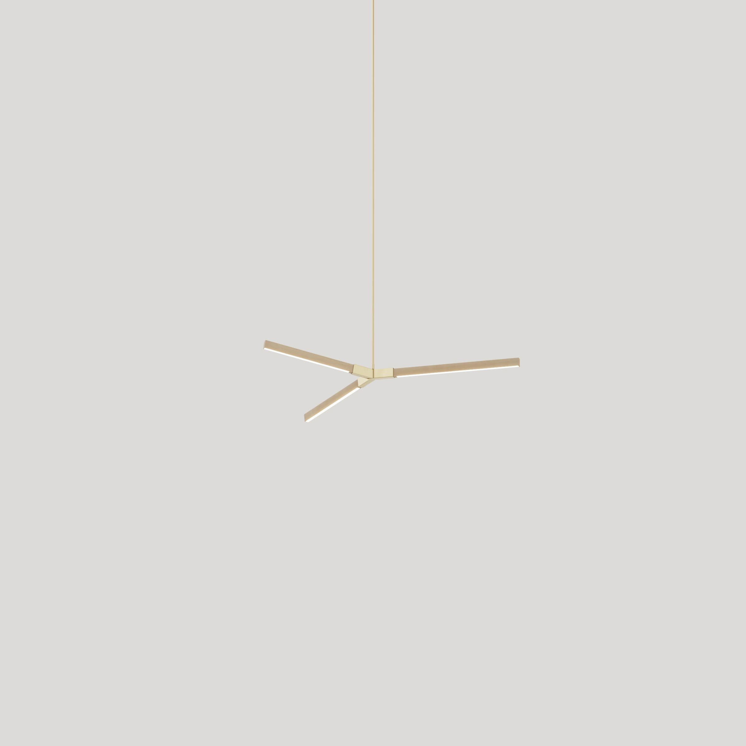 Bough is comprised of 3 solid wood sticks of varying lengths held in place by a central steel socket and stem. It casts warm light up or down, and is commonly used above a circular table in clusters for both residential and commercial spaces. BOUGH explores the space between our minimal aesthetic and expressive pieces. Span ranges from 3-5ft. Ships flat-packed.