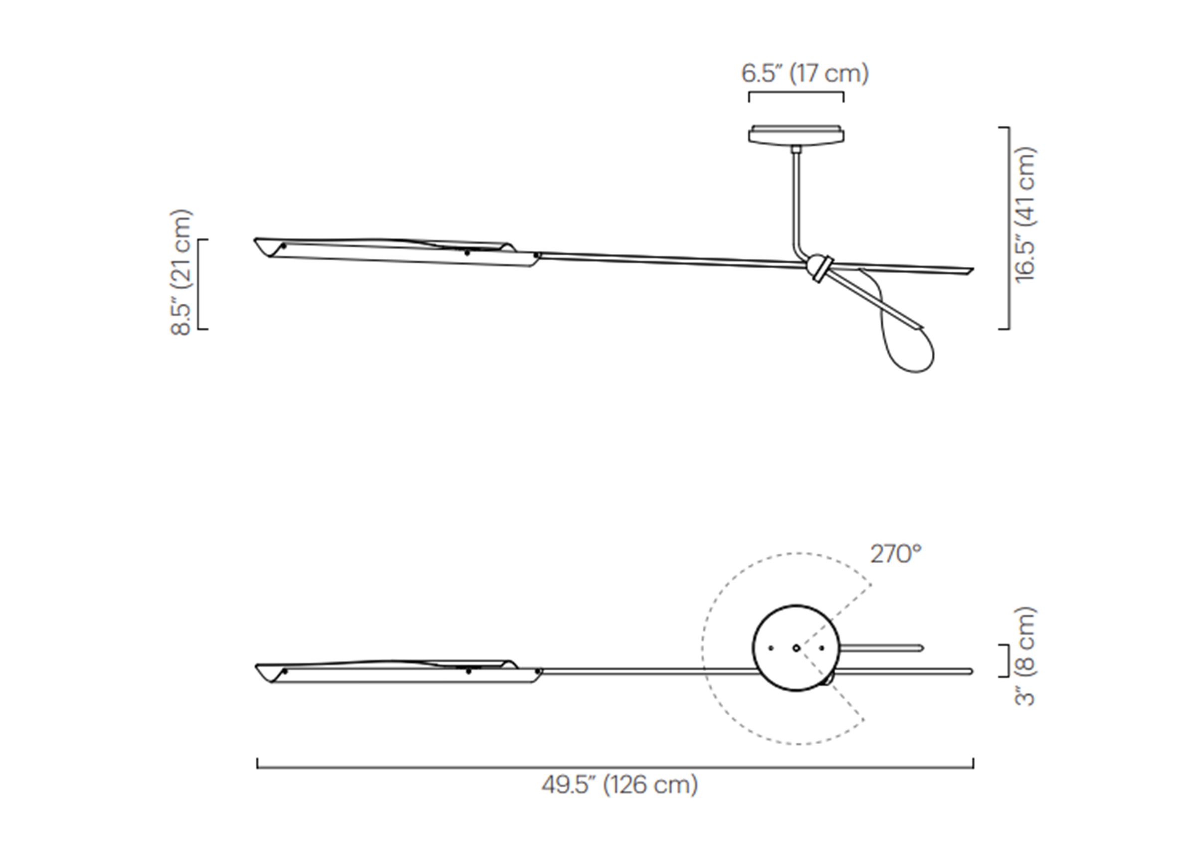 The Otto Loop Pendant is a lower profile design formed of a single cantilevered arm. The Otto shade rotates 300 degrees and contains a dimmable LED. The fixed drop has a 270° range of rotation from the canopy.