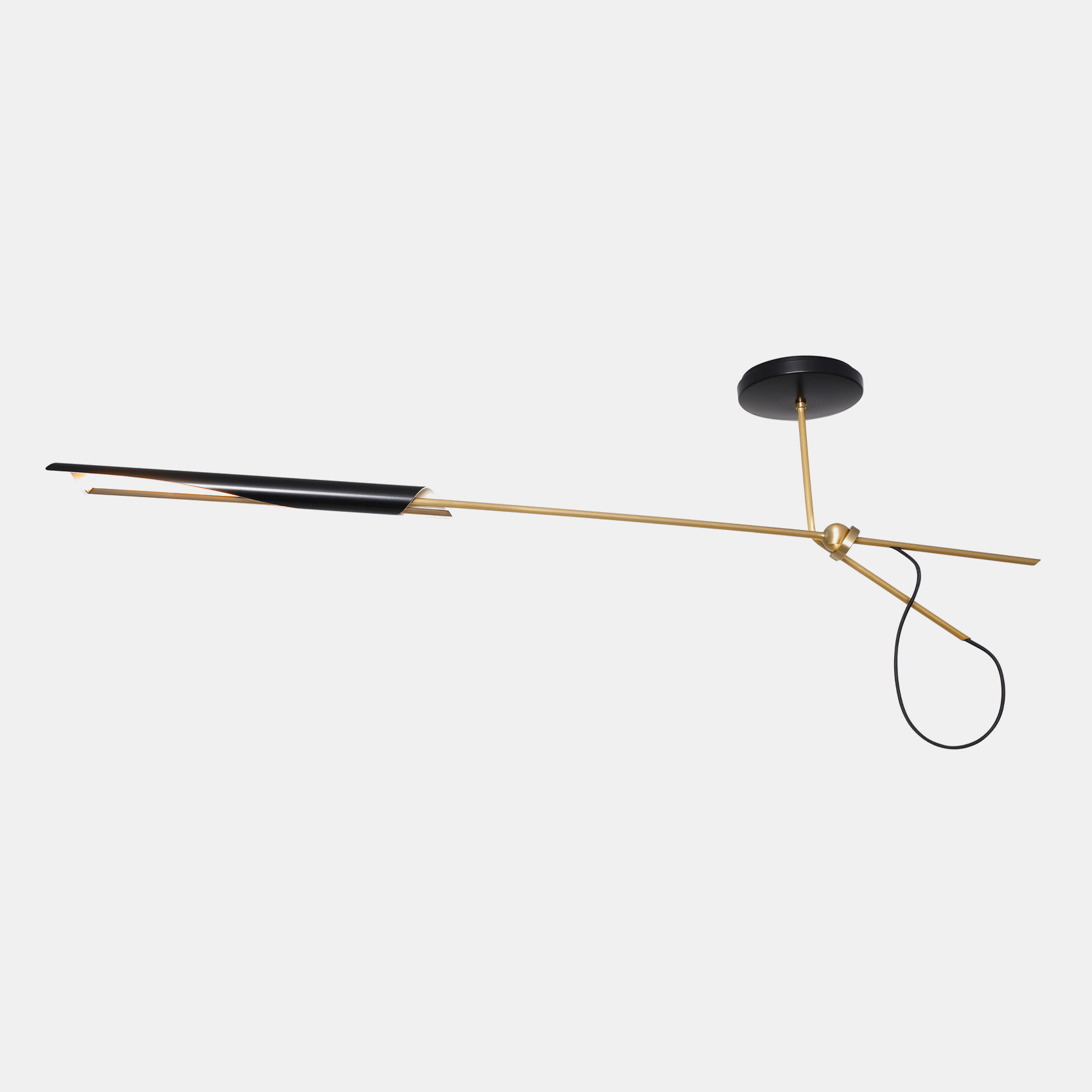 The OTTO Pendant features a single cantilevered arm extending from a drop. The naturally occurring arcs of the fixture will vary depending on the length of the drop. The OTTO shade contains a dimmable LED source and rotates 300° to cast light directionally. The fixture can rotate 245° from the canopy.