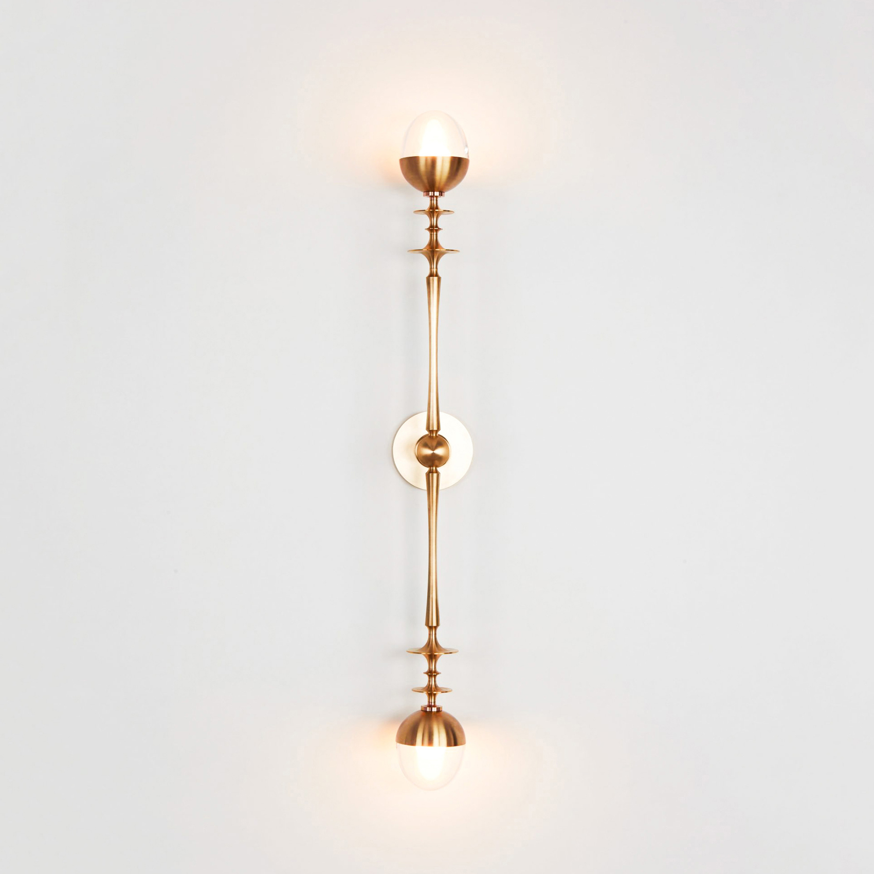 Inspired by summers spent at Helgerson’s ancestral home in Lyon, France, Rue Sala takes its form from the elegant interiors filled with thin Louis XVI furniture, bronze statuettes, and silky fabrics. Translated into turned metal and hand-blown glass fixtures, Rue Sala is a delicate and refined collection with timeless appeal.