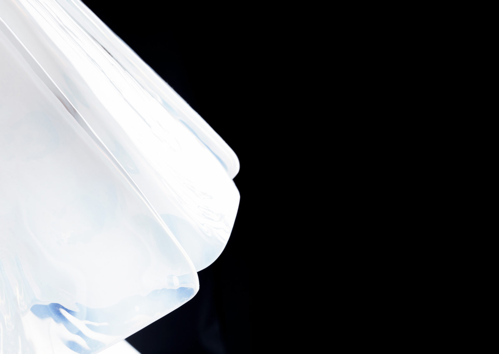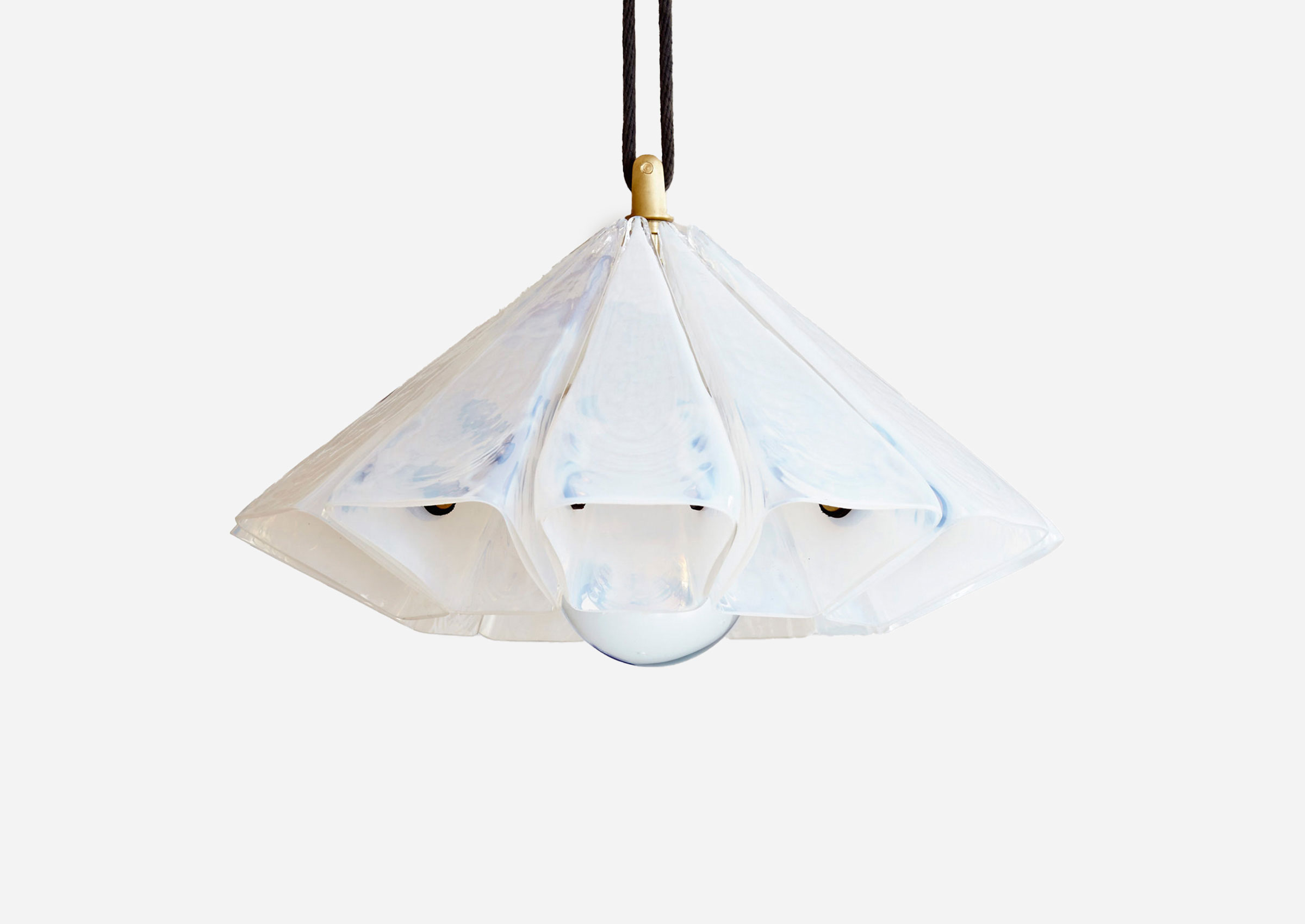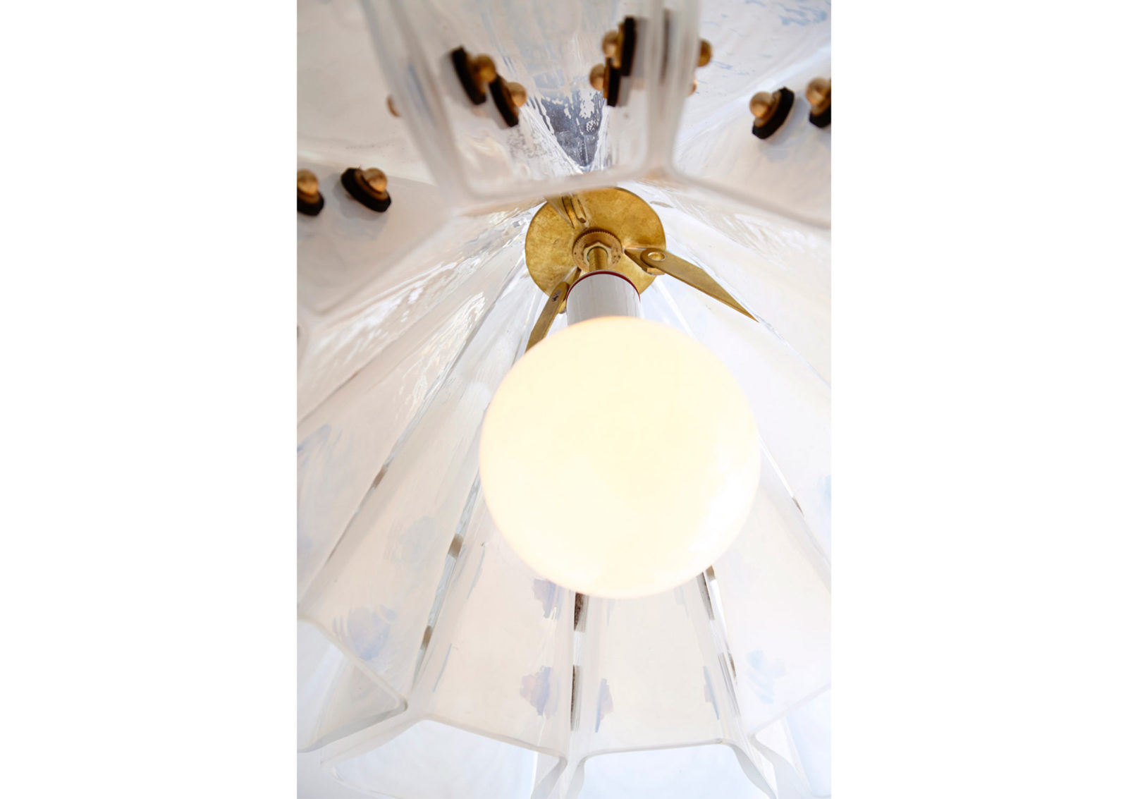 Architectural and otherworldly, the Sirius chandelier continues Anthony Bianco’s themes of infinite design and aesthetic rigor. The diamond- shaped chandelier is composed of twelve blown opaline glass modules joined together with bespoke brass, felt, and leather hardware. Anthony Bianco’s sculpture and design studio is based in Brooklyn, New York. Blending sculpture and functionality, his quixotic lighting designs have earned him a wide following in the design and architecture world.