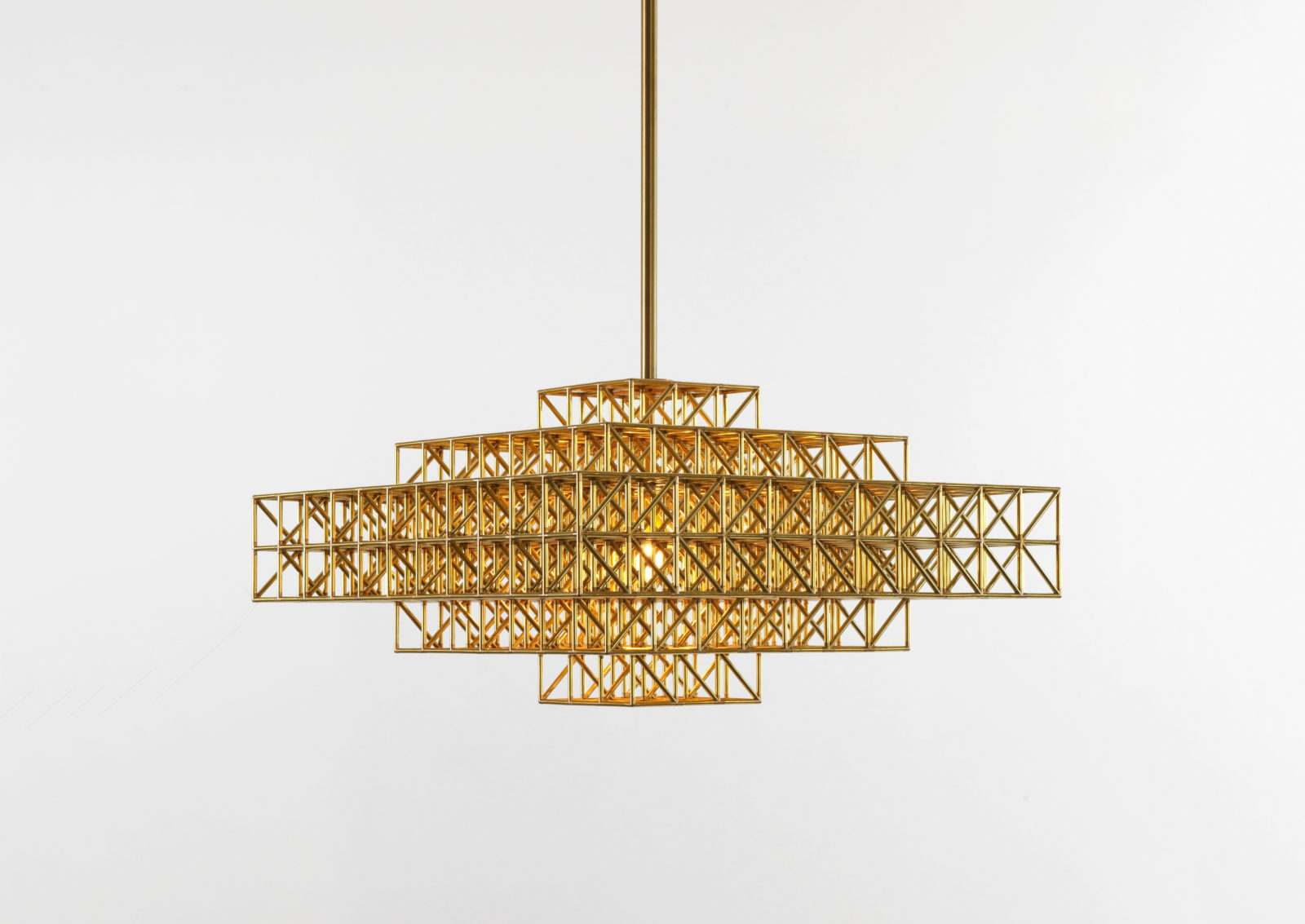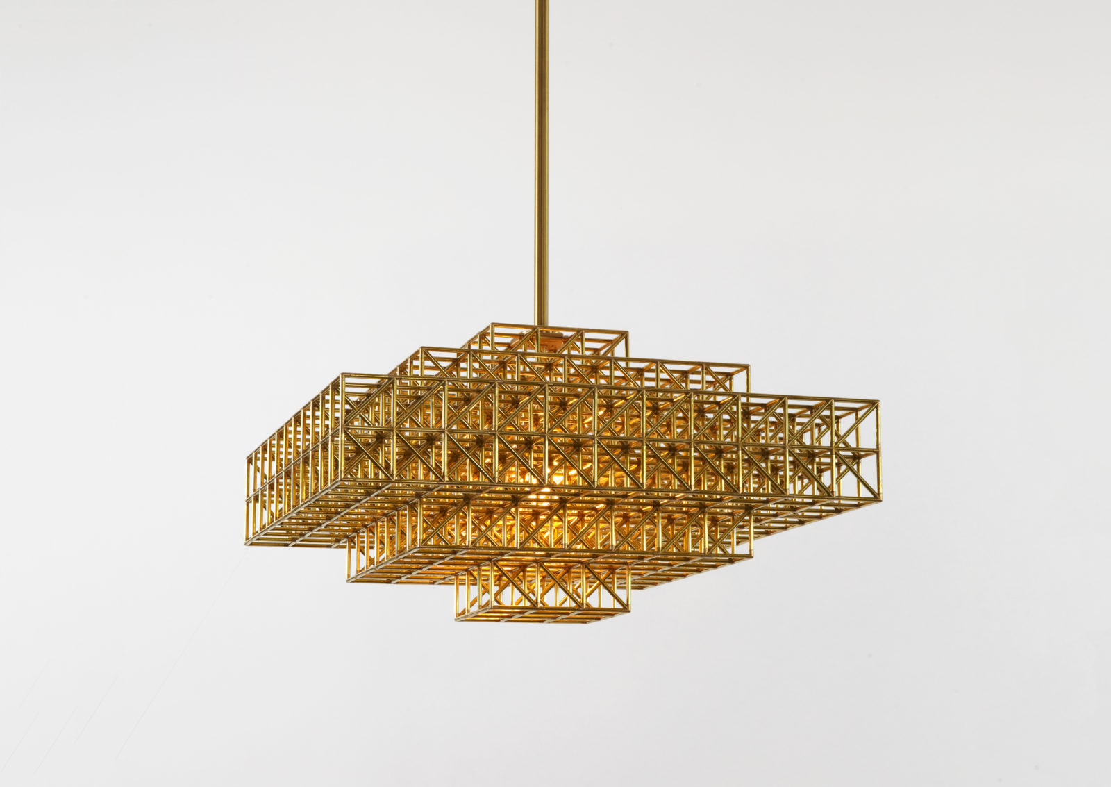 Raw and unpretentious, Gridlock is a series of lamps in the style of the Brutalist movement. Gridlock feels industrial in its straightforward, platonic forms and the repetitive efficiency of the grid; however, it is assembled entirely by hand from thousands of tiny brass parts. Philippe Malouin's tribute to the industry-inspired, labor-saving dreams of modernism is paid for in toil.