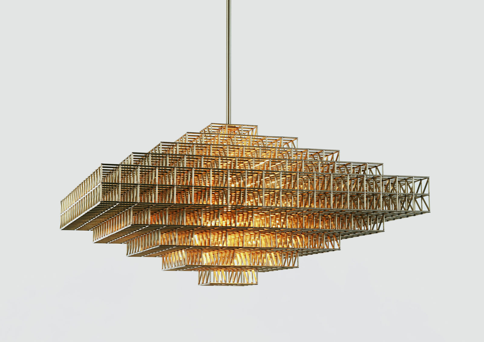 Raw and unpretentious, Gridlock is a series of lamps in the style of the Brutalist movement. Gridlock feels industrial in its straightforward, platonic forms and the repetitive efficiency of the grid; however, it is assembled entirely by hand from thousands of tiny brass parts. Philippe Malouin's tribute to the industry-inspired, labor-saving dreams of modernism is paid for in toil.