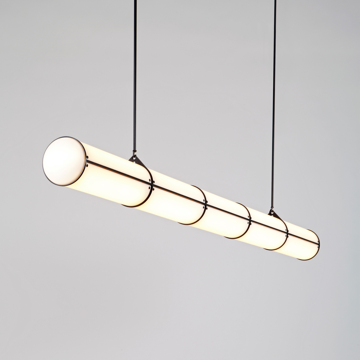 Like Endless, Jason Miller's Mini collection was originally conceived to be a light fixture as architectural element. However, the scale and construction of Mini is inspired by wooden ship's masts. Before advanced materials and industrial production, wooden sailing ships were the engineering marvels of their time. By necessity, the construction was as inventive as it was beautiful.