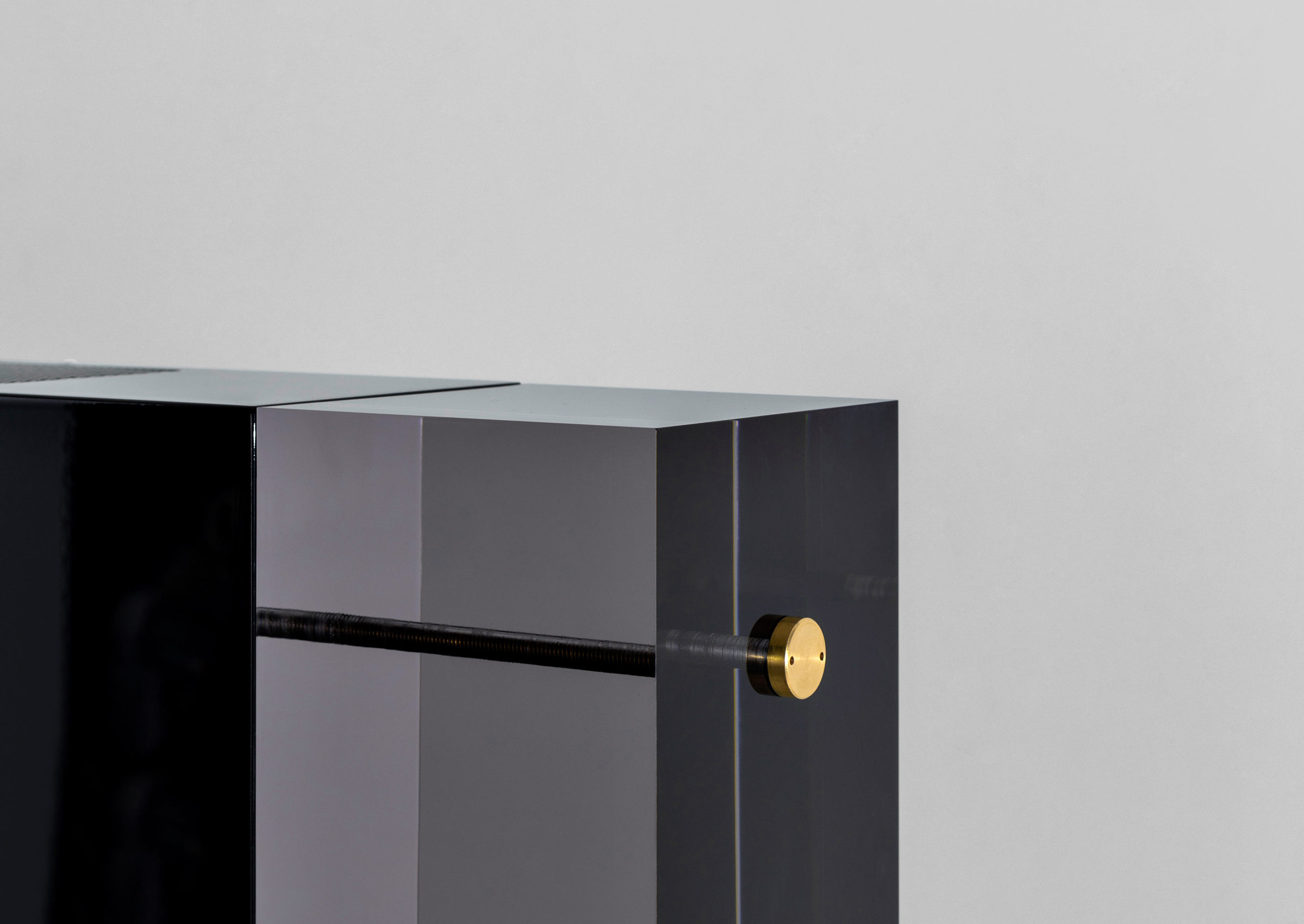 Plexiglass Fumè, Glossy Lacquered Wood, Polished Brass