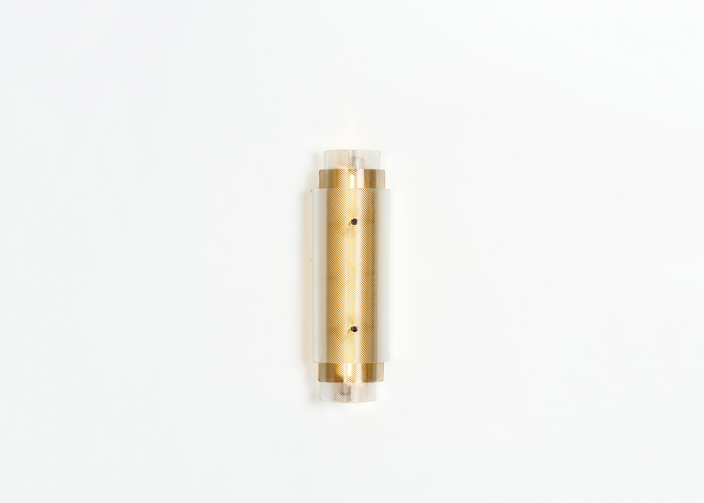 Industrial glass is transformed into a stunning decorative element in the Spindle lamp series as cylindrical shapes of fluted glass are superimposed in opposite directions to create a hypnotic optical illusion emphasized by the inclusion of colored glass. The curved glass is realized by an expert artisan and sits inside a stainless steel structure.