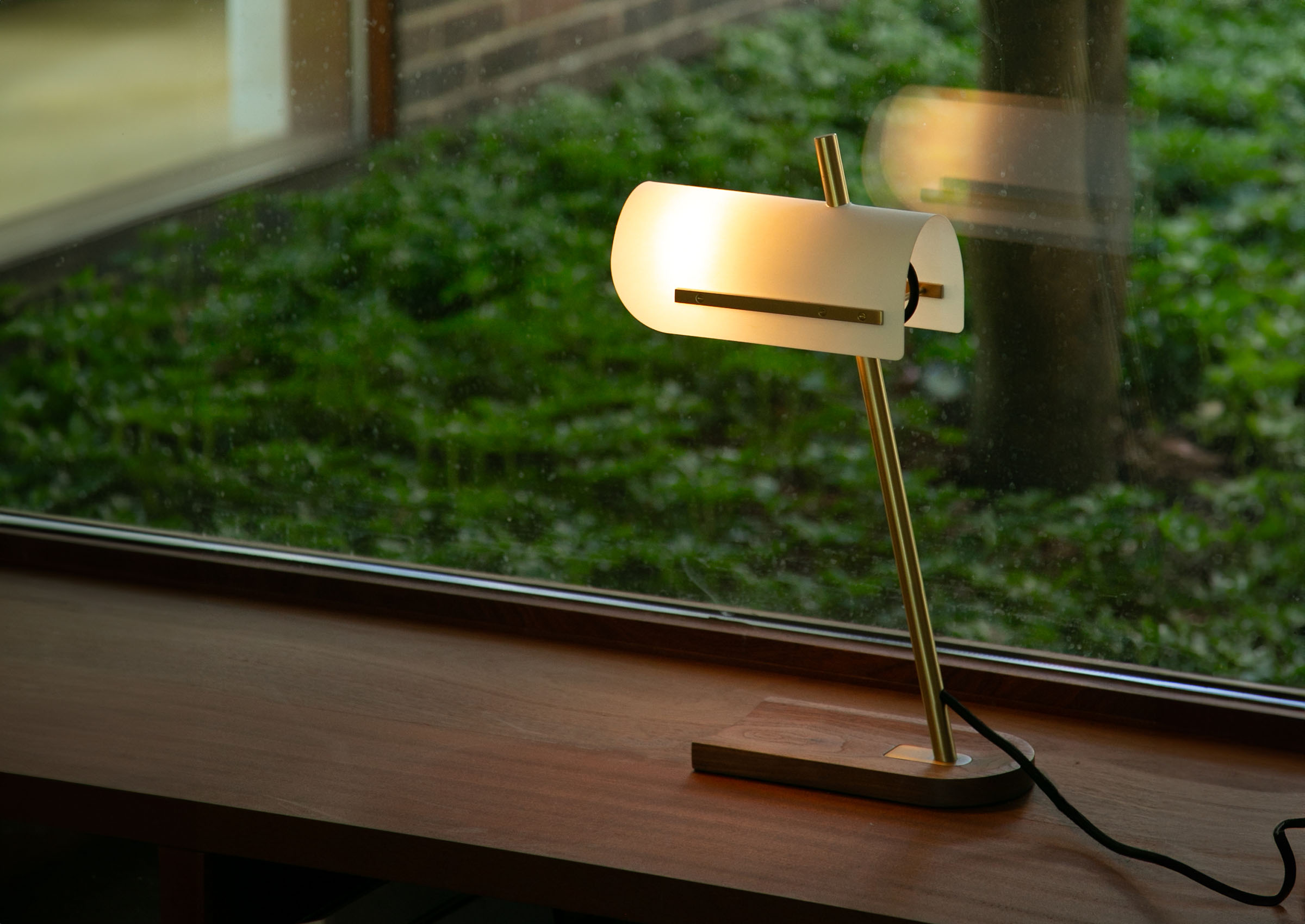 The Modernist Desk Lamp brings refined geometry and material warmth to the desktop. With its solid walnut base, brass stem, and thoughtfully balanced proportions, it offers both sculptural presence and practical illumination. Ideal for workspaces, reading nooks, or bedside tables, the lamp reflects the clean lines and material integrity that define the Modernist collection—merging timeless design with everyday function.