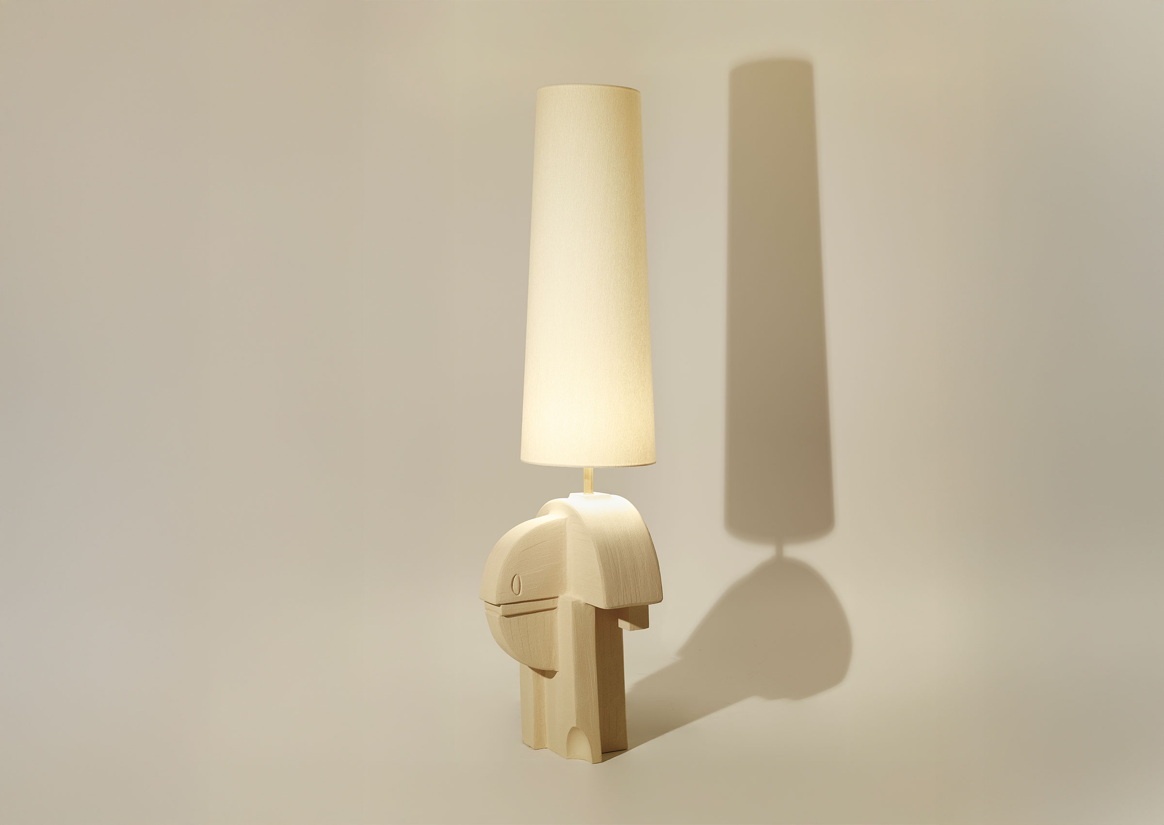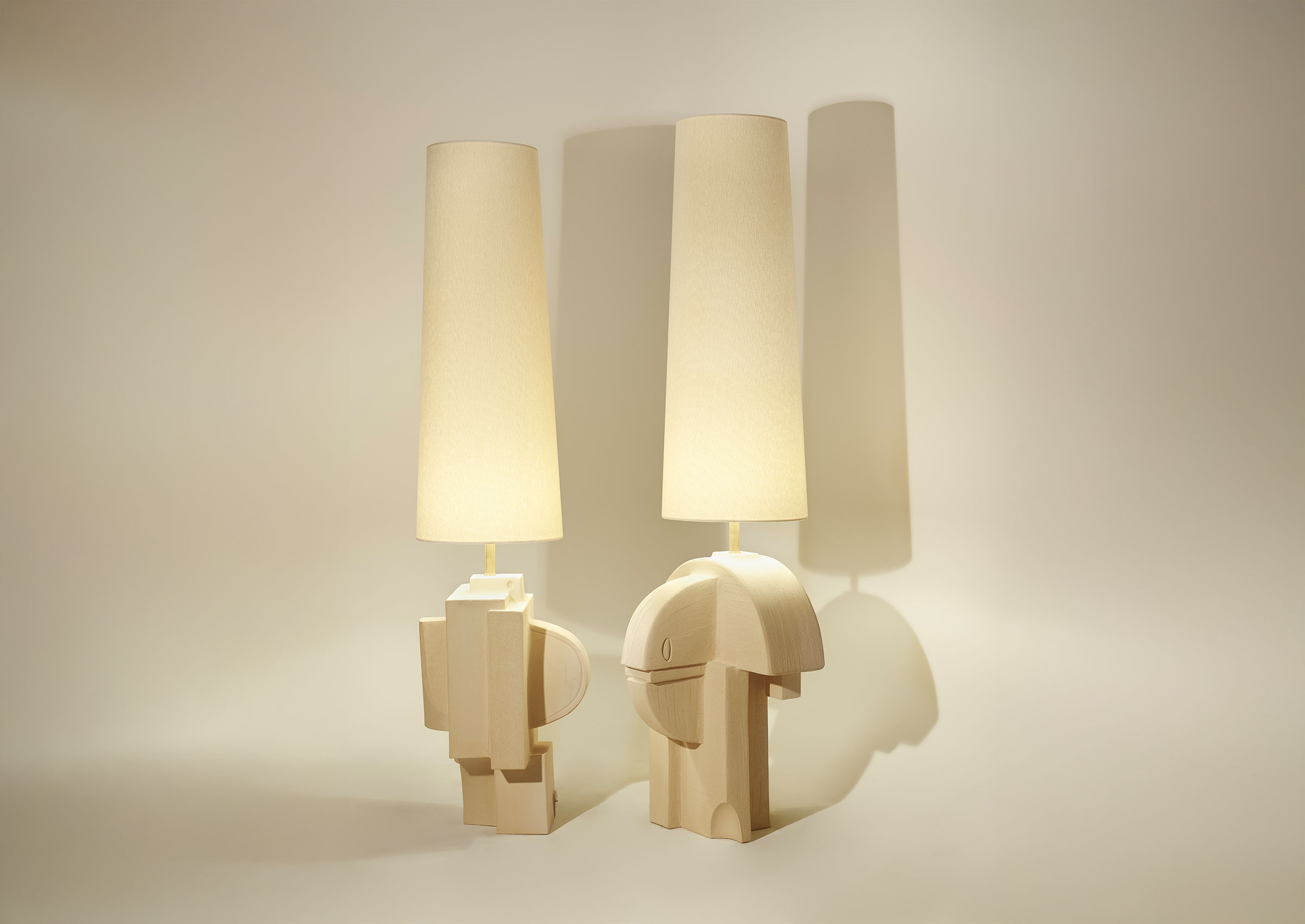 Olivia Cognet’s Vallauris Floor Lamps are indicative of the artist’s larger project, which understands the physicality of images as something granted, and thus easily finds the visual architecture within sculptural objects. Presented as an almost Platonic lightsource, these lamps use the timelessness of their functionality as a medium.