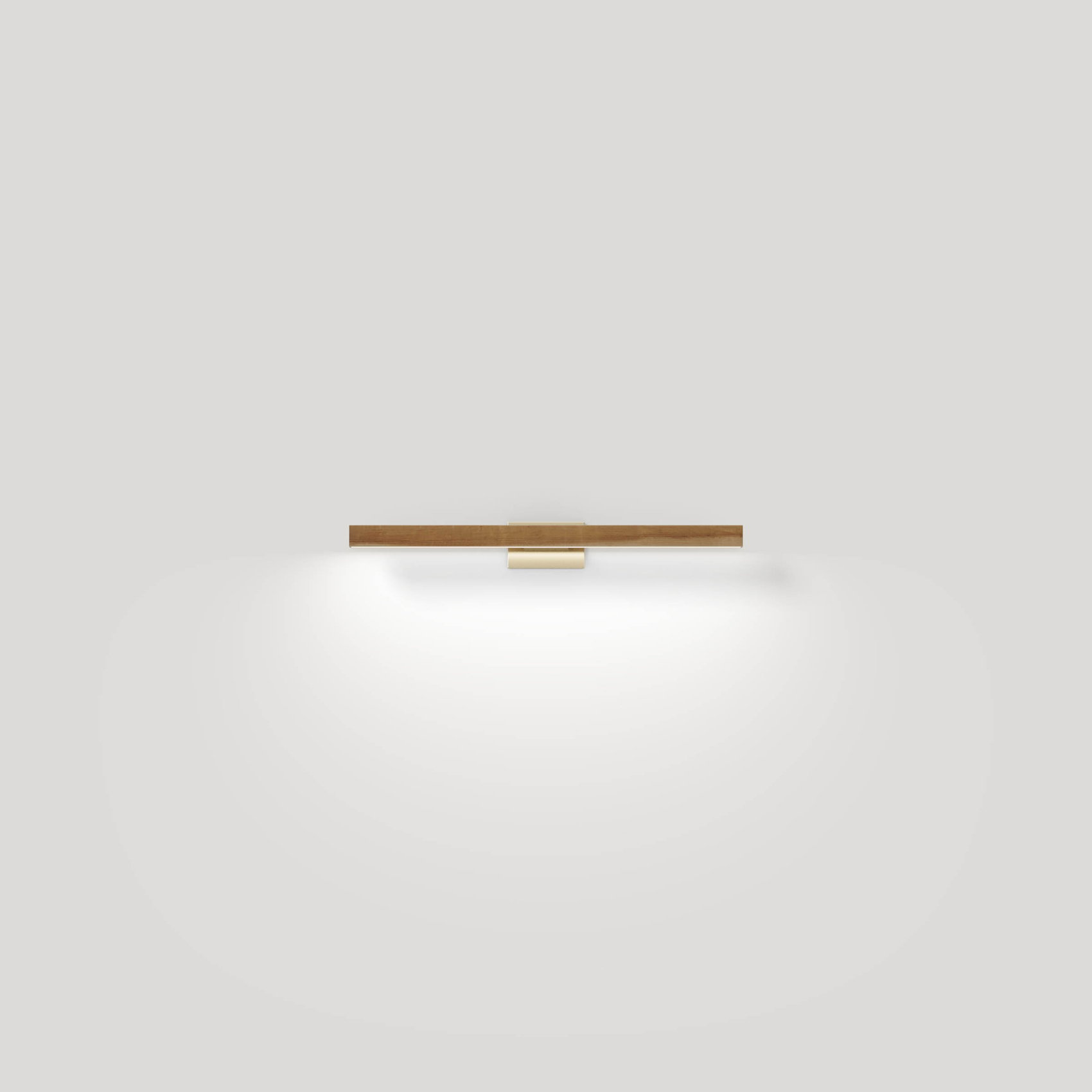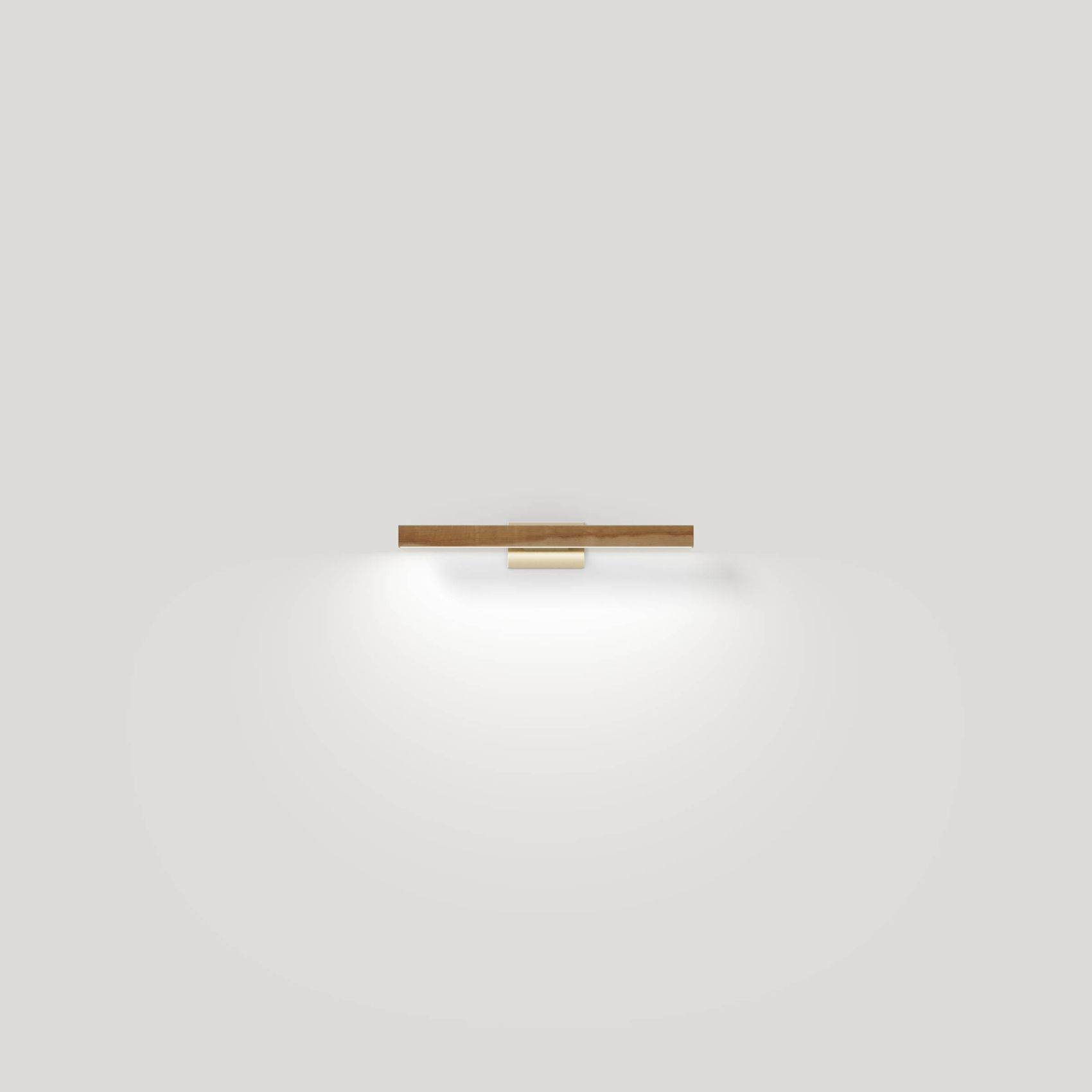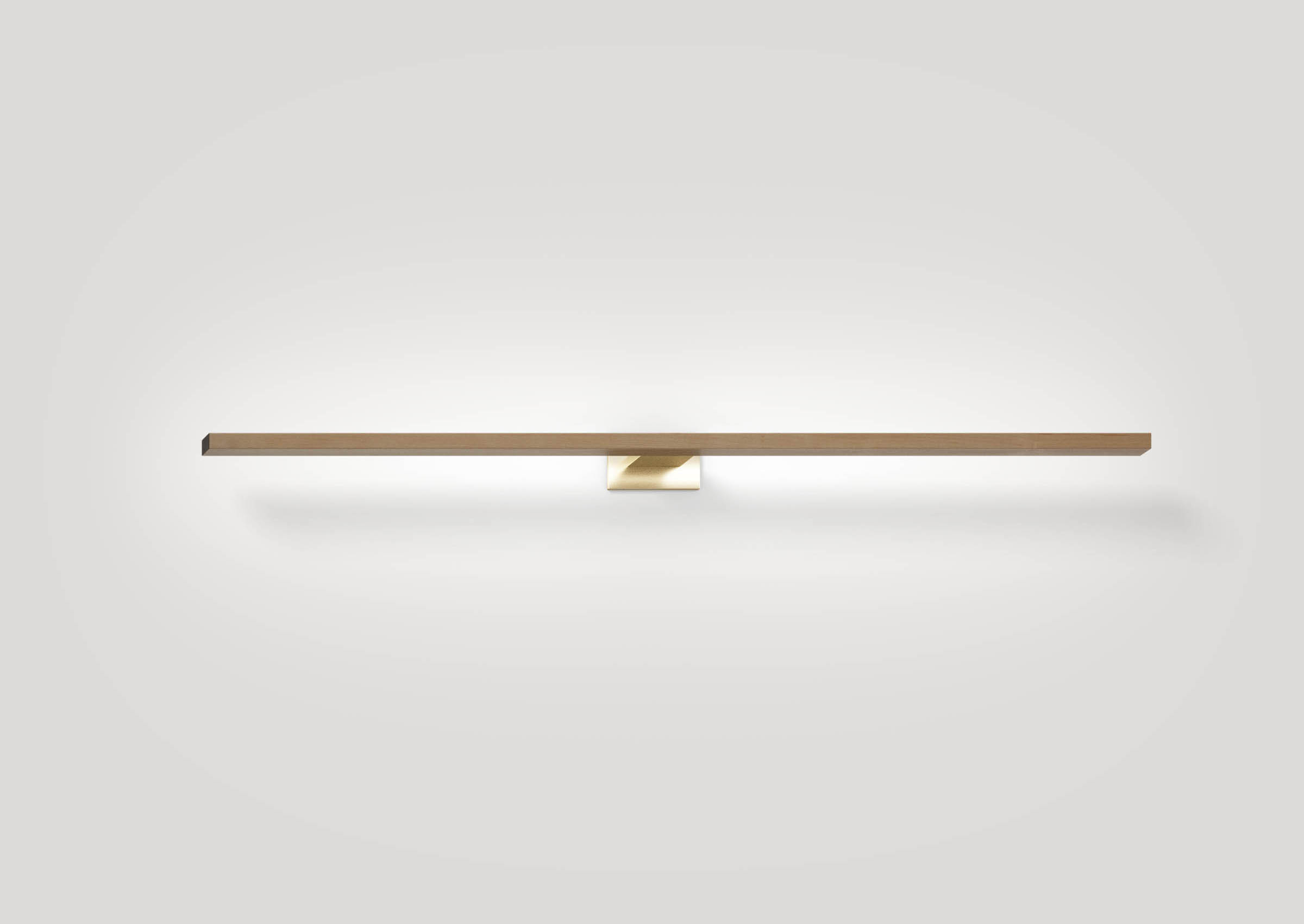 The Ray Sconce is comprised of 1 solid wood stick held in place by a metal hardware component that mounts to the wall. It can be installed vertically or horizontally. The light can wash up, down, left, or right, on the wall. The design is so minimal that it draws your attention closer to the subtle details of the wood grain and the machined precision of the sconce construction. Ray sconce is ADA compliant.