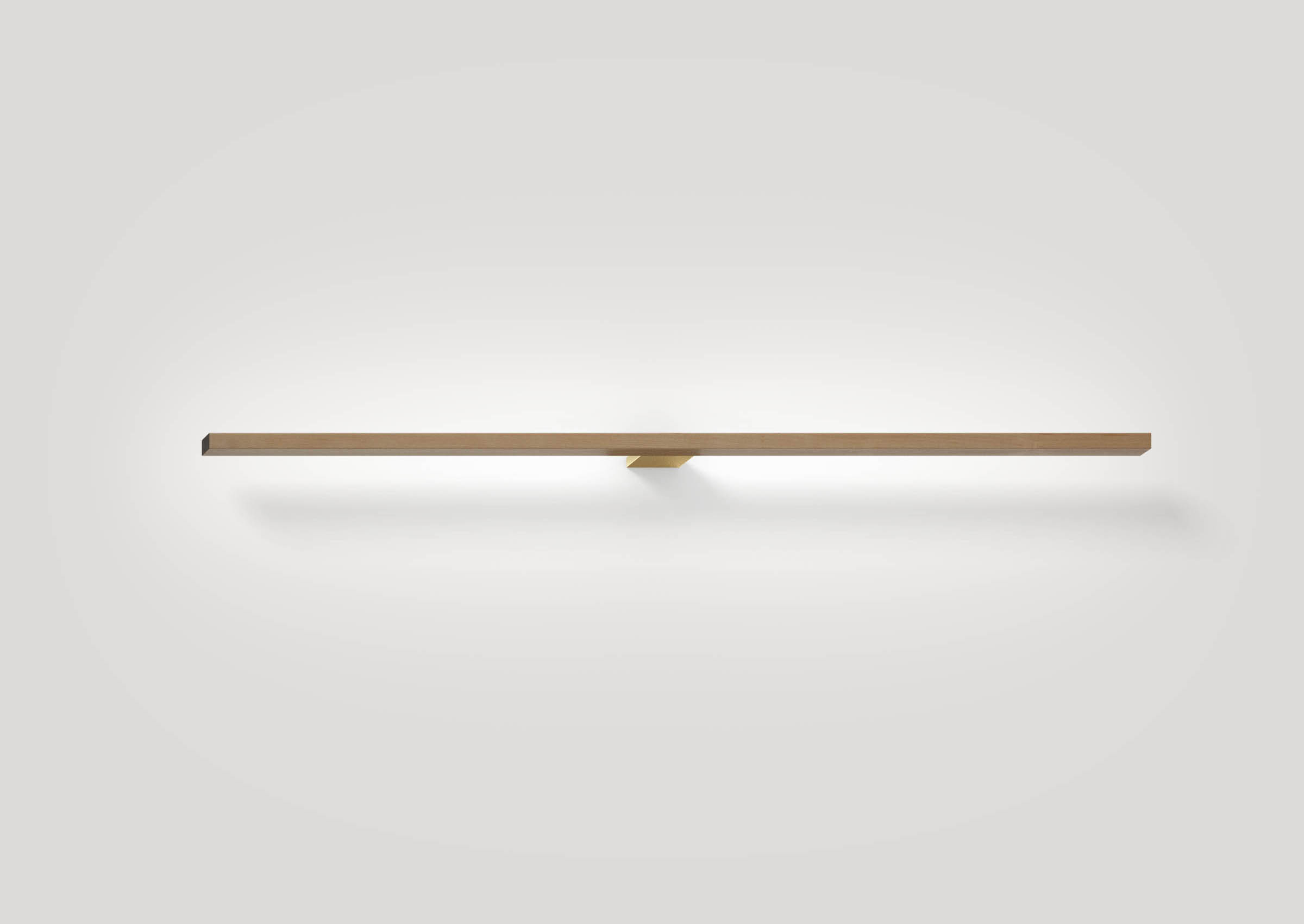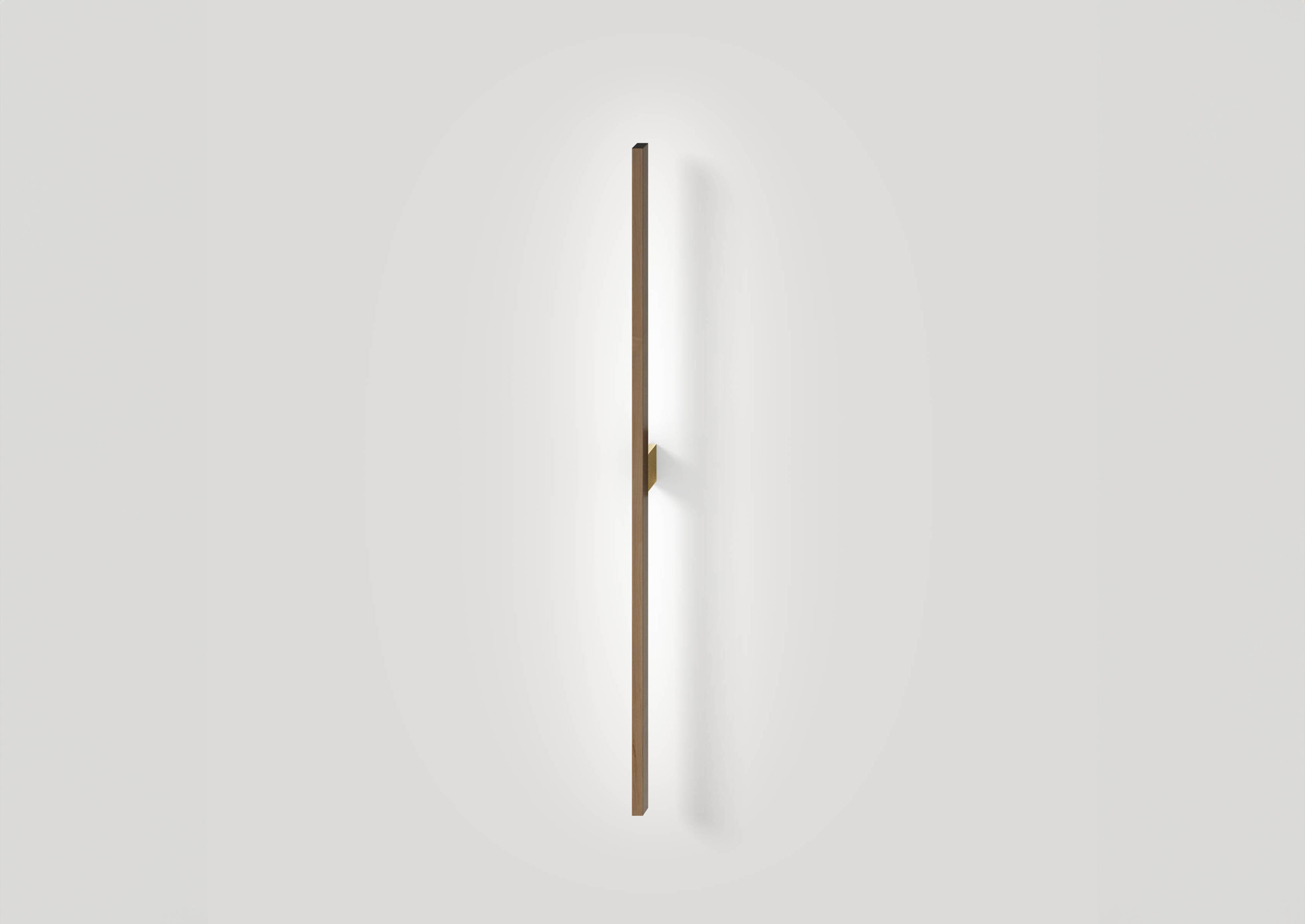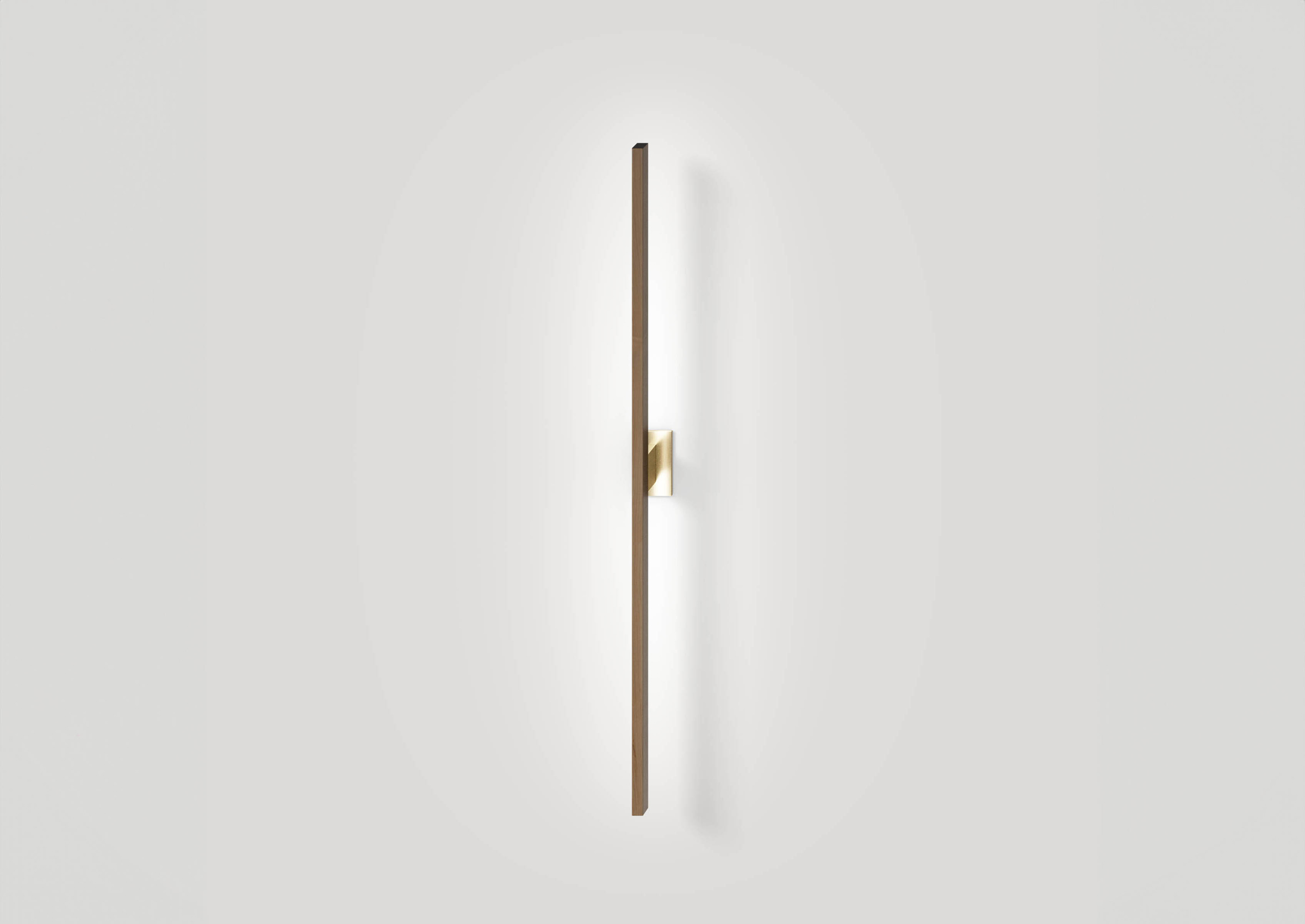The Ray Sconce is comprised of 1 solid wood stick held in place by a metal hardware component that mounts to the wall. It can be installed vertically or horizontally. The light can wash up, down, left, or right, on the wall. The design is so minimal that it draws your attention closer to the subtle details of the wood grain and the machined precision of the sconce construction. Ray sconce is ADA compliant.