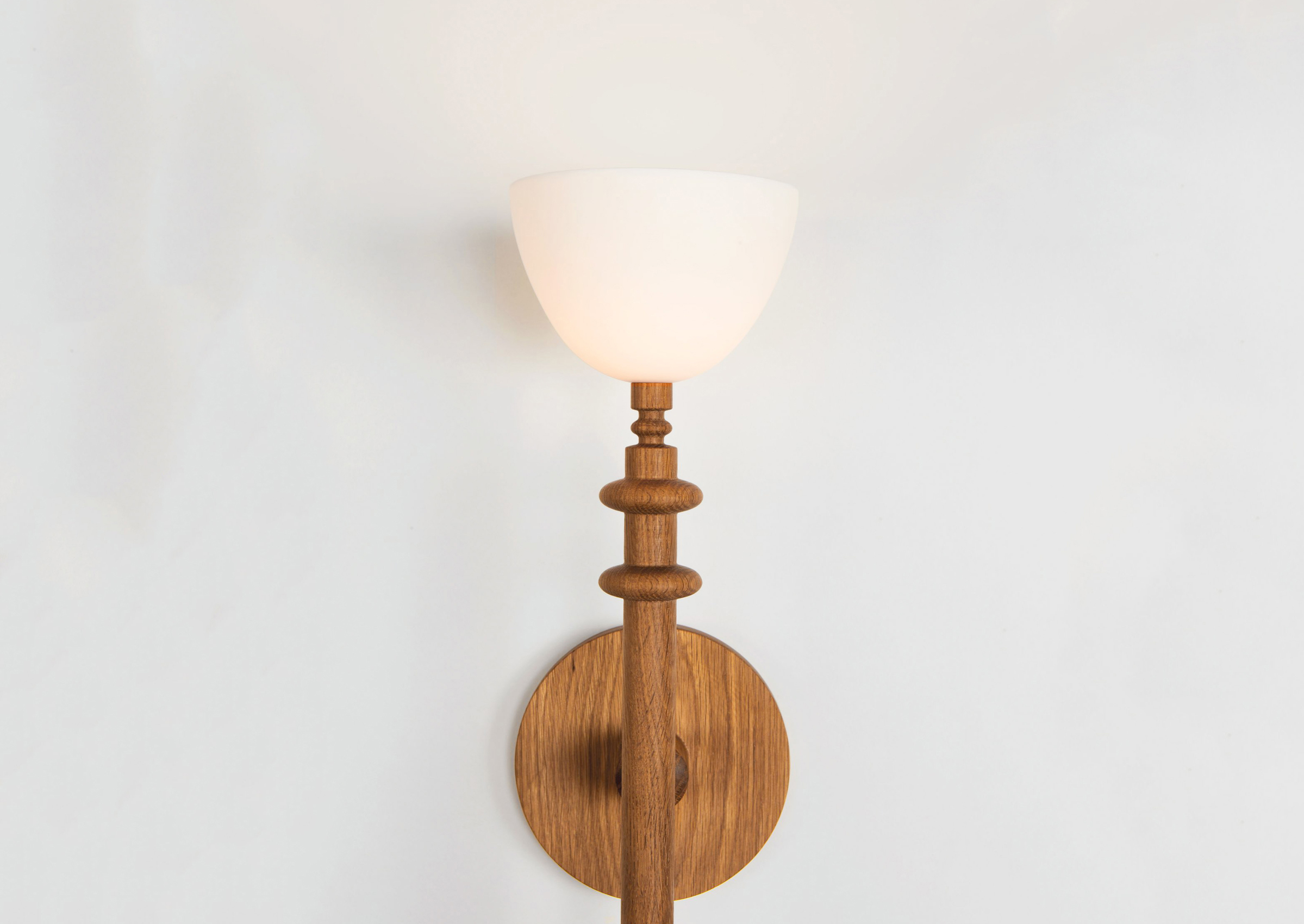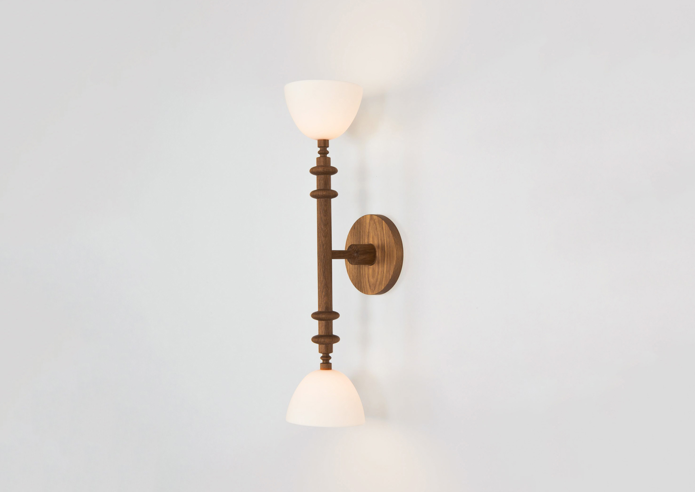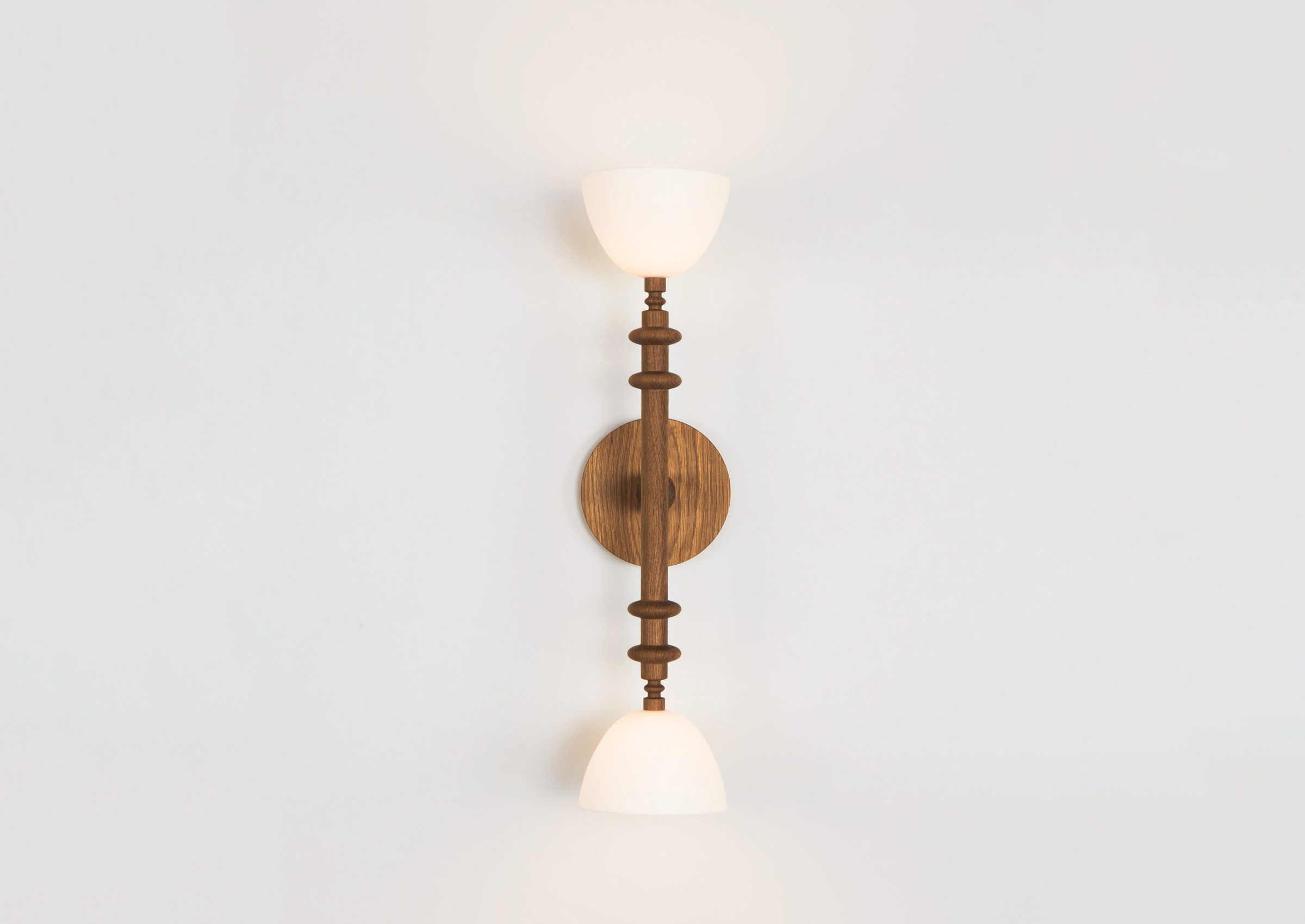 Helgerson's Del Playa is composed of turned wood stems and ceramic shades that recall her childhood on the beaches of Santa Barbara. The materials in this line feel very much of that time and place – the handcrafted aesthetic of California in the 70s.