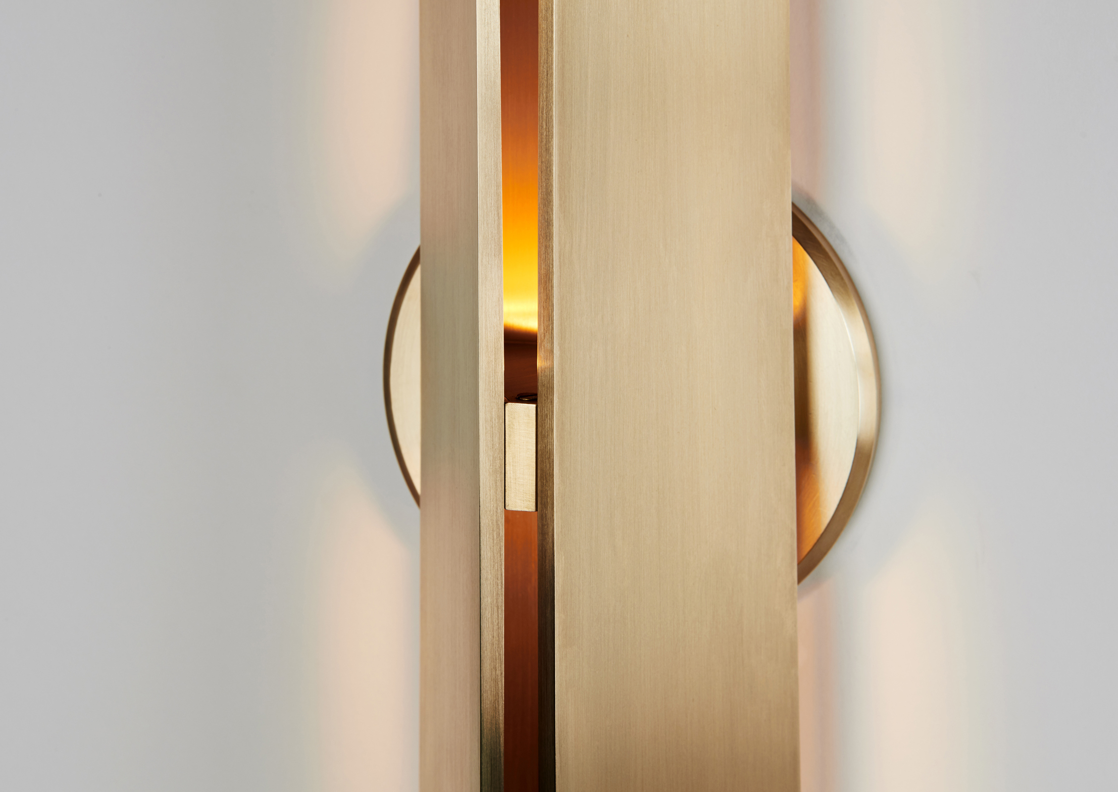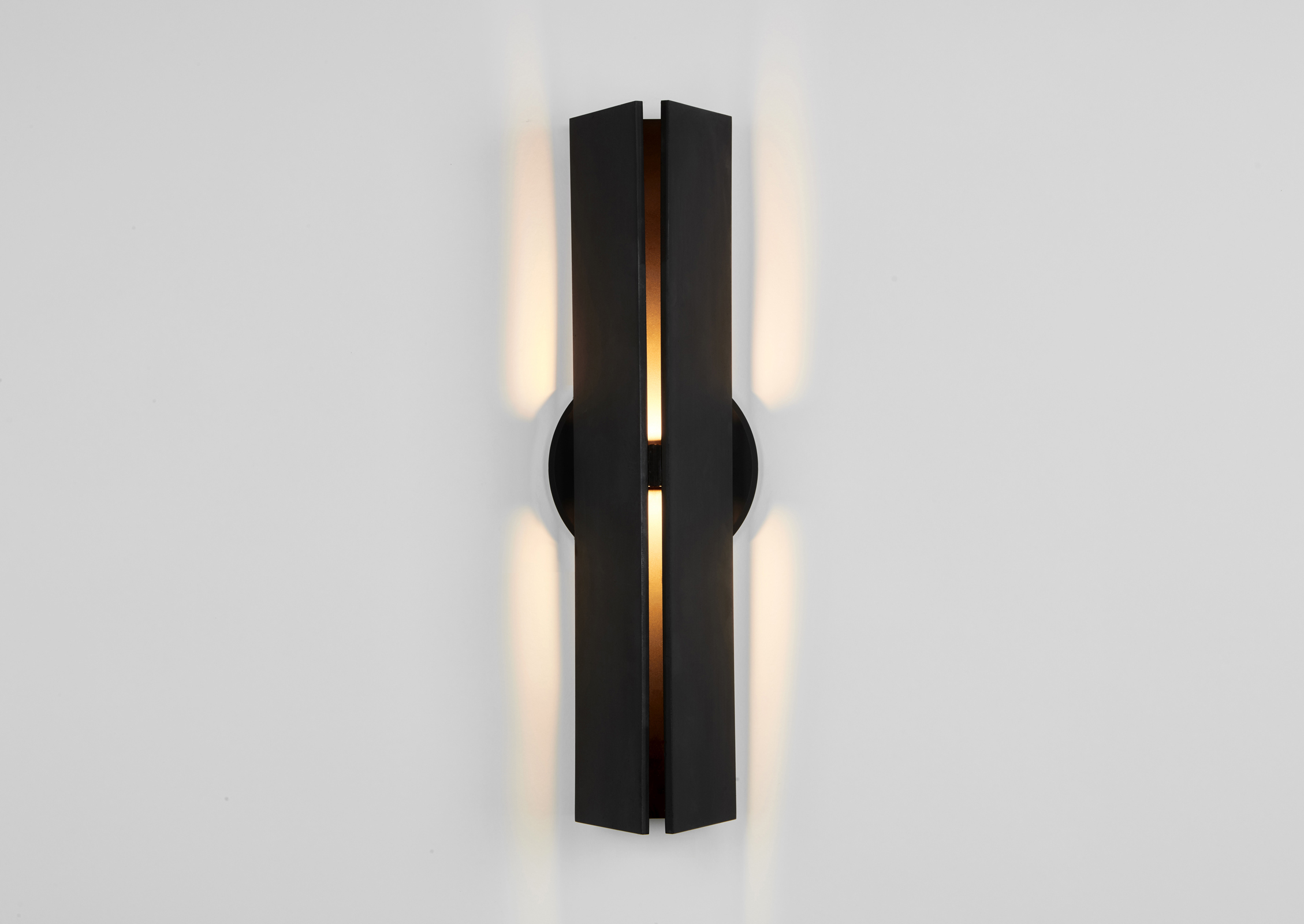 The Delta collection is part of a series of pieces originally designed by Post Company for Inness, a Hudson Valley country resort by tastemaker Taavo Somer that takes all of its cues from the surrounding landscape. Inspired by 19th-century lanterns, the collection strips down the idea to its essence, resulting in highly simplified and elegant assemblies. The attention to detail is evident. Solid metal plates soften the light like a series of louvers and create its three-sided profile.