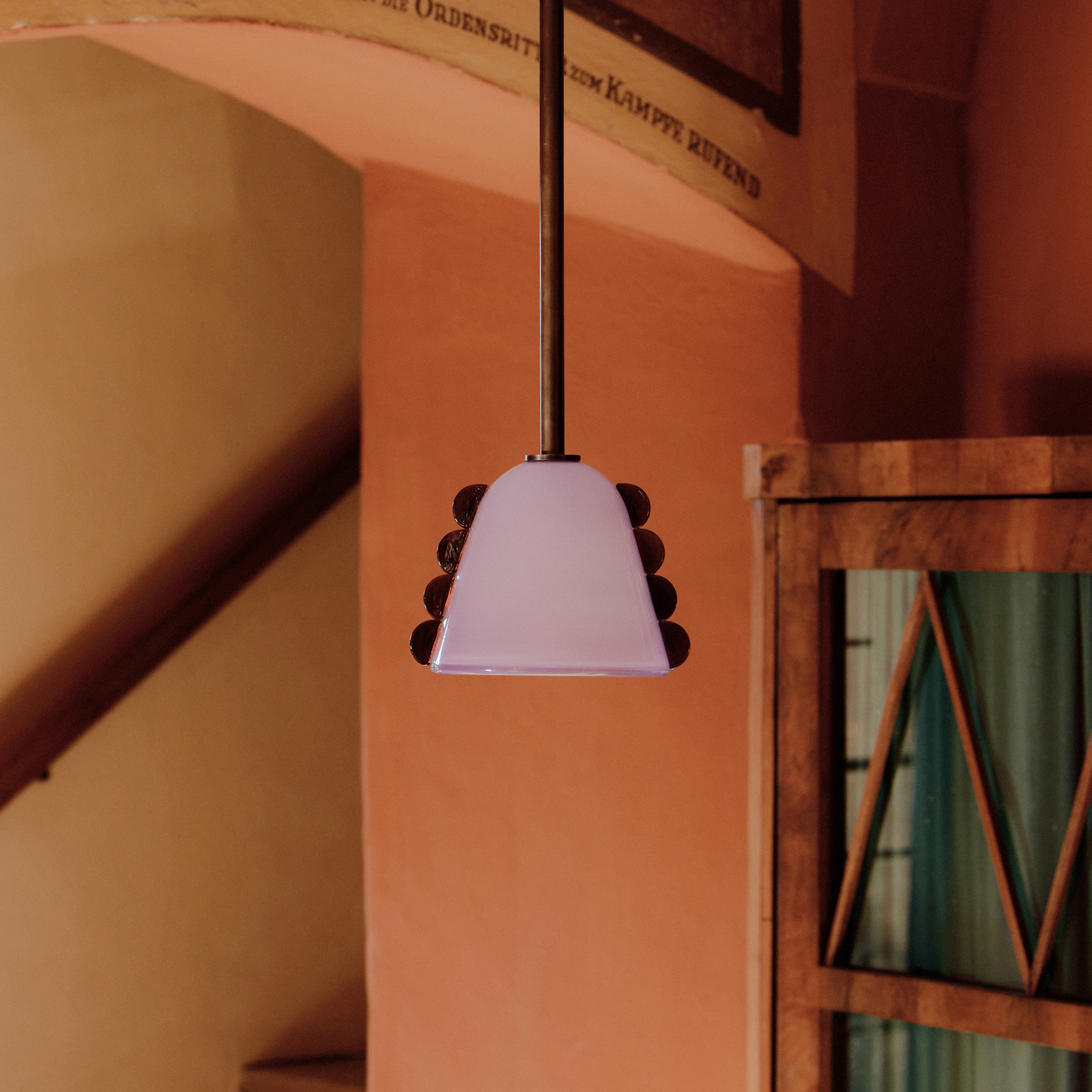 A hand-blown sconce whose sleek form shares the spotlight with playful decorative trim. Gemma’s shades are made using a modern variation on a centuries-old practice, which involves applying handmade glass details—in this case, marble-like dots—to blown glass surfaces. Fitted with hand-finished brass details and a bell-shaped diffuser that matches the shape of its shade.