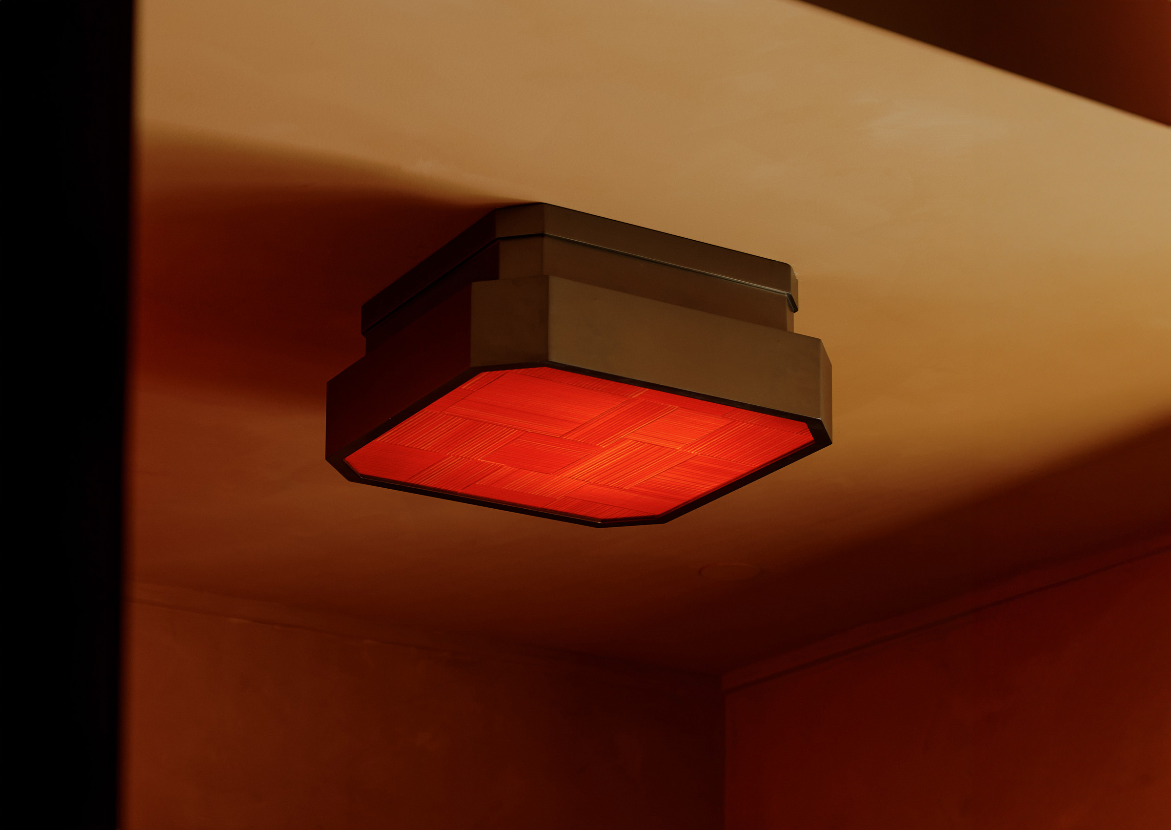 A luminous canvas of light, texture, and pattern. Featuring inset glass in an array of colors and geometric patterns, the Strata Surface Mount combines a low-profile silhouette with high-impact artistry.