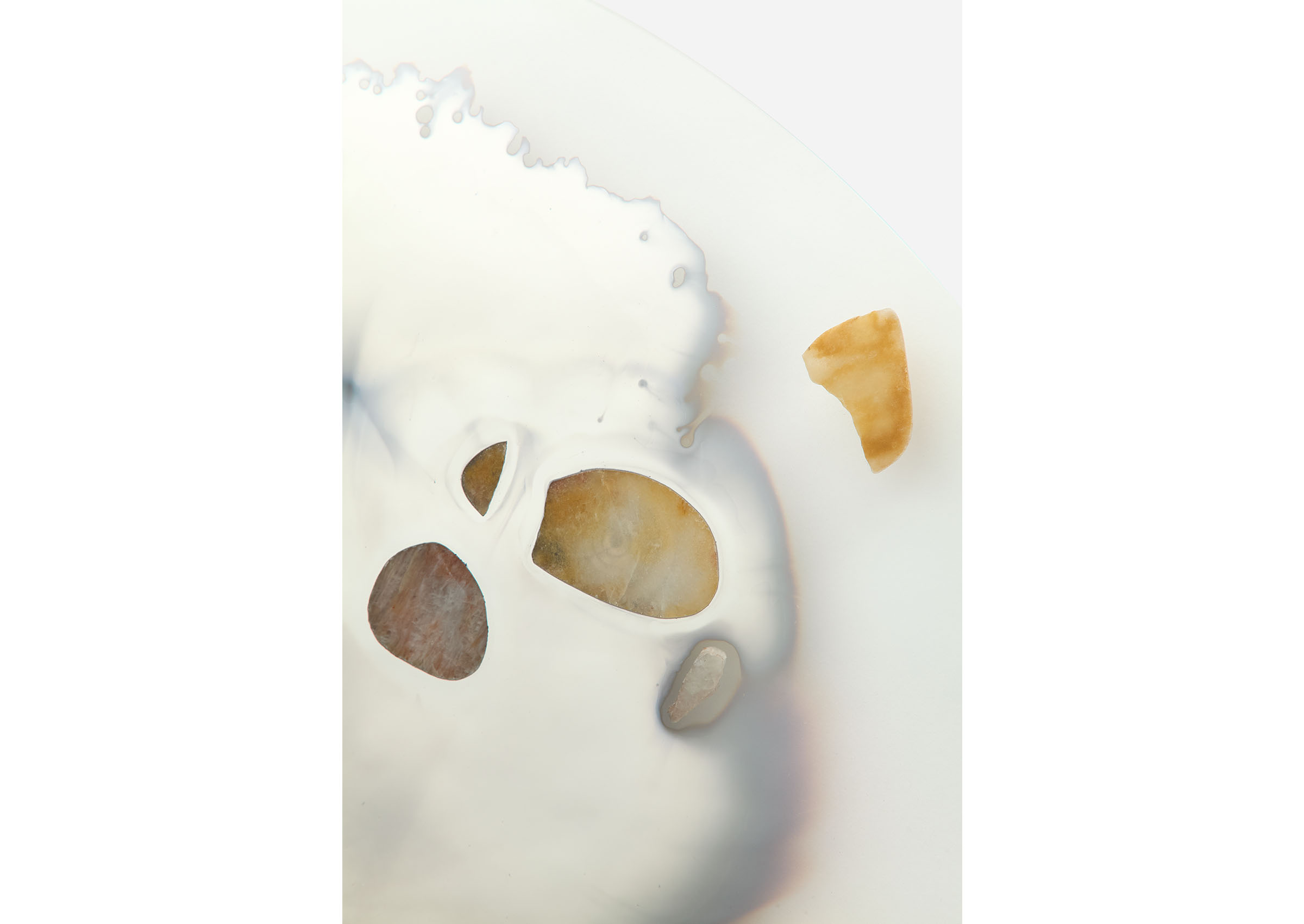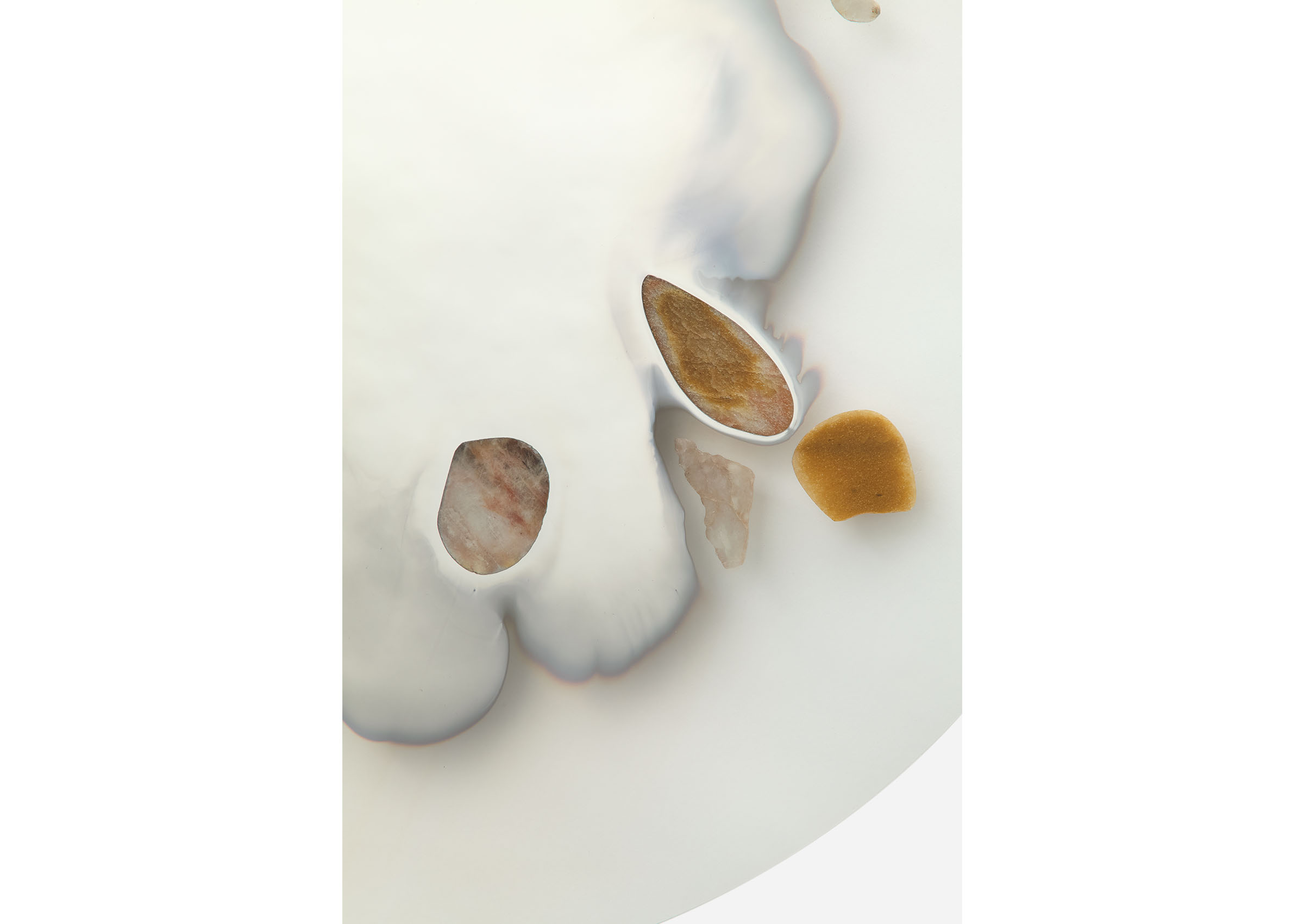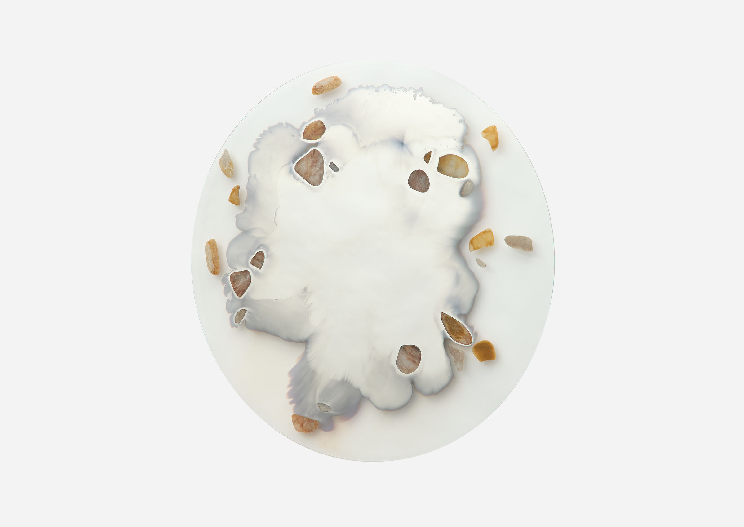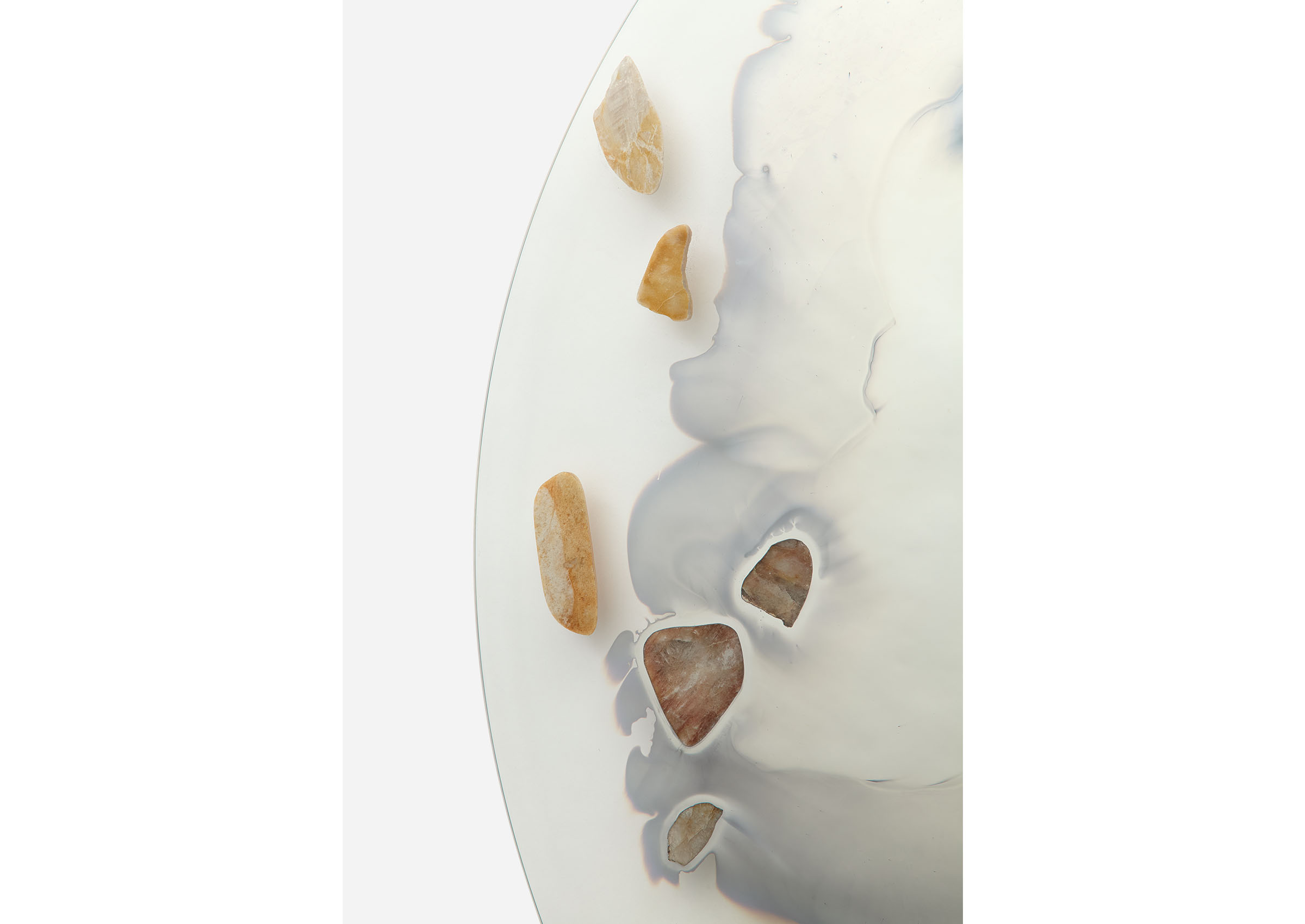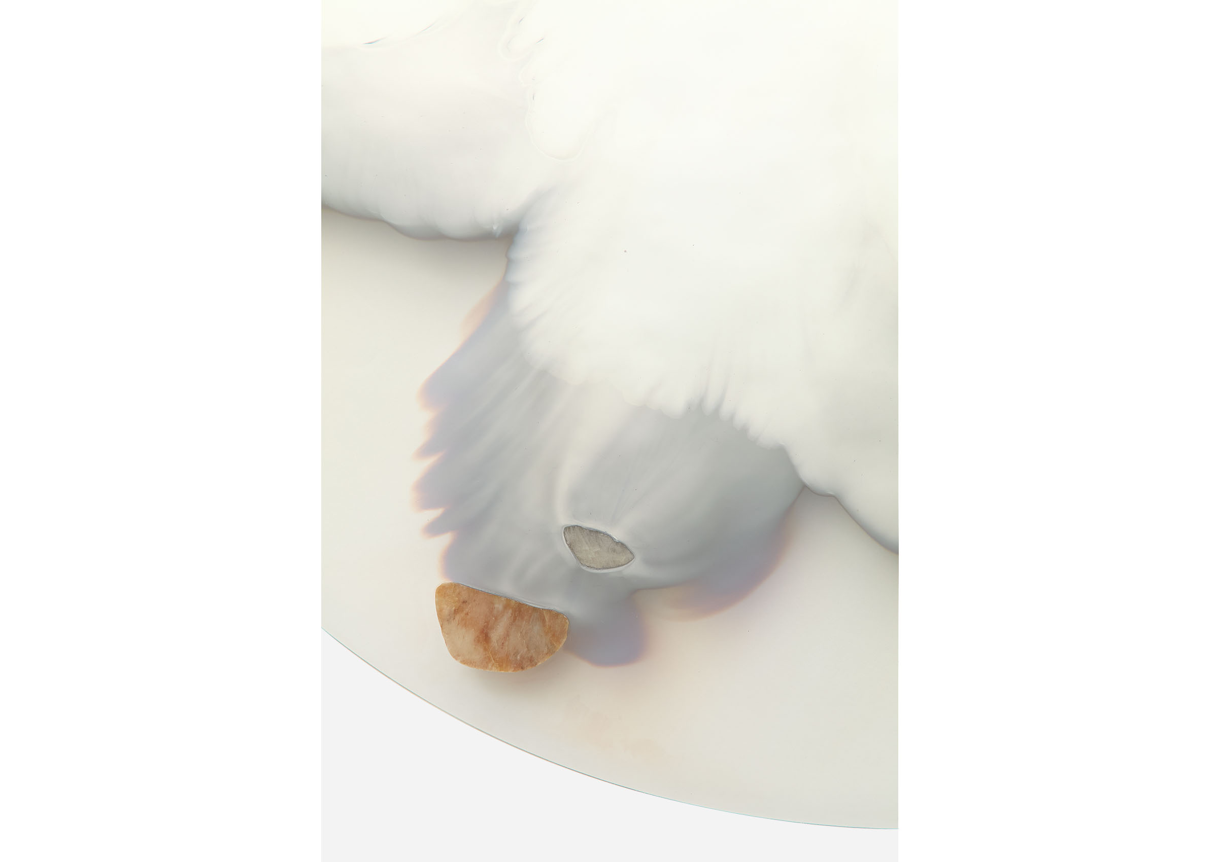 Chen Chen and Kai Williams have skillfully combined contrasting elements and materials to create a truly captivating collection of mirrors. Known as the Transition Mirrors, their name is inspired by the classification of silver as a "transition metal." These mirrors are meticulously crafted through a unique process, where a silver nitrate solution is carefully poured onto clear glass, creating a chemical bond with its surface. The defining feature of these mirrors lies at the contoured edge of the silver, where a deliberate point of fragility exists. This intentional design choice results in a moment of delicate beauty, adding an extraordinary touch to the overall construction.