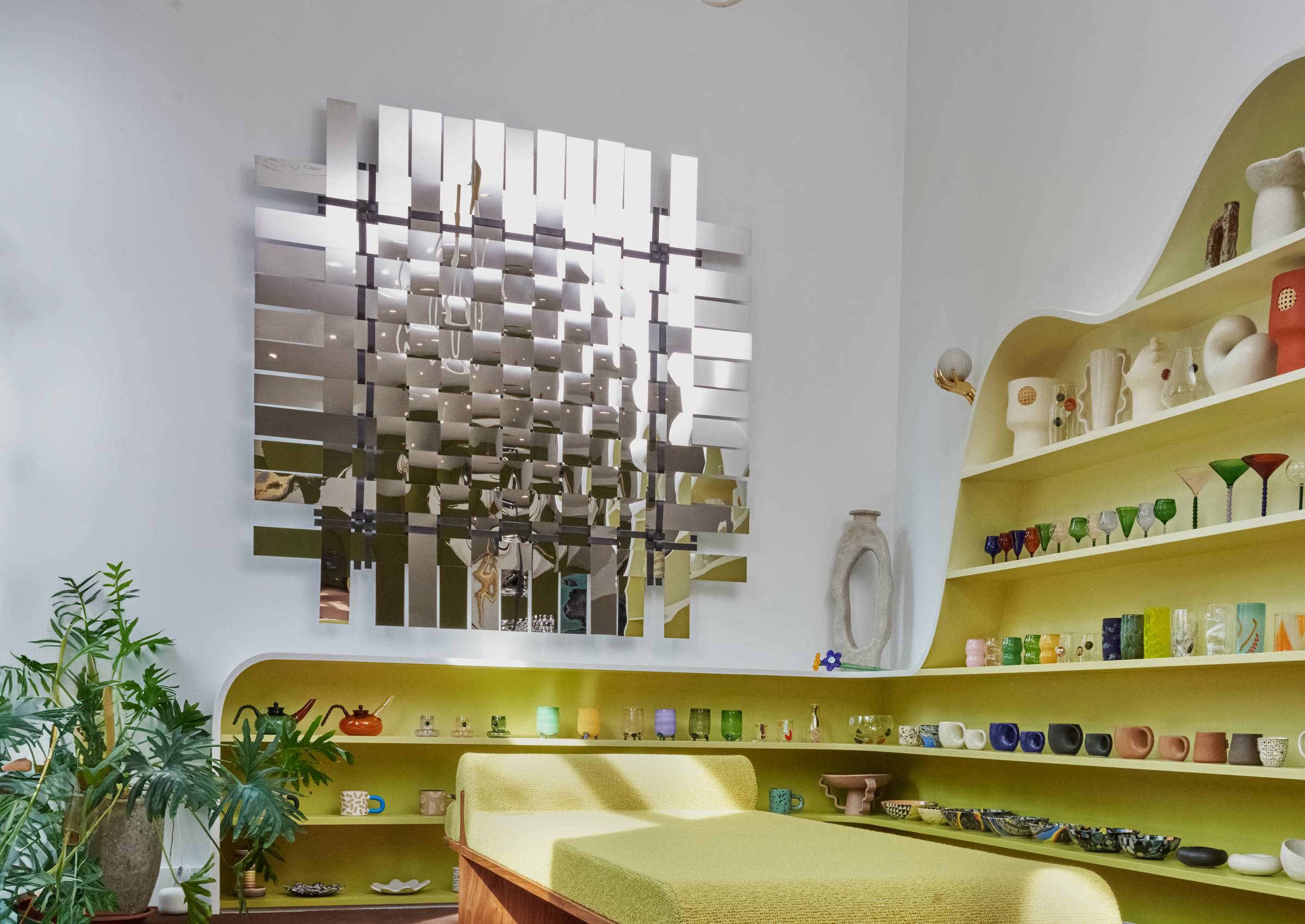 Bold and expansive, the Woven Mirror III is a statement piece that redefines spatial boundaries. Its grand scale and intricate weave of mirror-polished stainless steel invite viewers to explore depth and perspective from every angle. Framed with walnut and leather, this large-format mirror elevates any room with a sculptural presence that is both reflective and architectural.